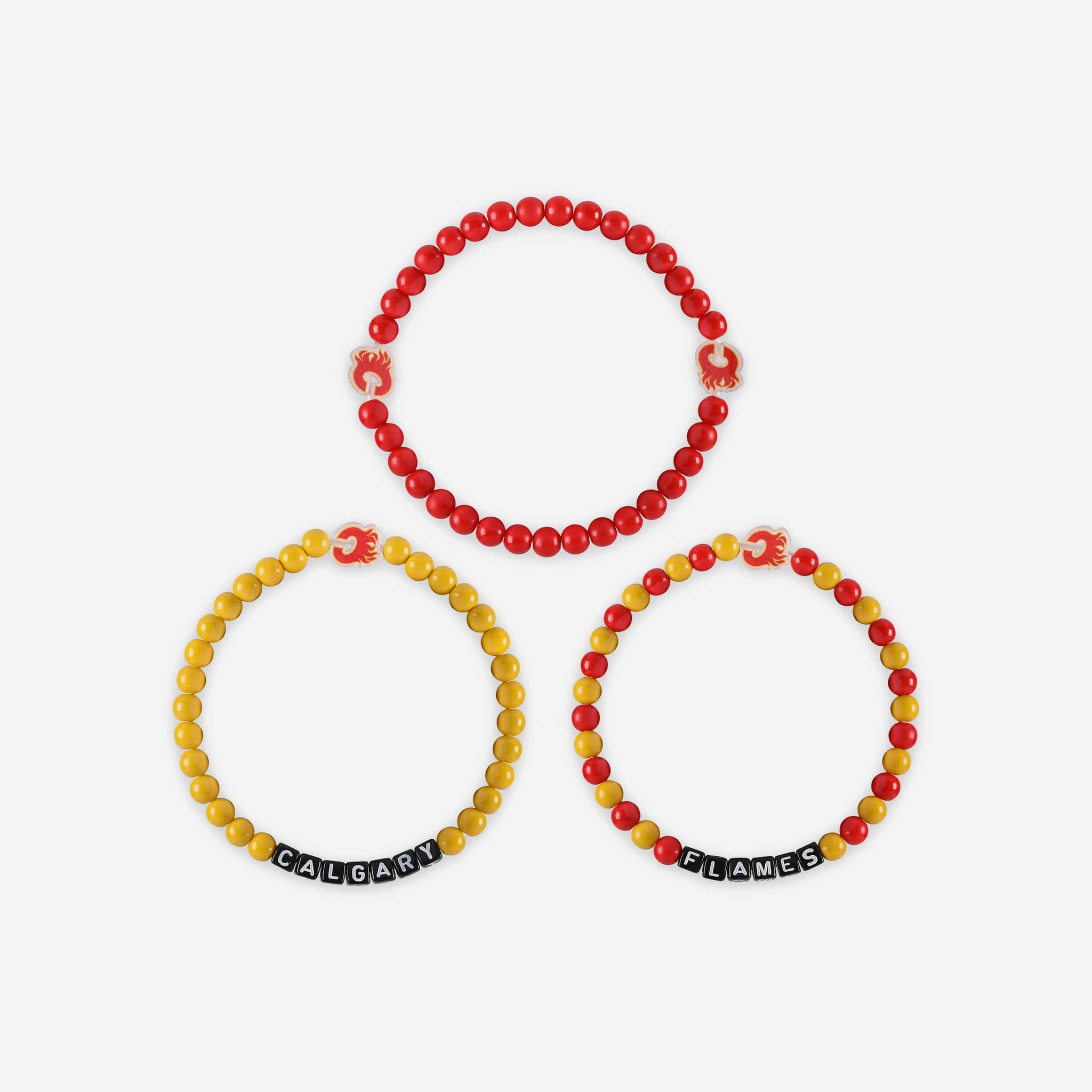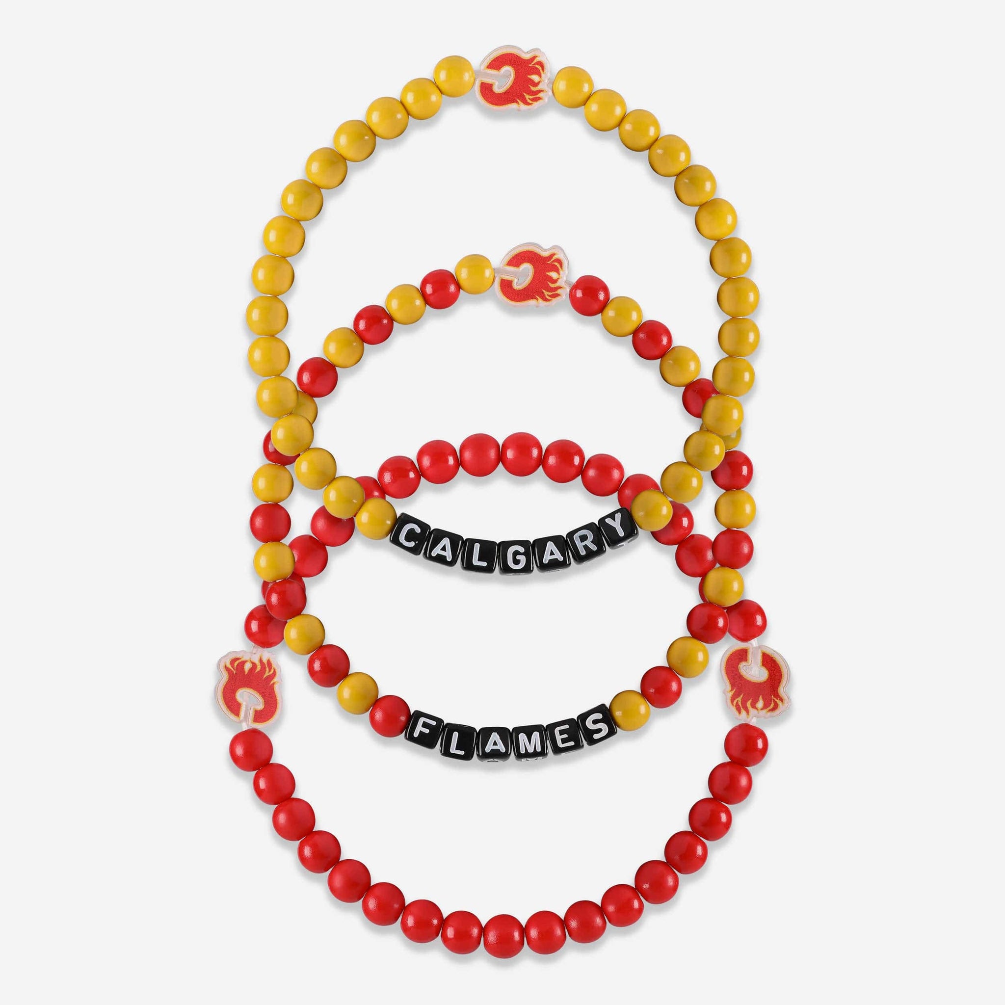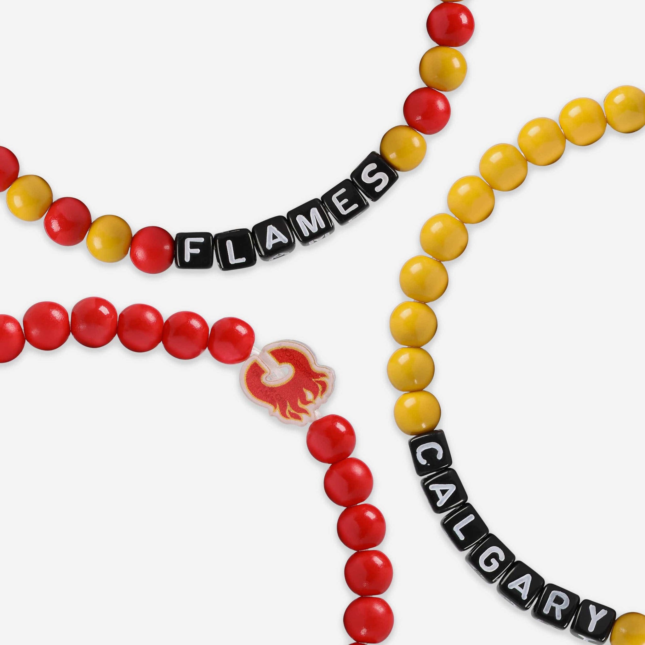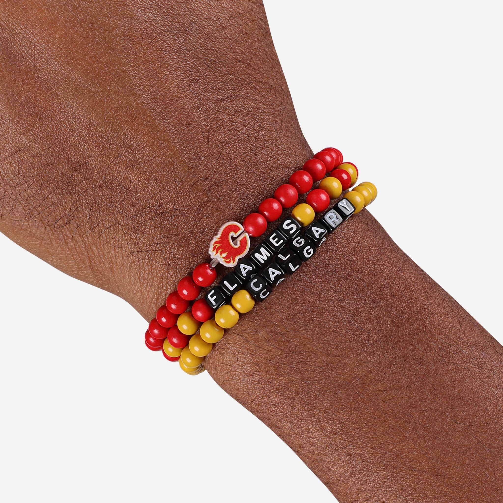 A whole new way to rep the team in style is here. Step up your fan fashion sense with this Calgary Flames 3 Pack Beaded Friendship Bracelet. These matching friendship bracelets have an all-over team-colored design and team logo displays, which makes them the perfect way to show your support for the Calgary Flames on gamedays and every day in between.