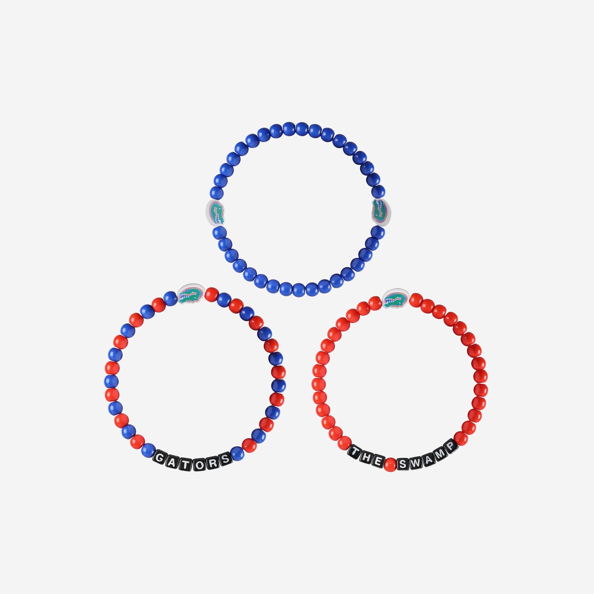A whole new way to rep the team in style is here. Step up your fan fashion sense with this Florida Gators 3 Pack Beaded Friendship Bracelet. These matching friendship bracelets have an all-over team-colored design and team logo displays, which makes them the perfect way to show your support for the Florida Gators on gamedays and every day in between.