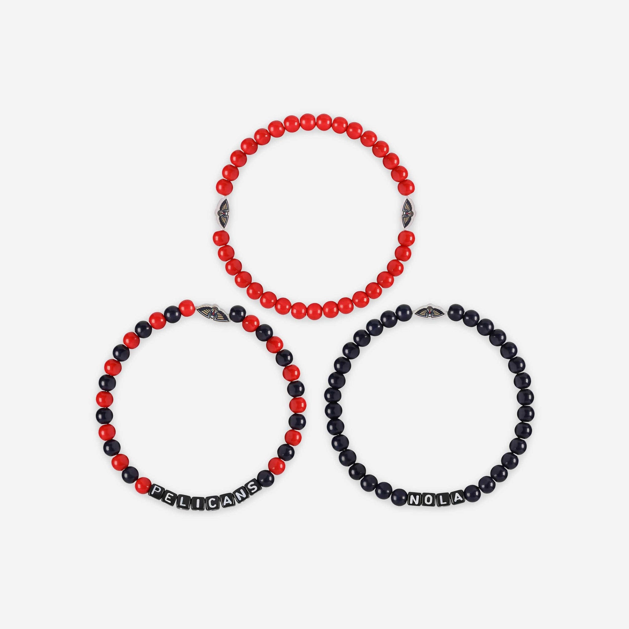 A whole new way to rep the team in style is here. Step up your fan fashion sense with this New Orleans Pelicans 3 Pack Beaded Friendship Bracelet. These matching friendship bracelets have an all-over team-colored design and team logo displays, which makes them the perfect way to show your support for the New Orleans Pelicans on gamedays and every day in between.