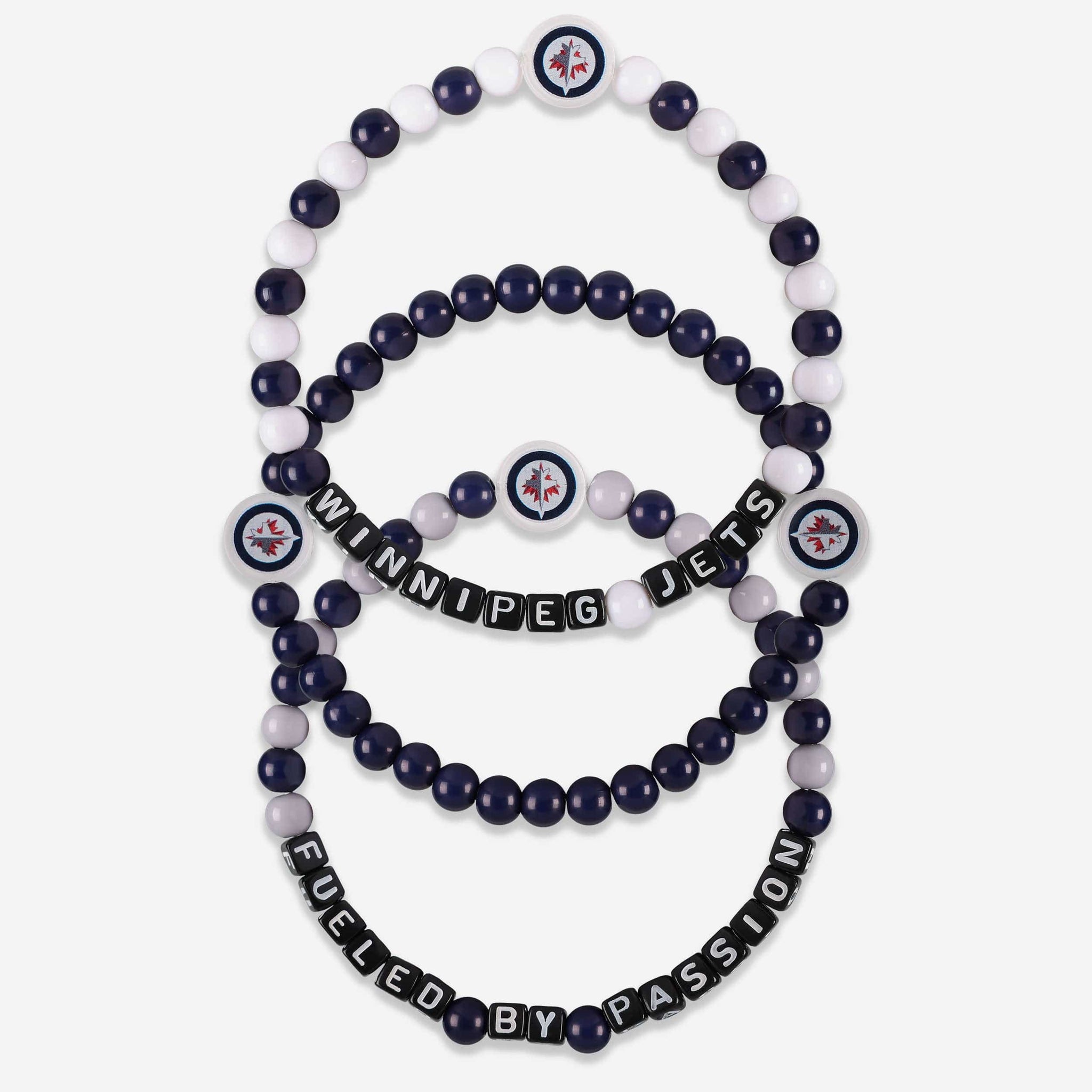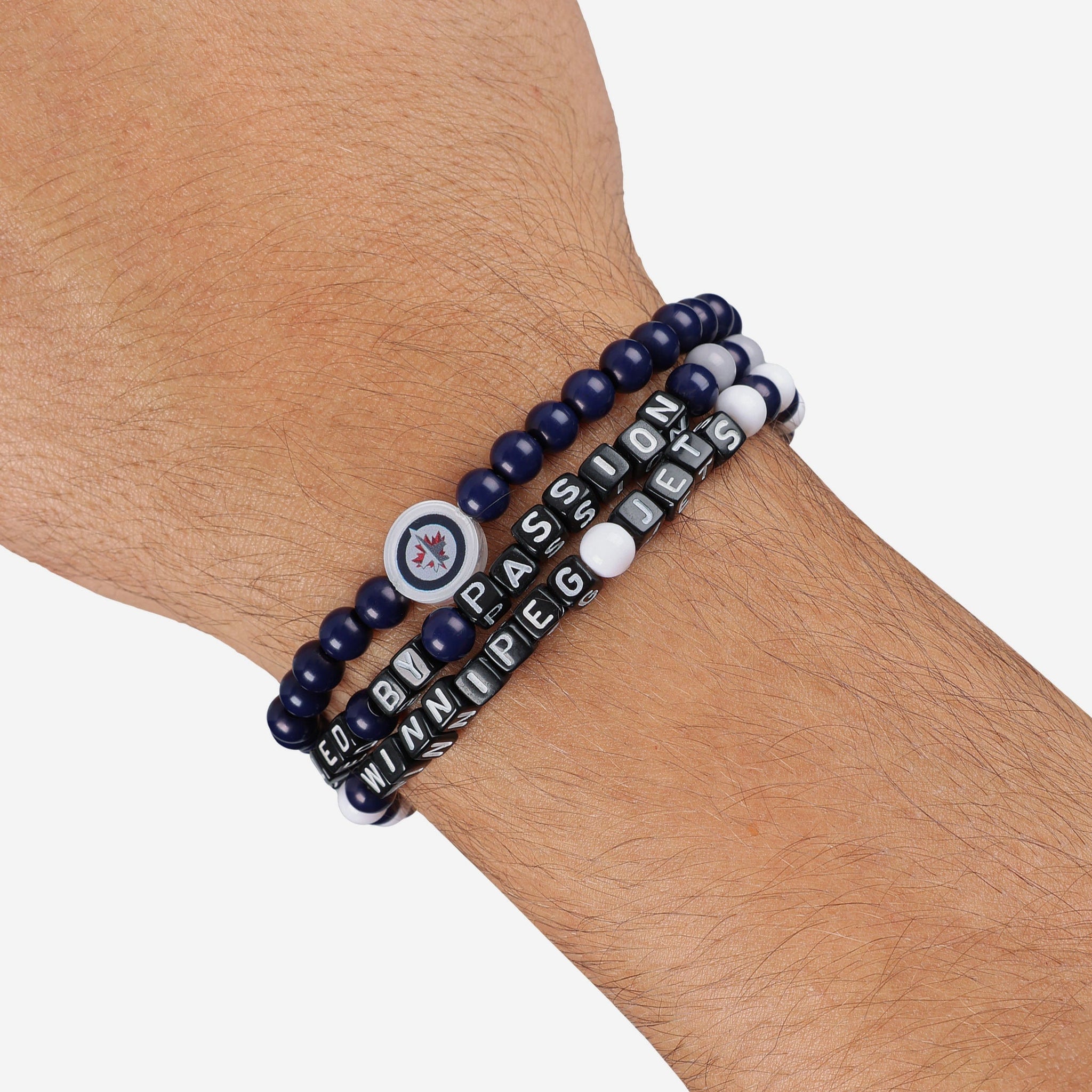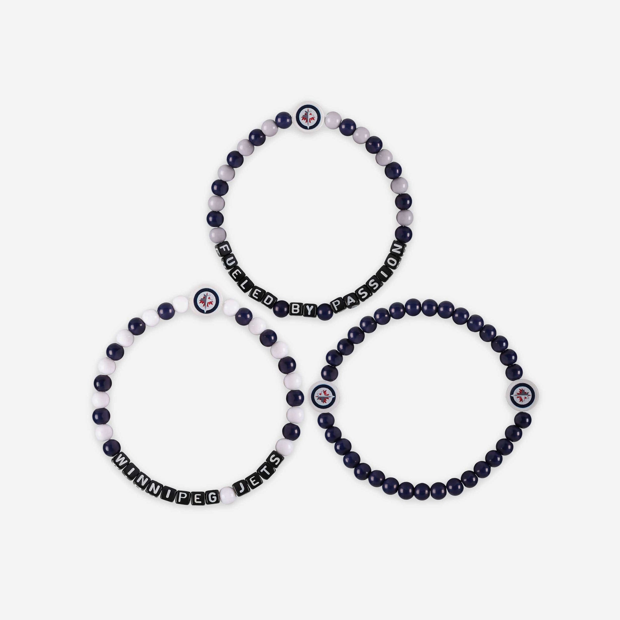 A whole new way to rep the team in style is here. Step up your fan fashion sense with this Winnipeg Jets 3 Pack Beaded Friendship Bracelet. These matching friendship bracelets have an all-over team-colored design and team logo displays, which makes them the perfect way to show your support for the Winnipeg Jets on gamedays and every day in between.