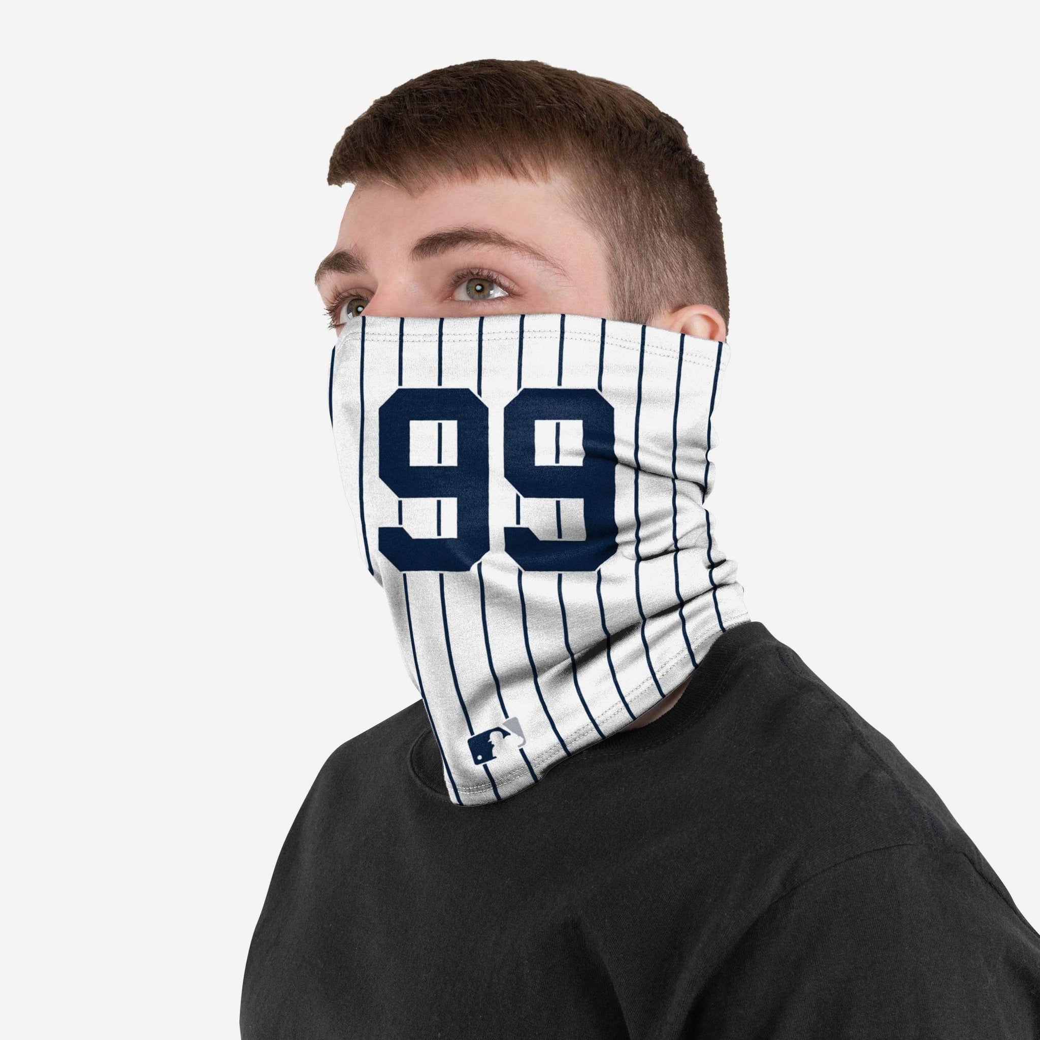 From the field to your face! Cover up with the authentic style of this Aaron Judge New York Yankees On-Field Pinstripe UV Gaiter Scarf!