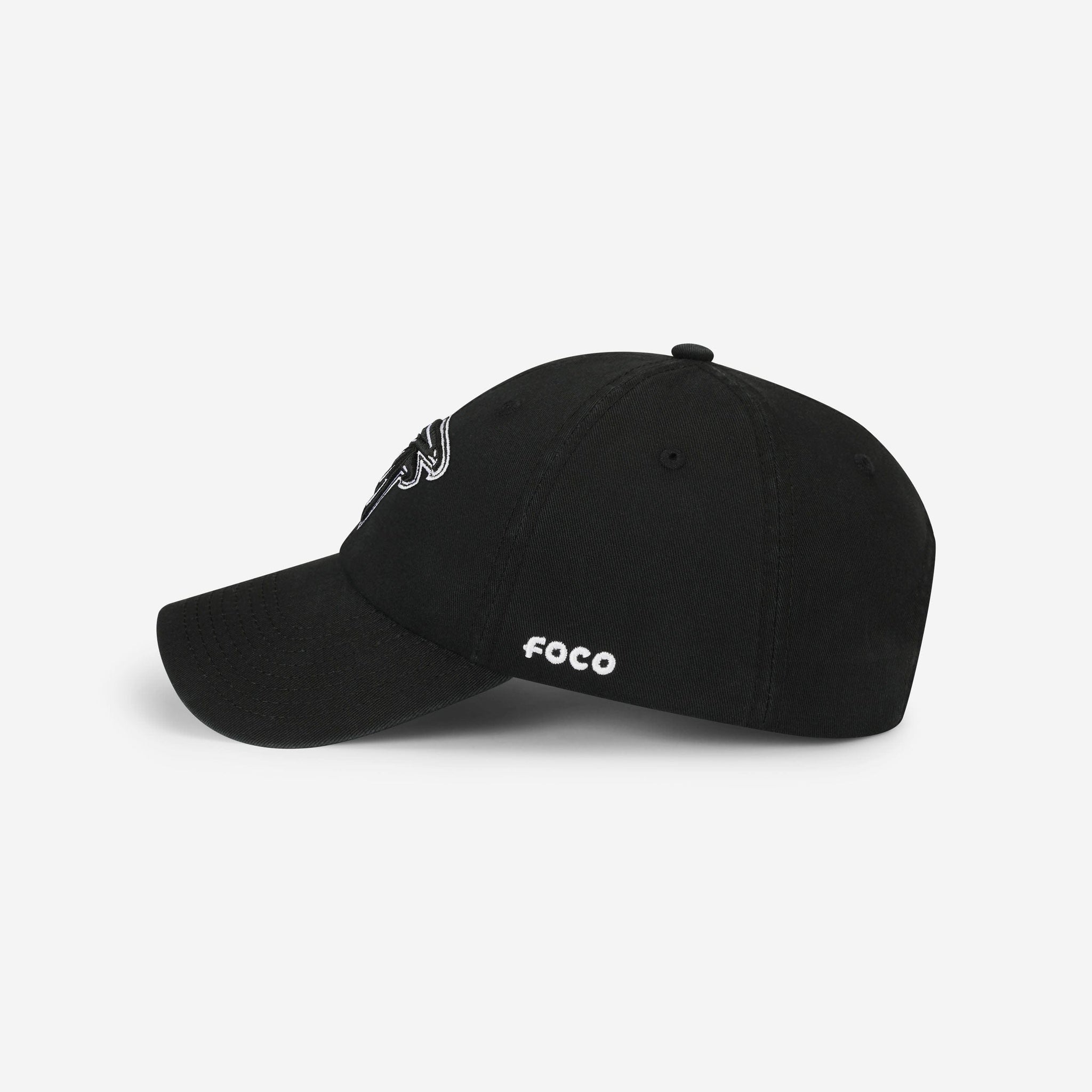 - Six panel, black-and-white-colored design with eyelets