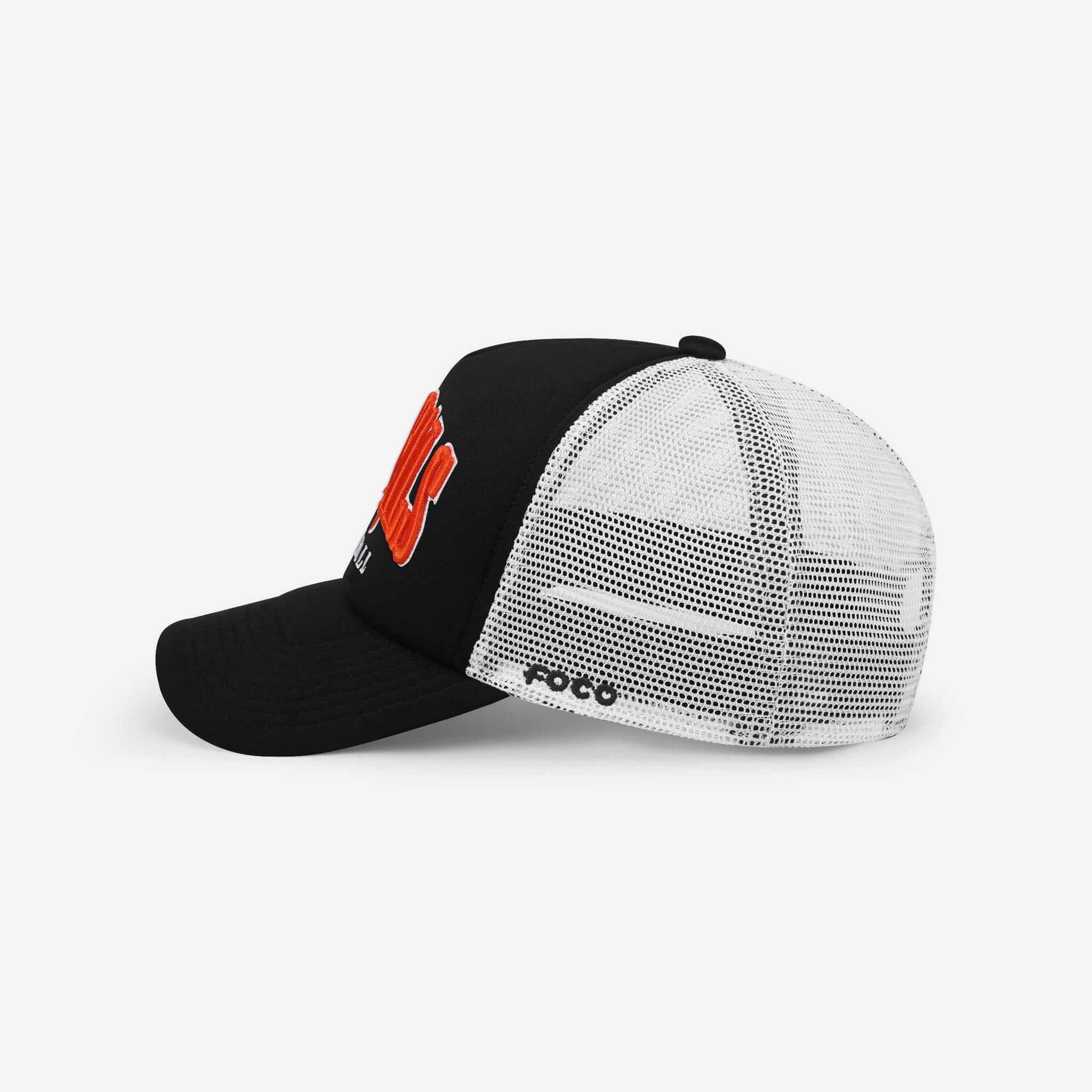 Whether you're behind the wheel of a big rig or in the stands at the game, this Cincinnati Bengals Foam Trucker Cap is just the thing for your outfit. Featuring an embroidered team logo and wordmark display and unstructured design with a curved visor and high crown, you’ll be all set to play the role of trucker and fan. Plus, the mesh panels and adjustable snapback snap closure makes this hat perfect for any adventure.