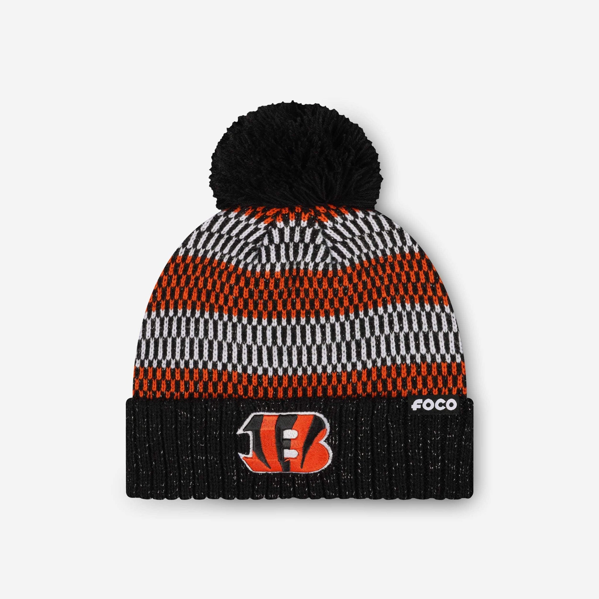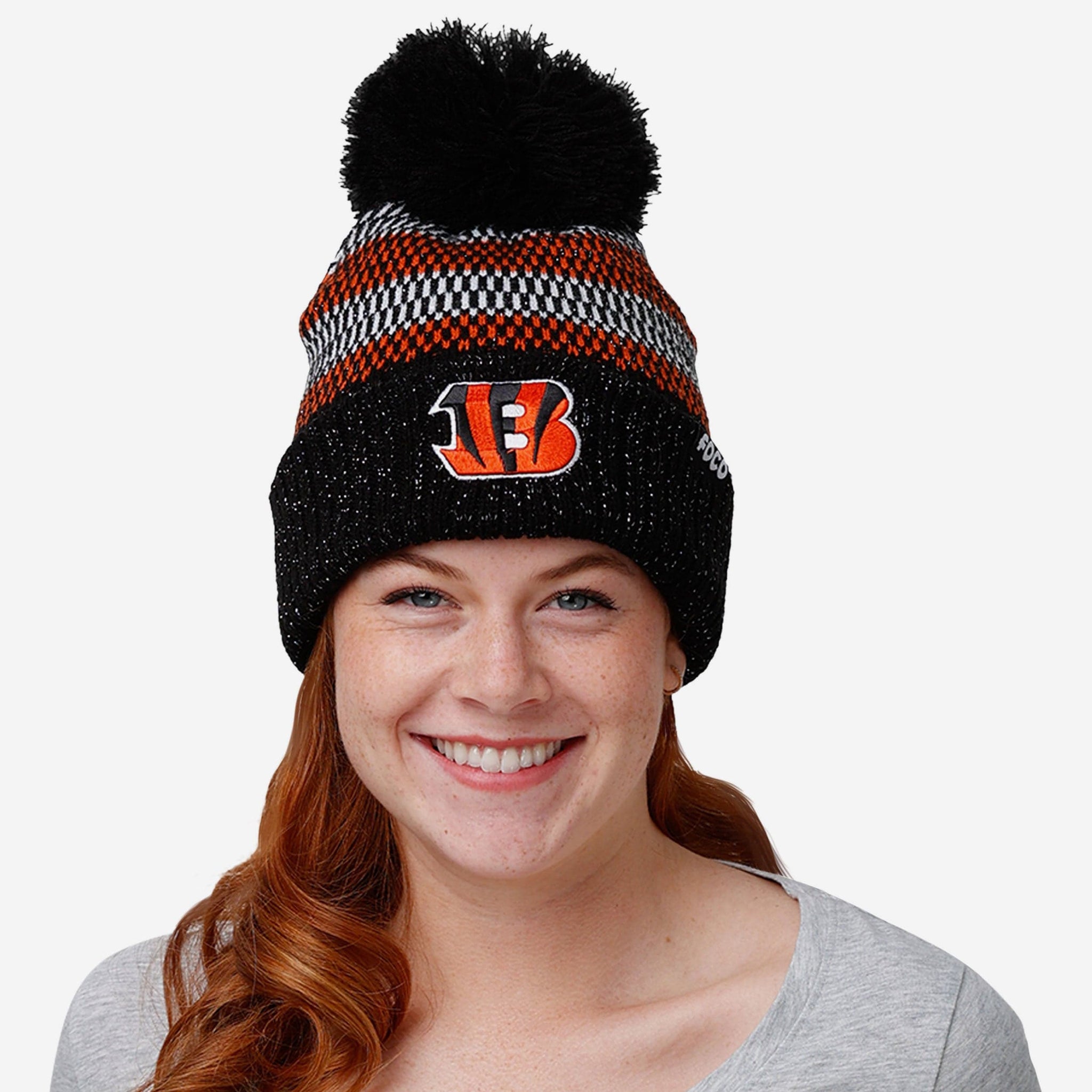 Cincinnati Bengals Womens Cozy Knit Metallic Thread Pom Beanie FOCO - FOCO.com