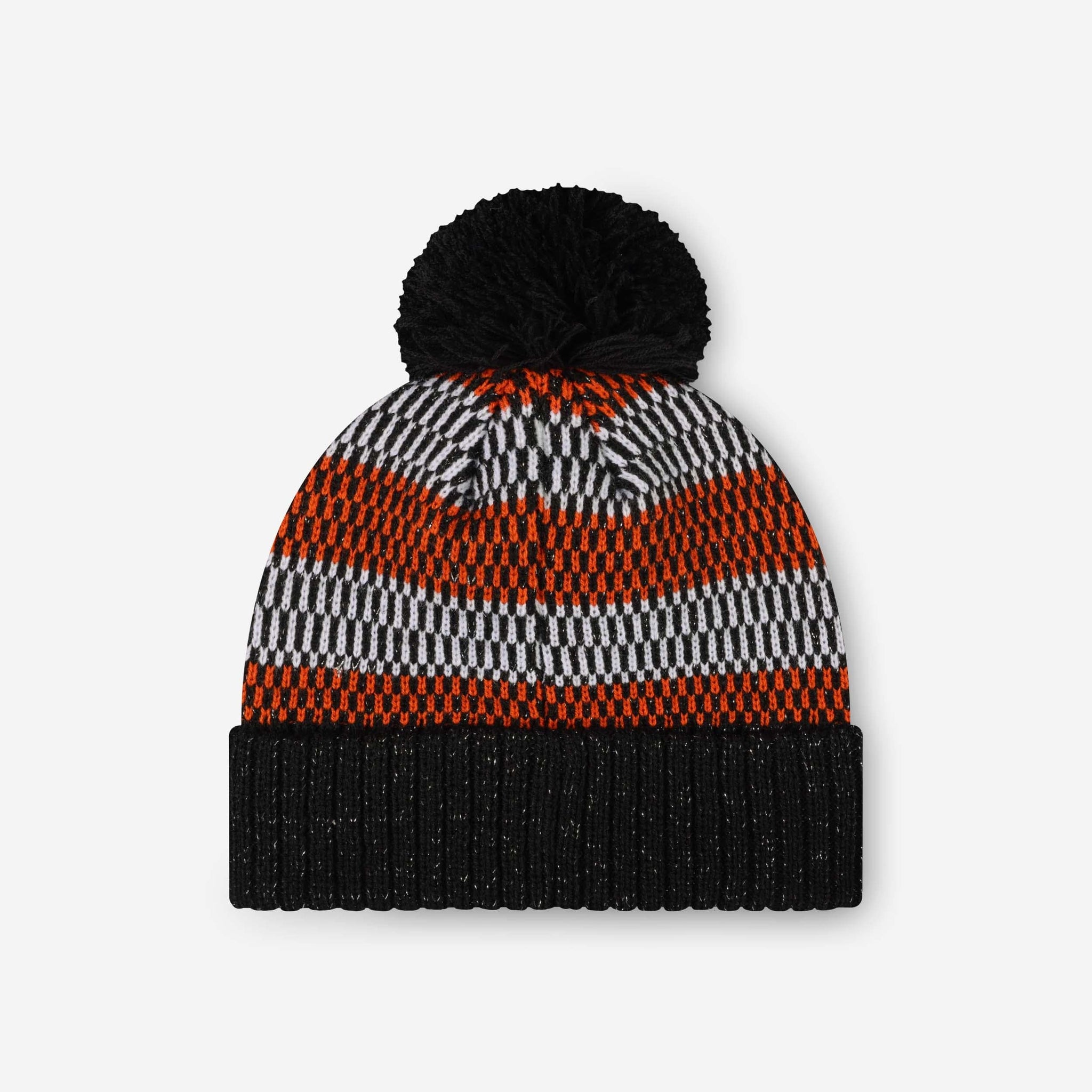 Cincinnati Bengals Womens Cozy Knit Metallic Thread Pom Beanie