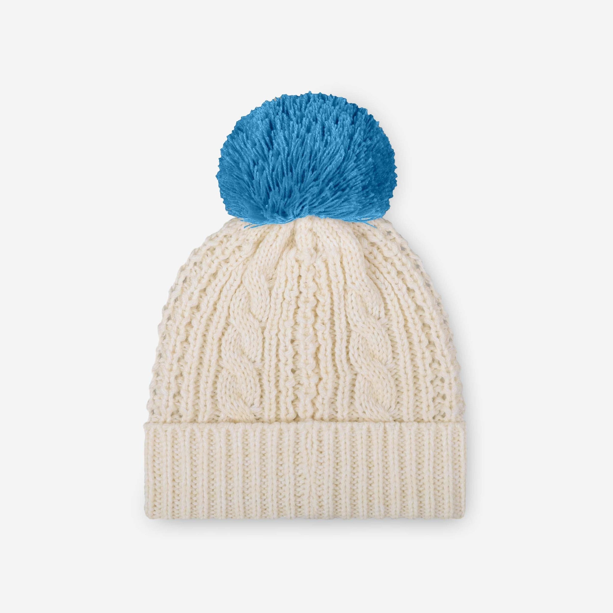 Detroit Lions Womens Primary Logo White Cable Knit Pom Beanie