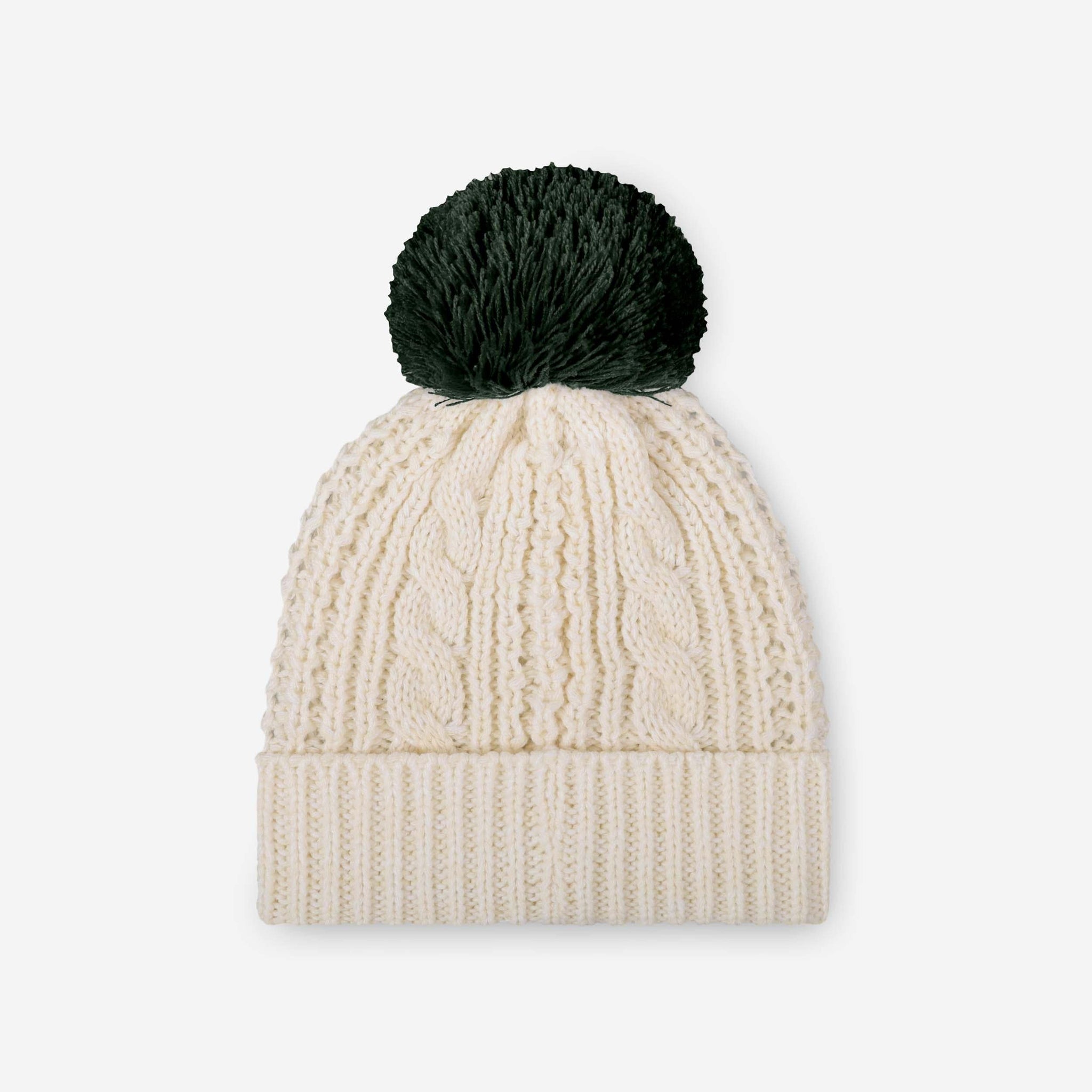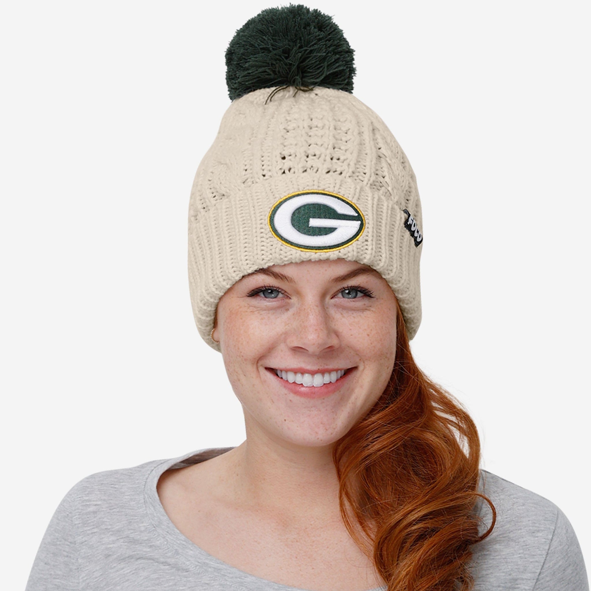 Putting together the ultimate fit for the tailgate and beyond? Make sure to get your head in the game with the Green Bay Packers Women's Primary Logo White Cable Knit Pom Beanie!