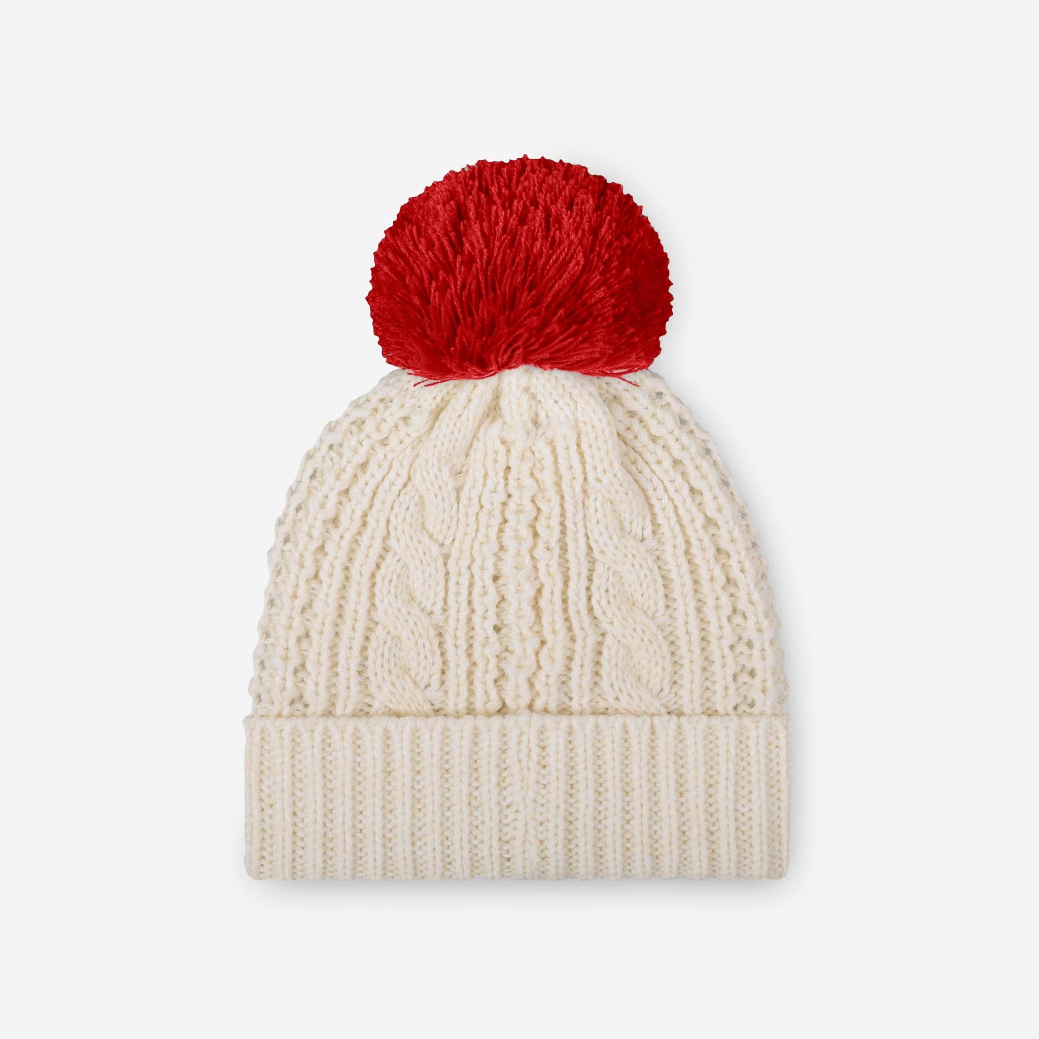Putting together the ultimate fit for the tailgate and beyond? Make sure to get your head in the game with the Kansas City Chiefs Women's Primary Logo White Cable Knit Pom Beanie!