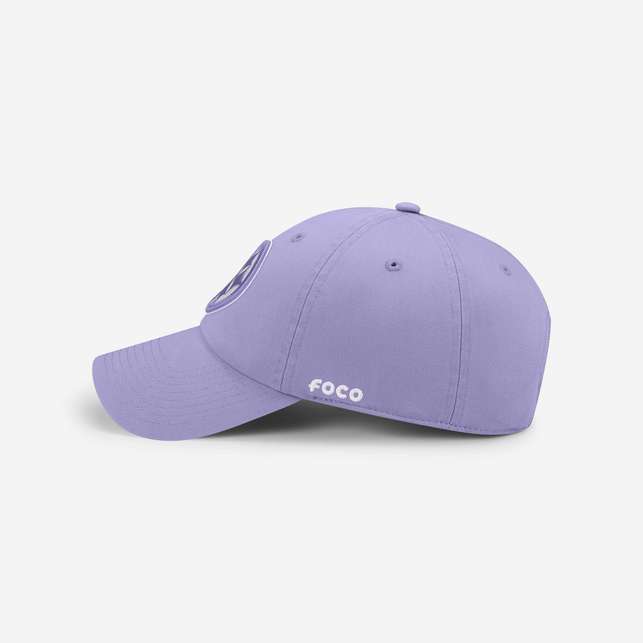 - Six panel, lavender-colored design with eyelets