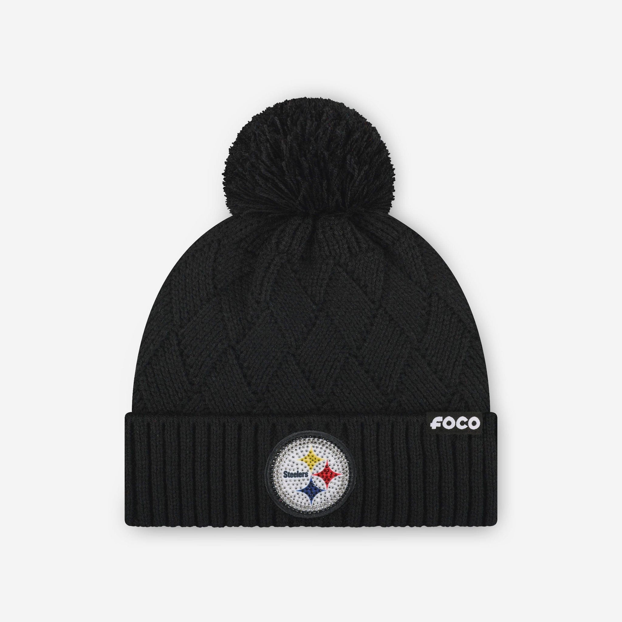 Stay warm, look fabulous, and show your team spirit all season long! The Pittsburgh Steelers Rhinestone Primary Logo Criss Cross Beanie is your cozy, cute, and sparkly winter MVP.