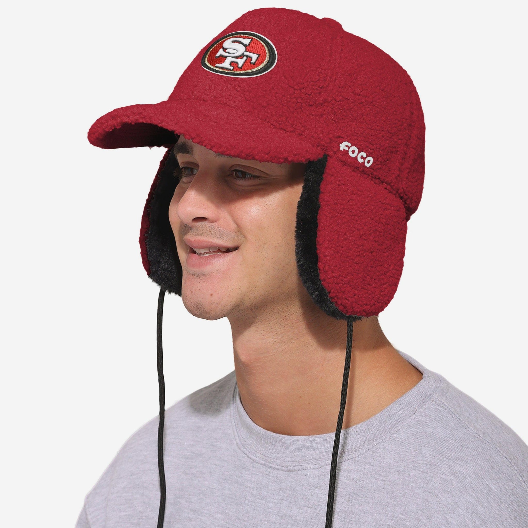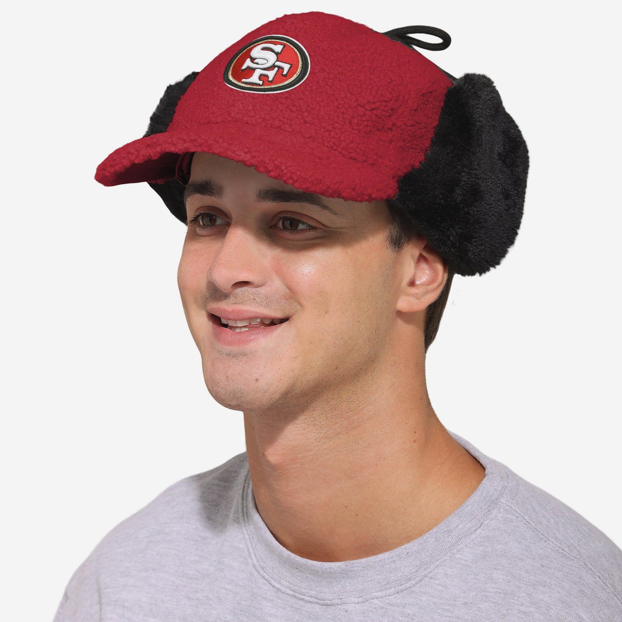 Cap, meet cozy. Meet your new winter MVP: The San Francisco 49ers Sherpa Trapper Cap. Designed with a six-panel build and deep-curve visor, it’s a classic ballcap look with a game-changing sherpa twist. Stay warm, stay loud, and stay legendary.