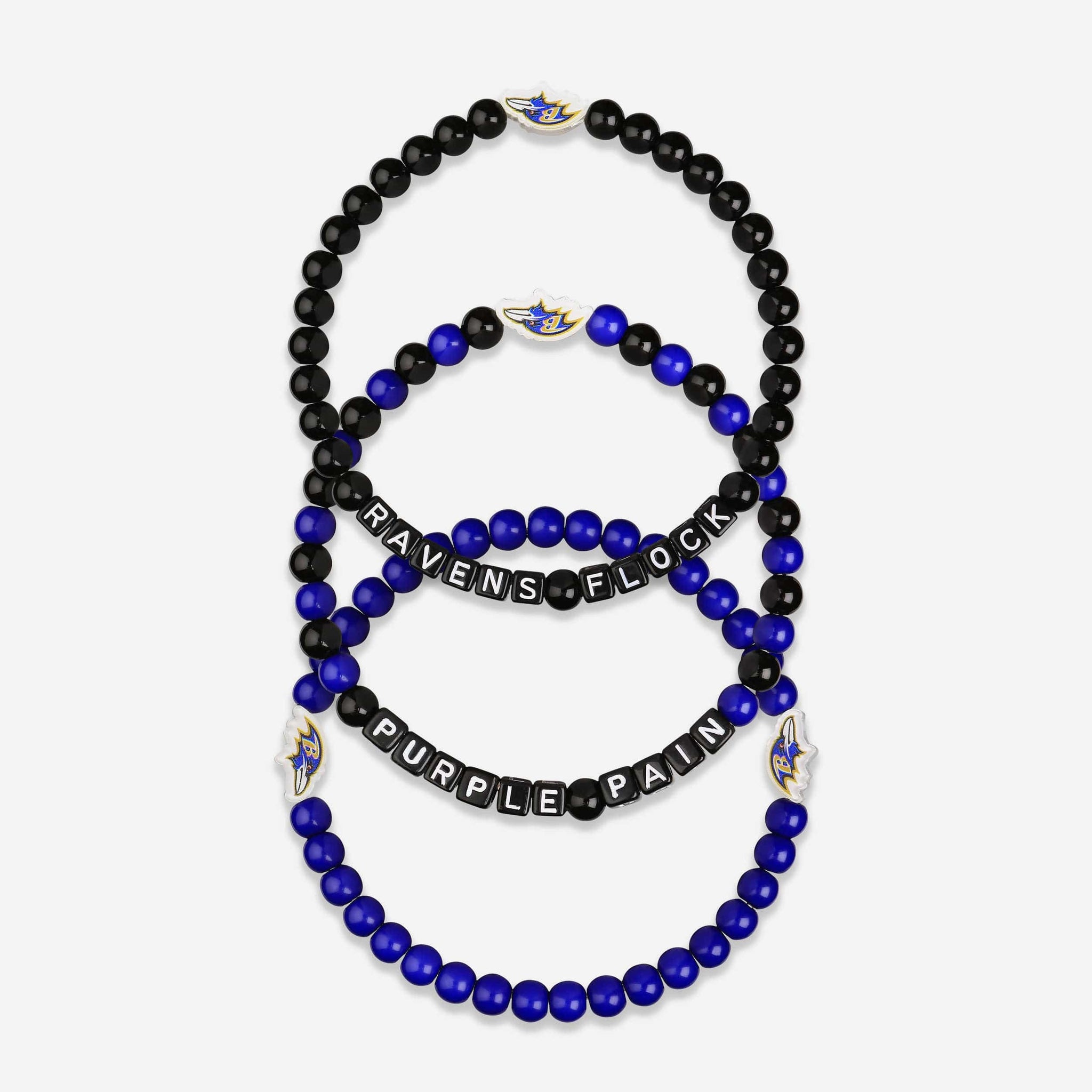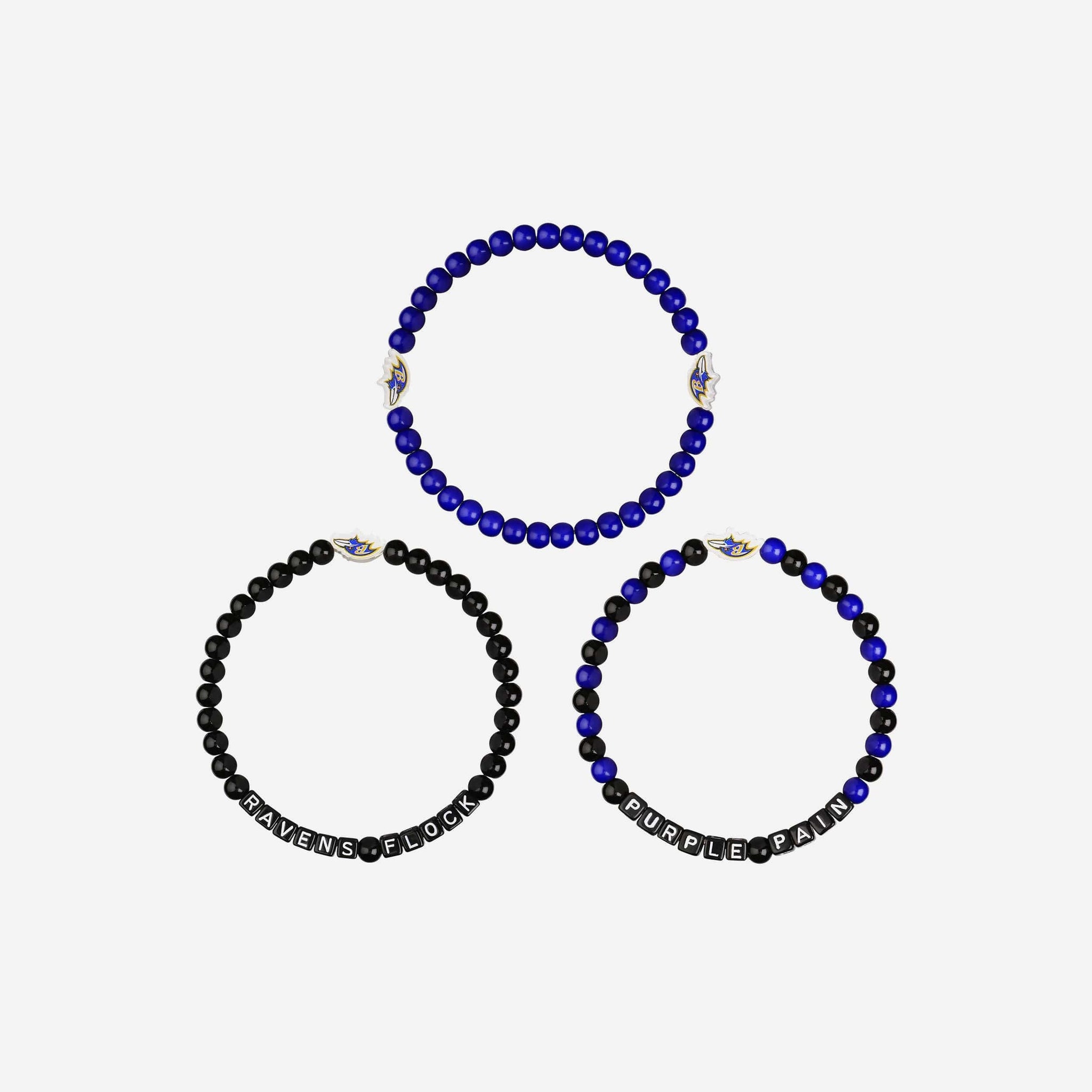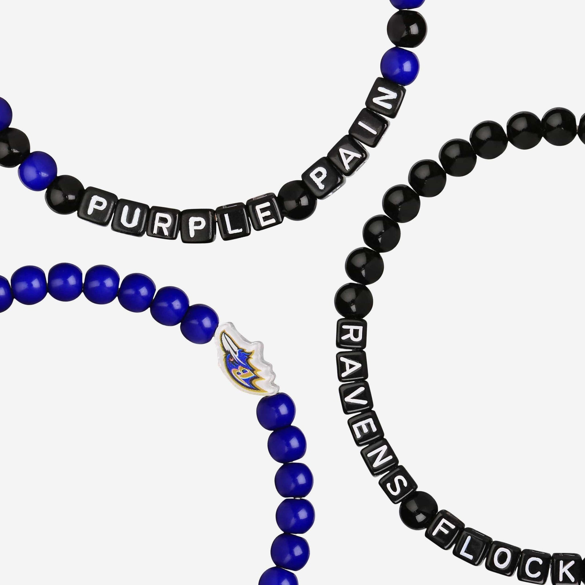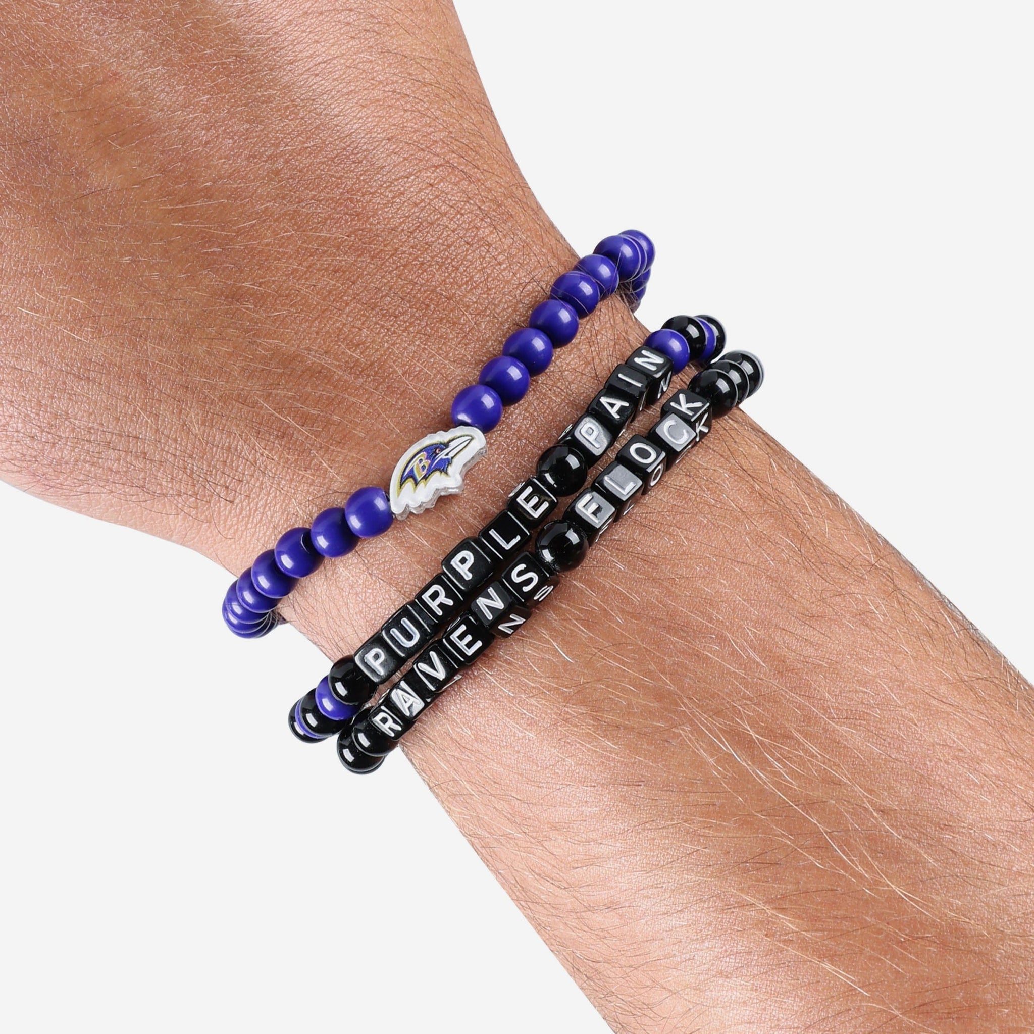 A whole new way to rep the team in style is here. Step up your fan fashion sense with this Baltimore Ravens 3 Pack Beaded Friendship Bracelet. These matching friendship bracelets have an all-over team-colored design and team logo displays, which makes them the perfect way to show your support for the Baltimore Ravens on gamedays and every day in between.
