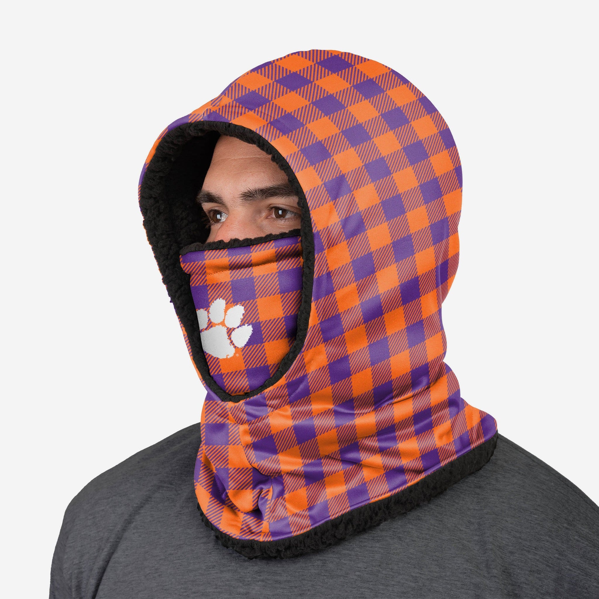 Plaid power! Make a fashion statement and stay oh, so warm in this Clemson Tigers Plaid Hooded Gaiter!