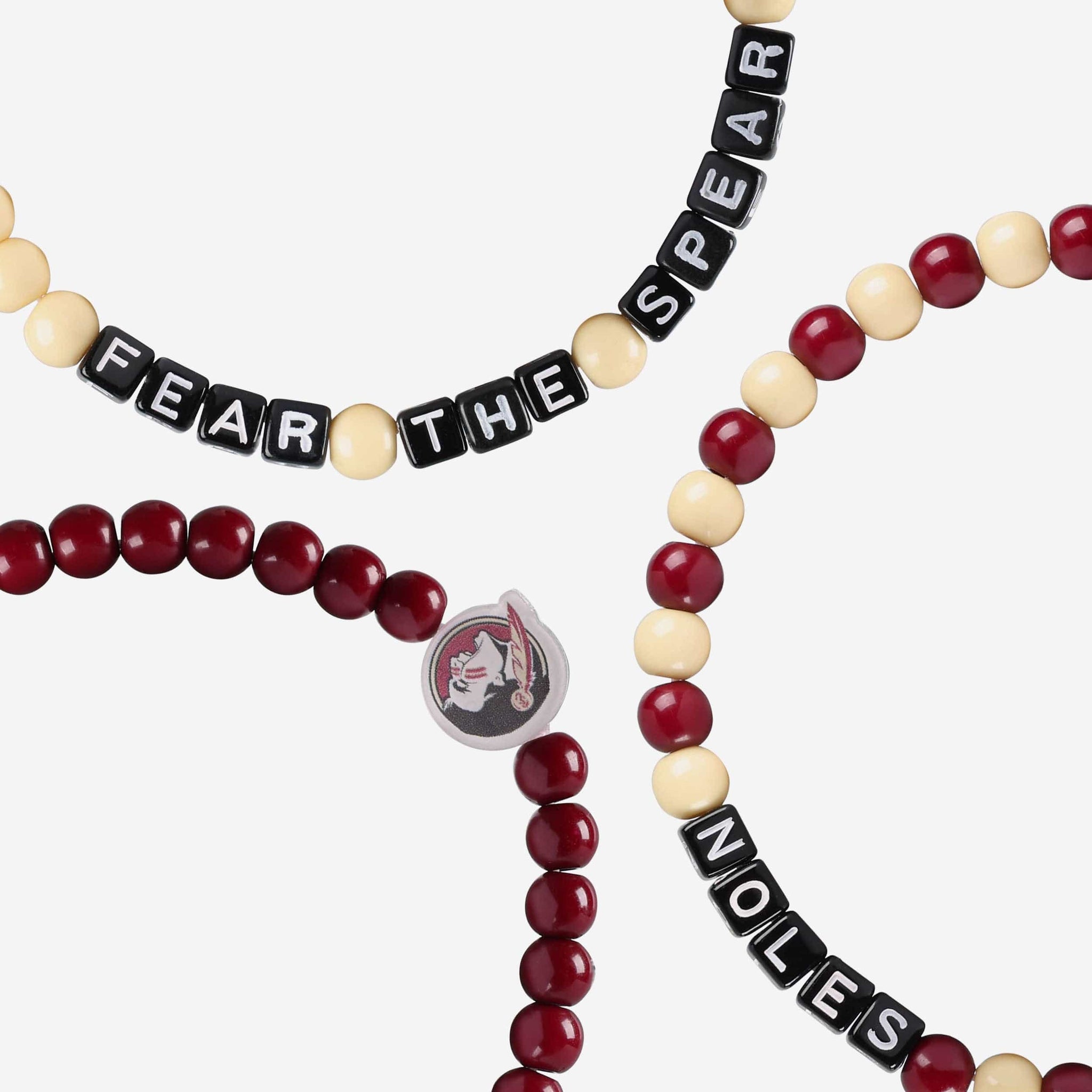 A whole new way to rep the team in style is here. Step up your fan fashion sense with this Florida State Seminoles 3 Pack Beaded Friendship Bracelet. These matching friendship bracelets have an all-over team-colored design and team logo displays, which makes them the perfect way to show your support for the Florida State Seminoles on gamedays and every day in between.