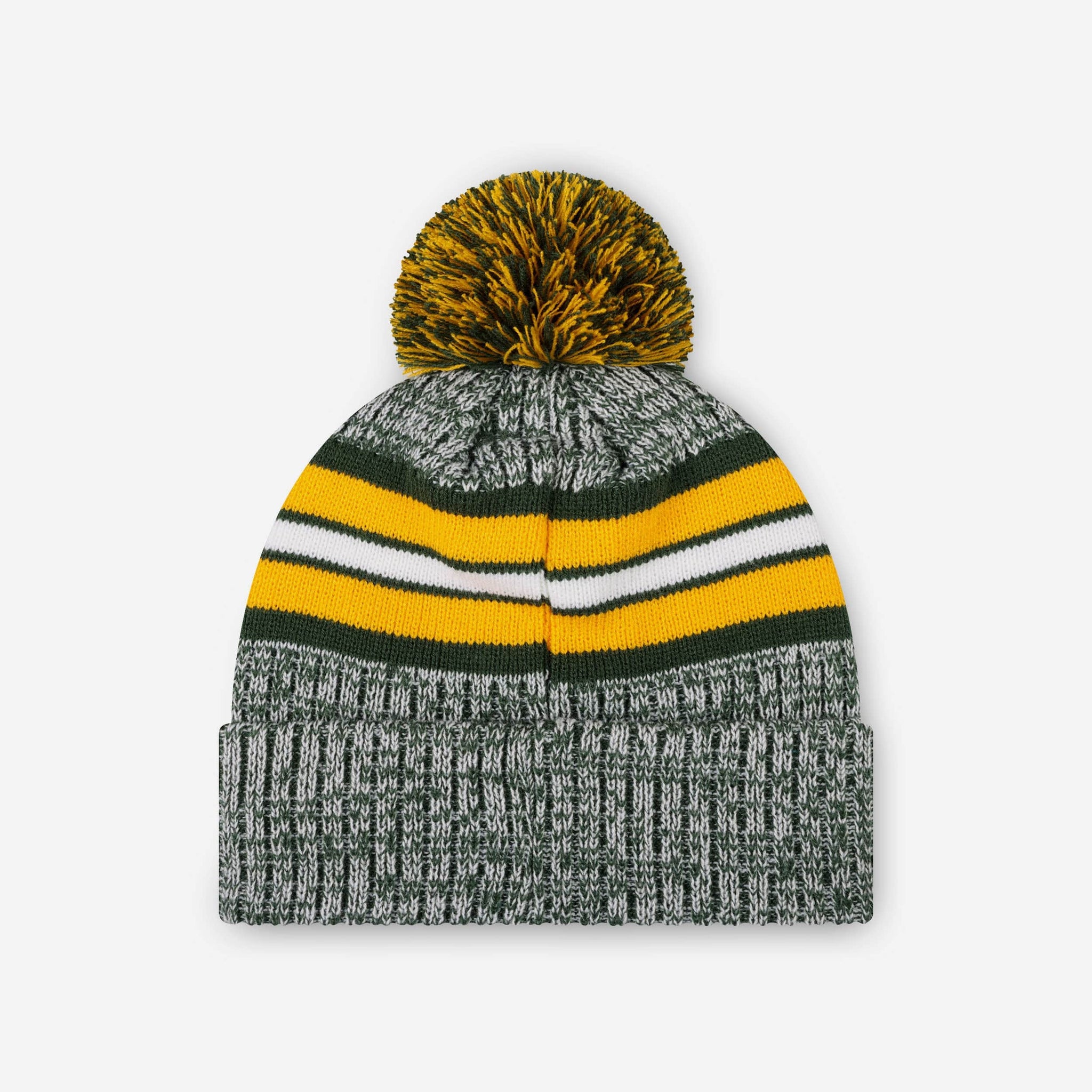 Don’t get left out in the cold. Make the smart play for gameday and beyond with the Green Bay Packers Heather Team Stripe Lined Pom Beanie!