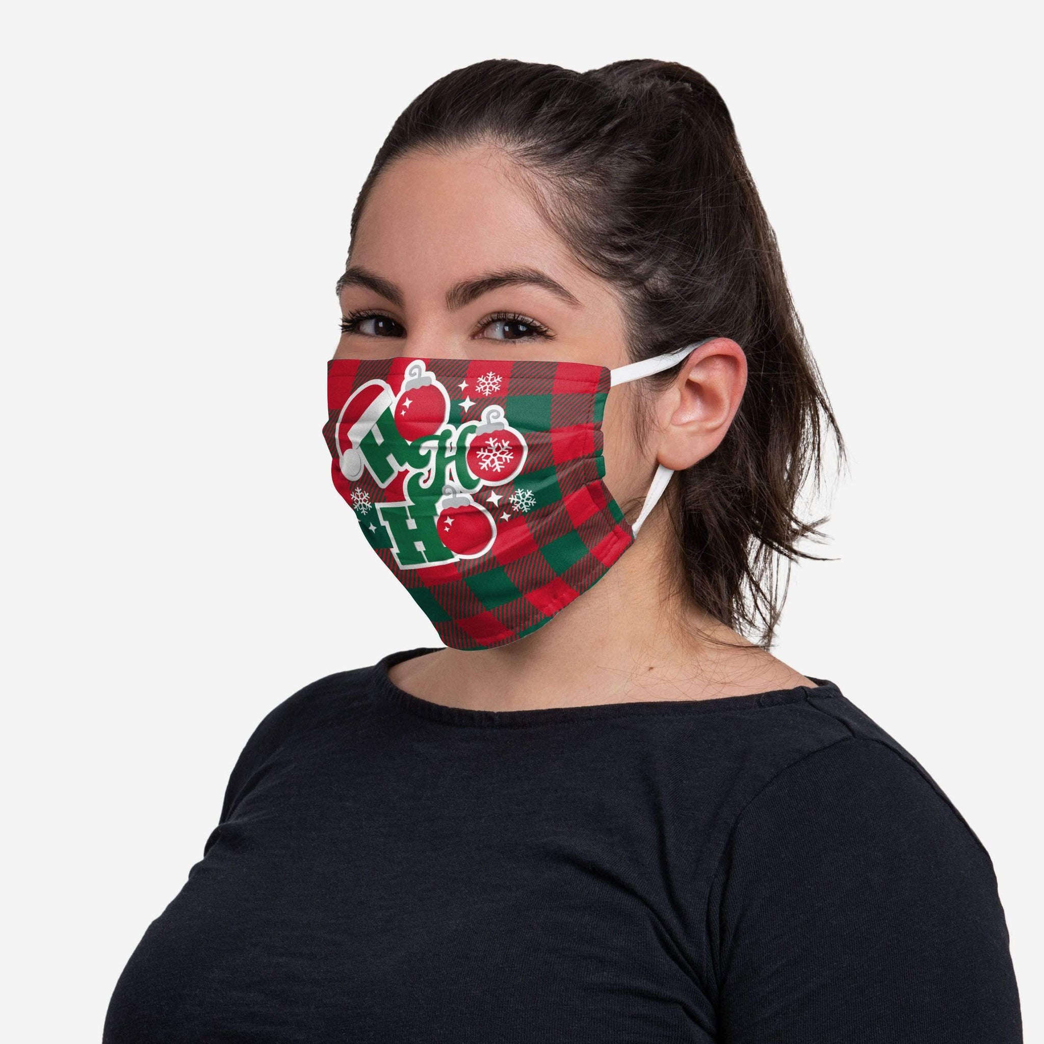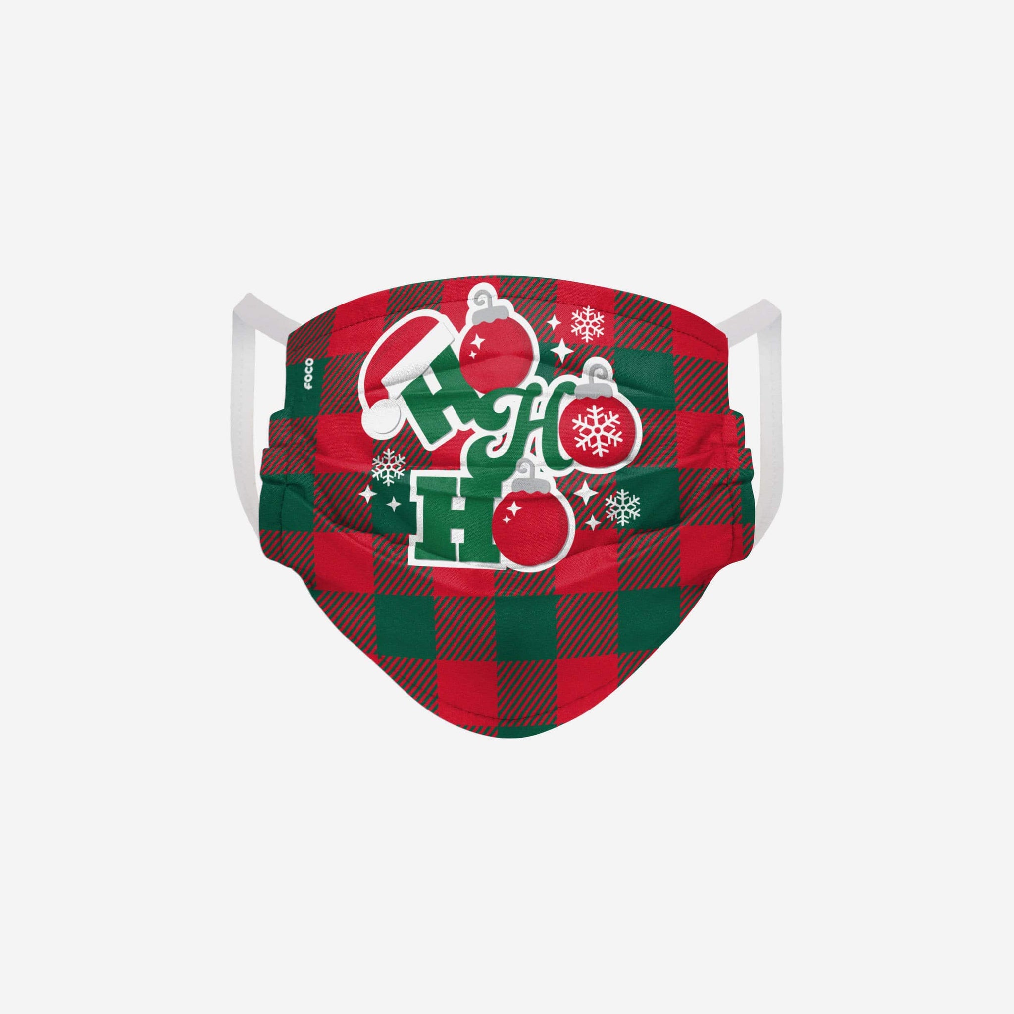 Cover up in style with this Ho Ho Ho Ornaments face covering!