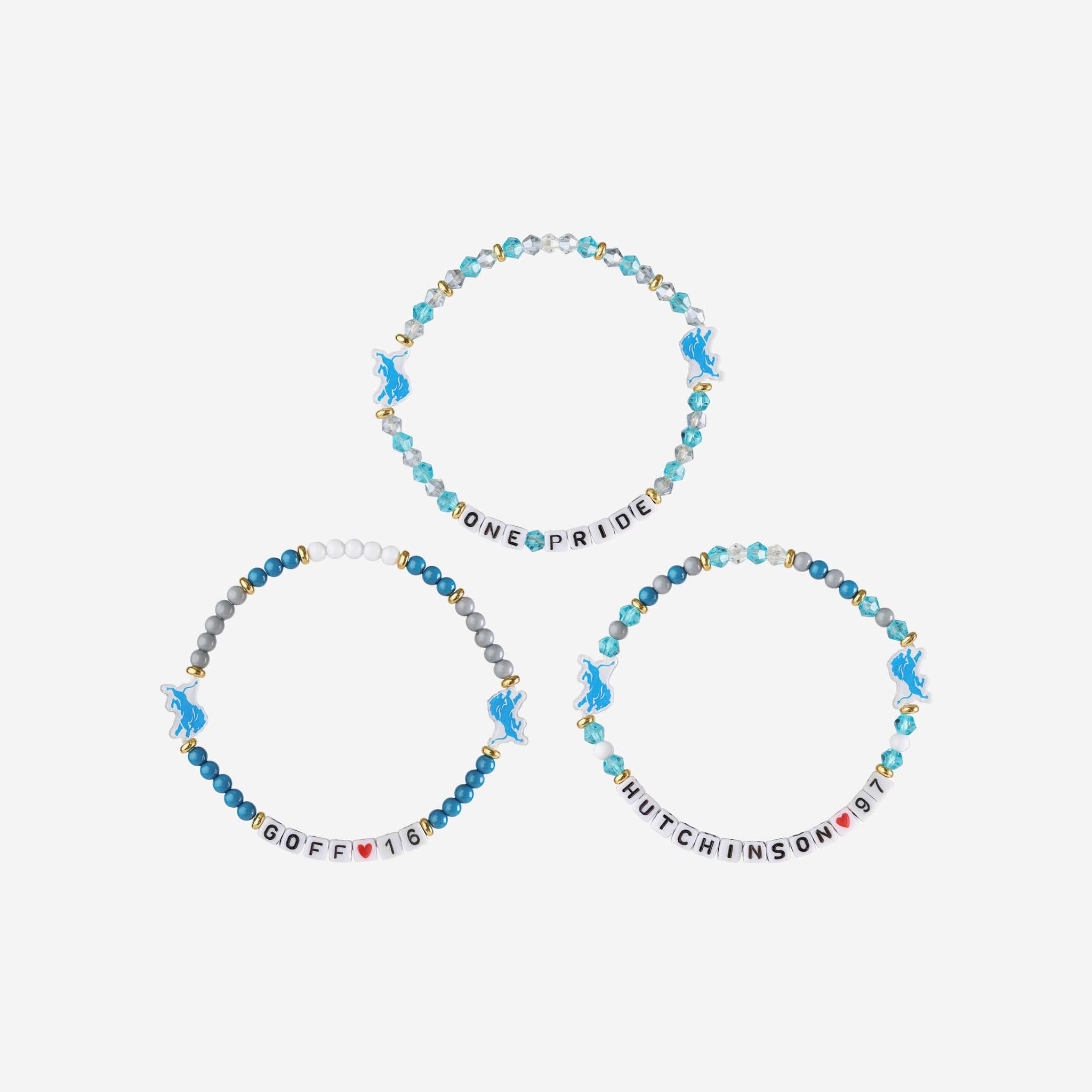 Accessorize and maximize your fandom while impressing your fellow fans with this Jared Goff & Aidan Hutchinson Detroit Lions 3 Pack Player Friendship Bracelet. These matching friendship bracelets have an all-over team-colored design and team logo displays, which makes them the perfect way to show your support for the Detroit Lions and get in on the latest accessory craze.