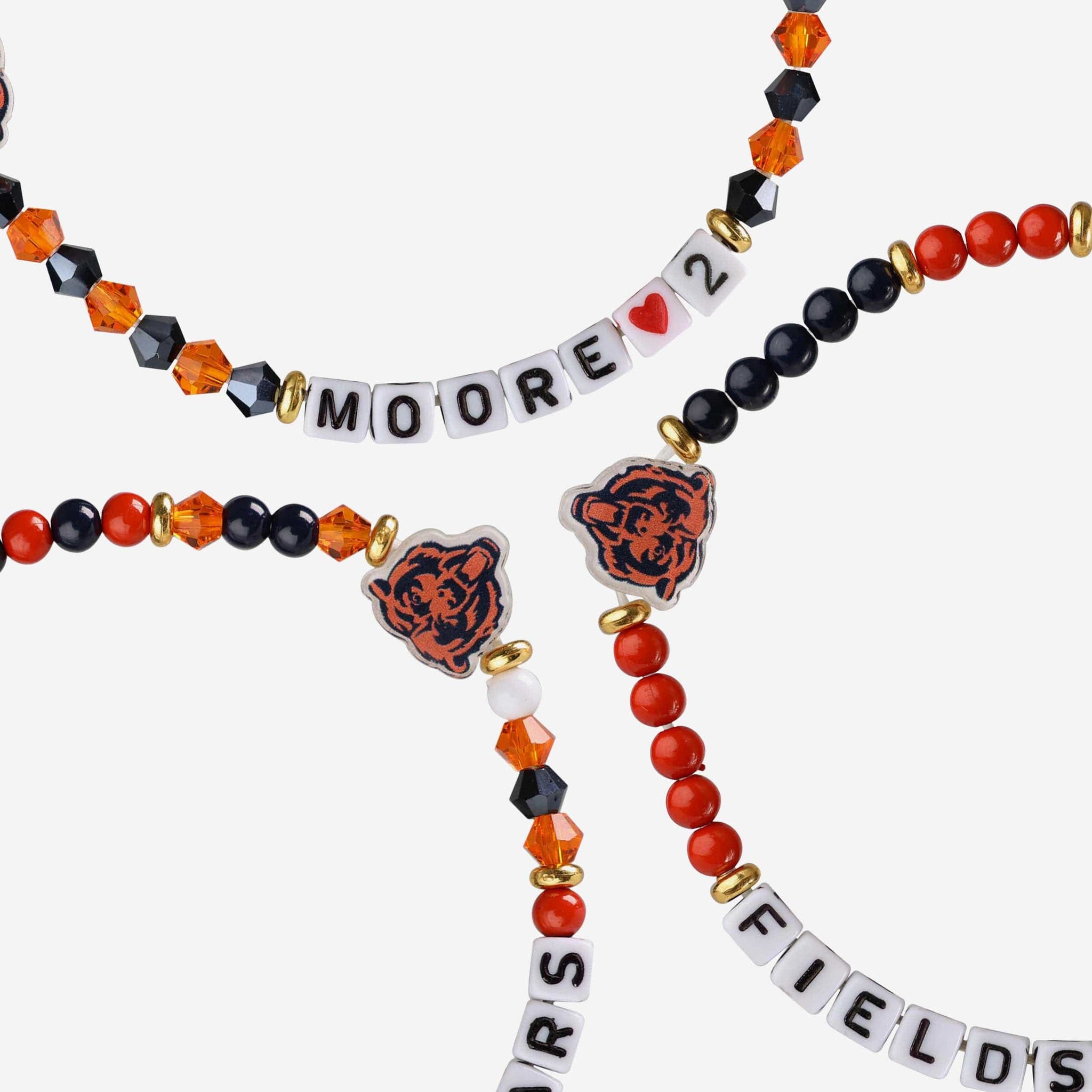 - Thematic words displayed: Letter cubes are organized on a friendship bracelet string to display team-specific words, messages, and player names that will make sure these Justin Fields & DJ Moore player friendship bracelets always have your team spirit front and center.