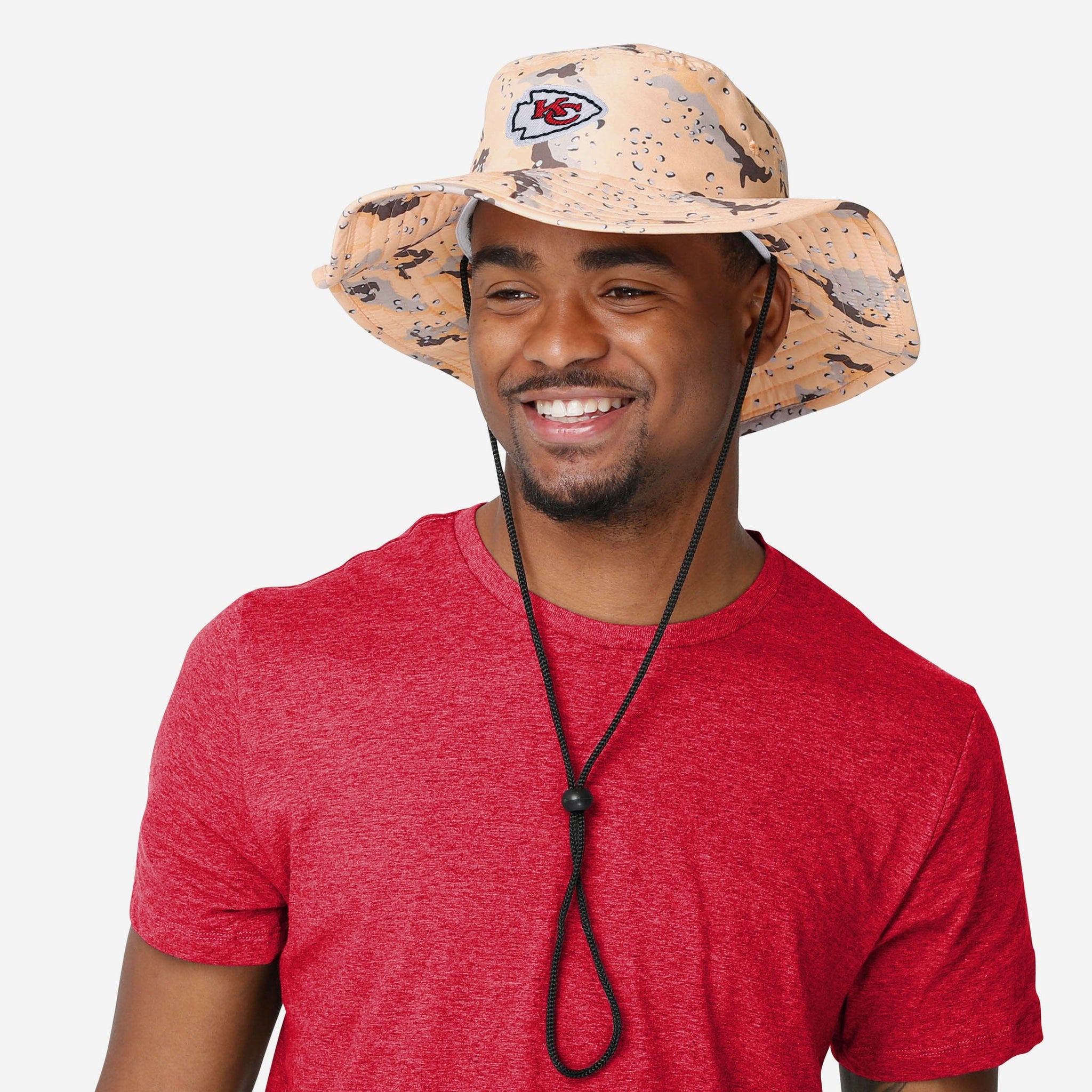 Beat the heat - and look good doing it. Your warm weather wardrobe just isn't complete without a heaping helping of team spirit! That's where this Kansas City Chiefs Light Desert Camo Boonie Hat comes in!