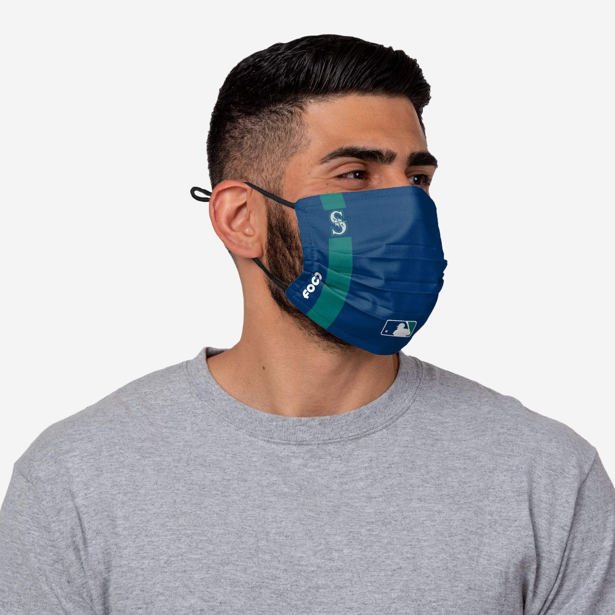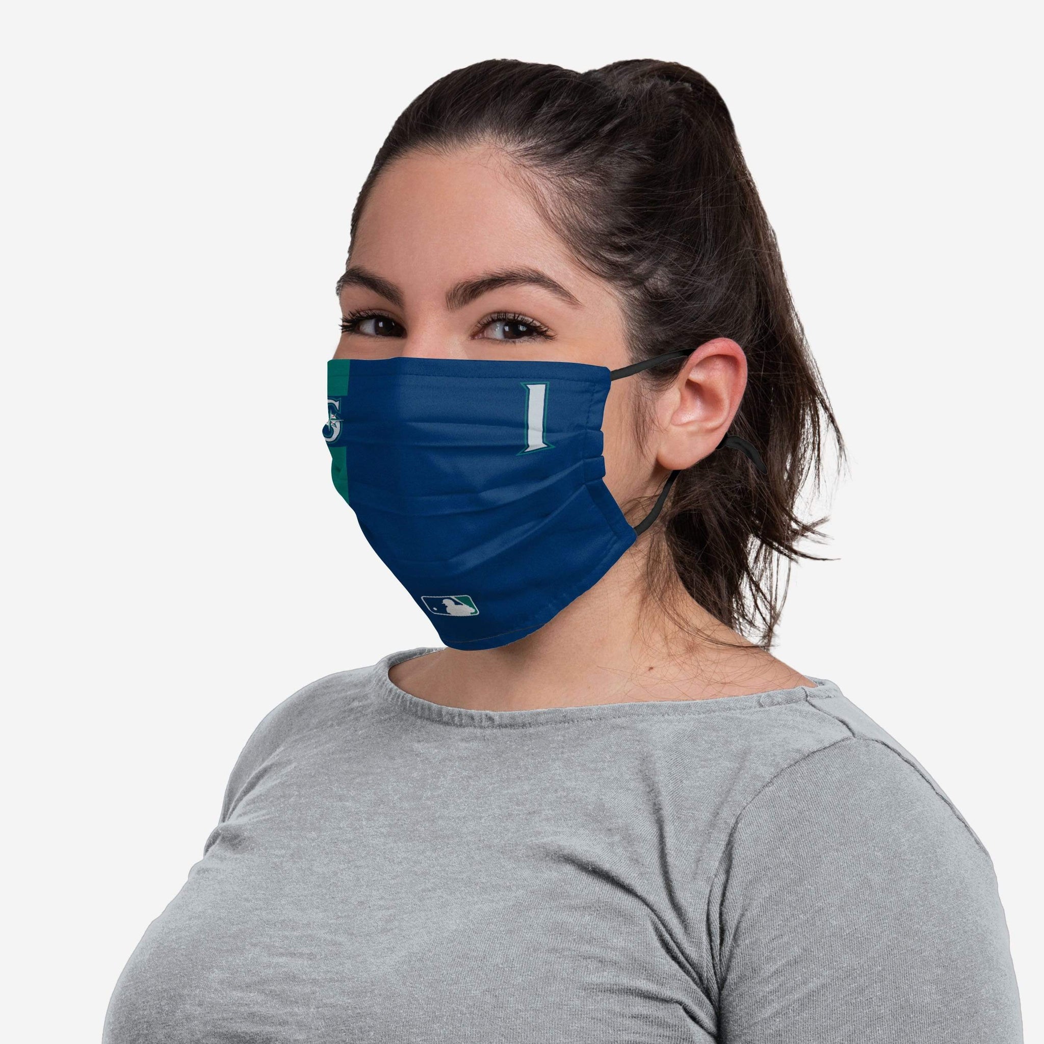 Your team, your player, your elite coverage! Cover up with the Kyle Lewis Seattle Mariners On-Field Adjustable Navy & Teal face covering!