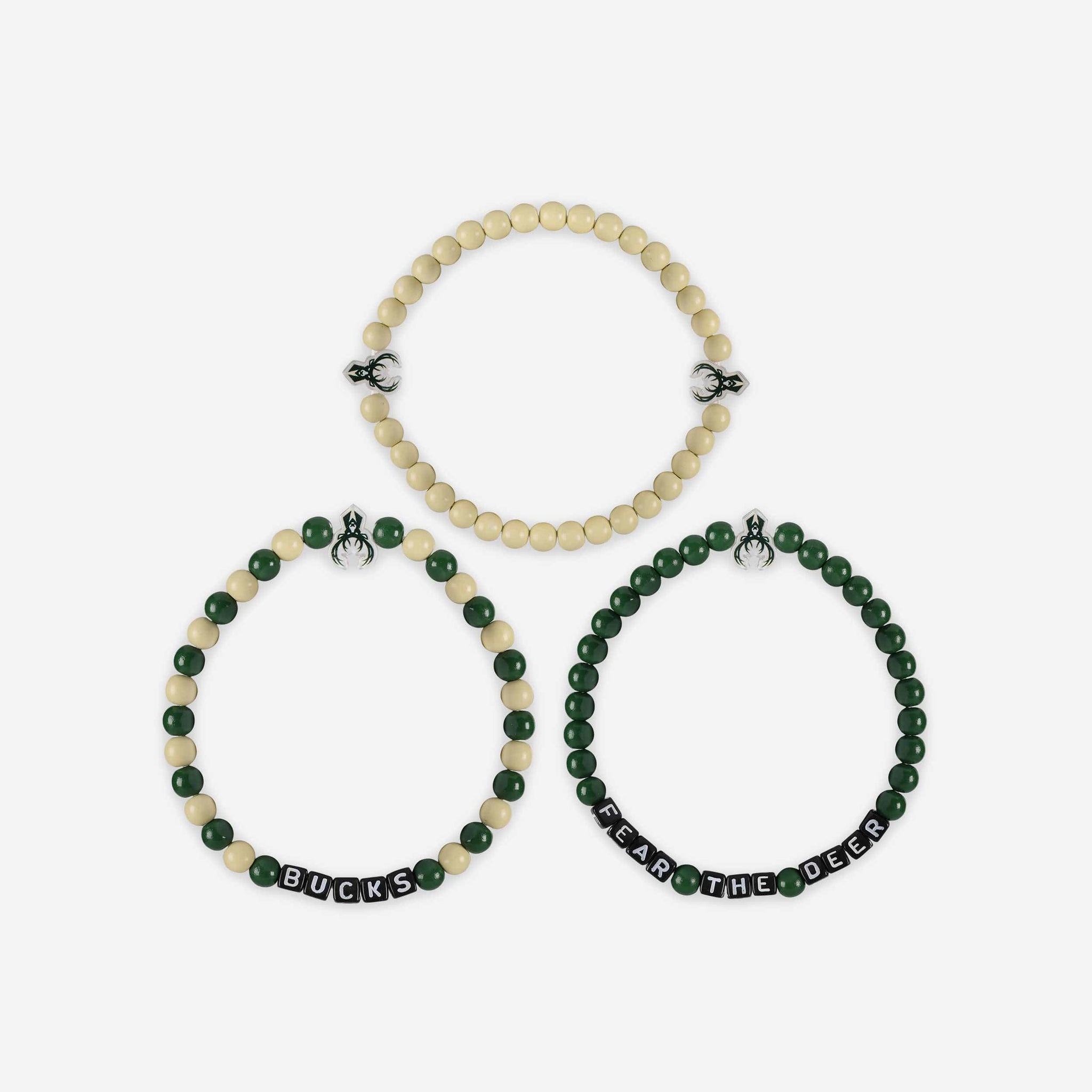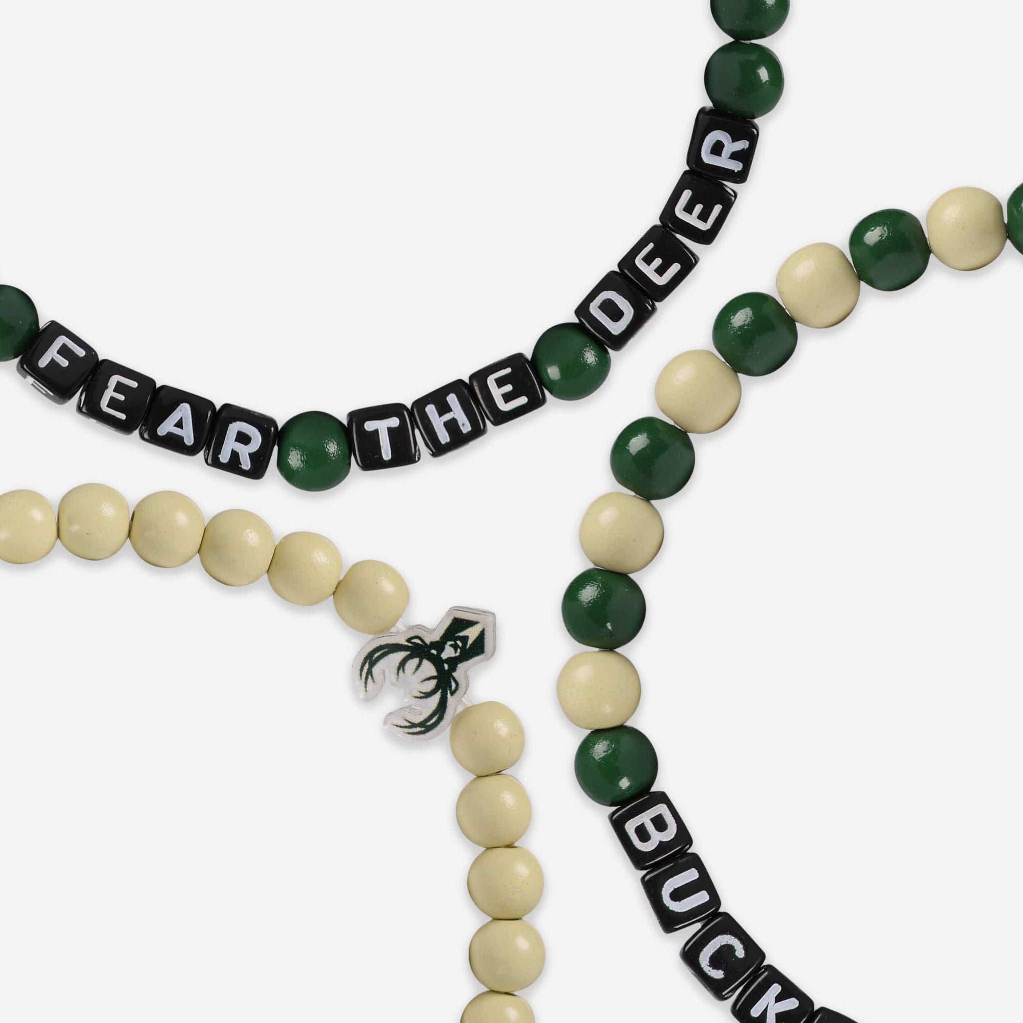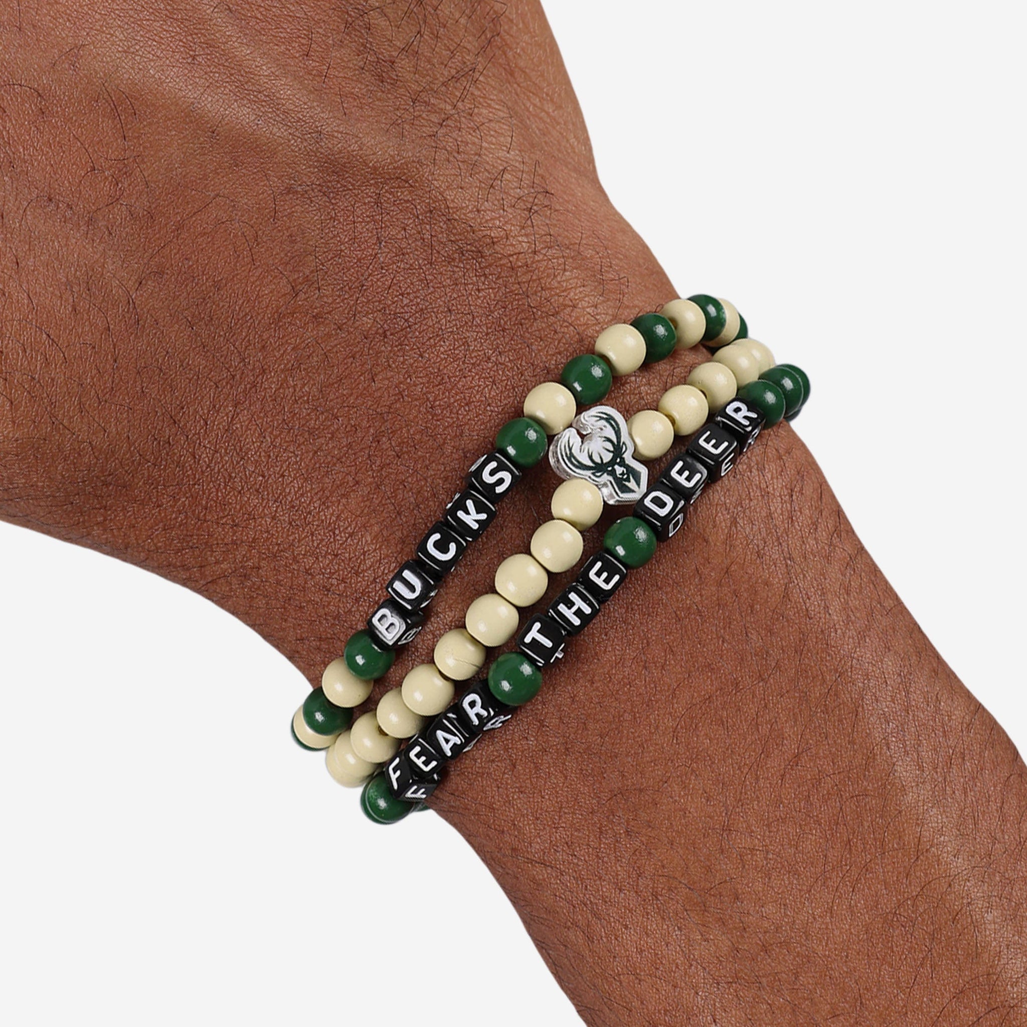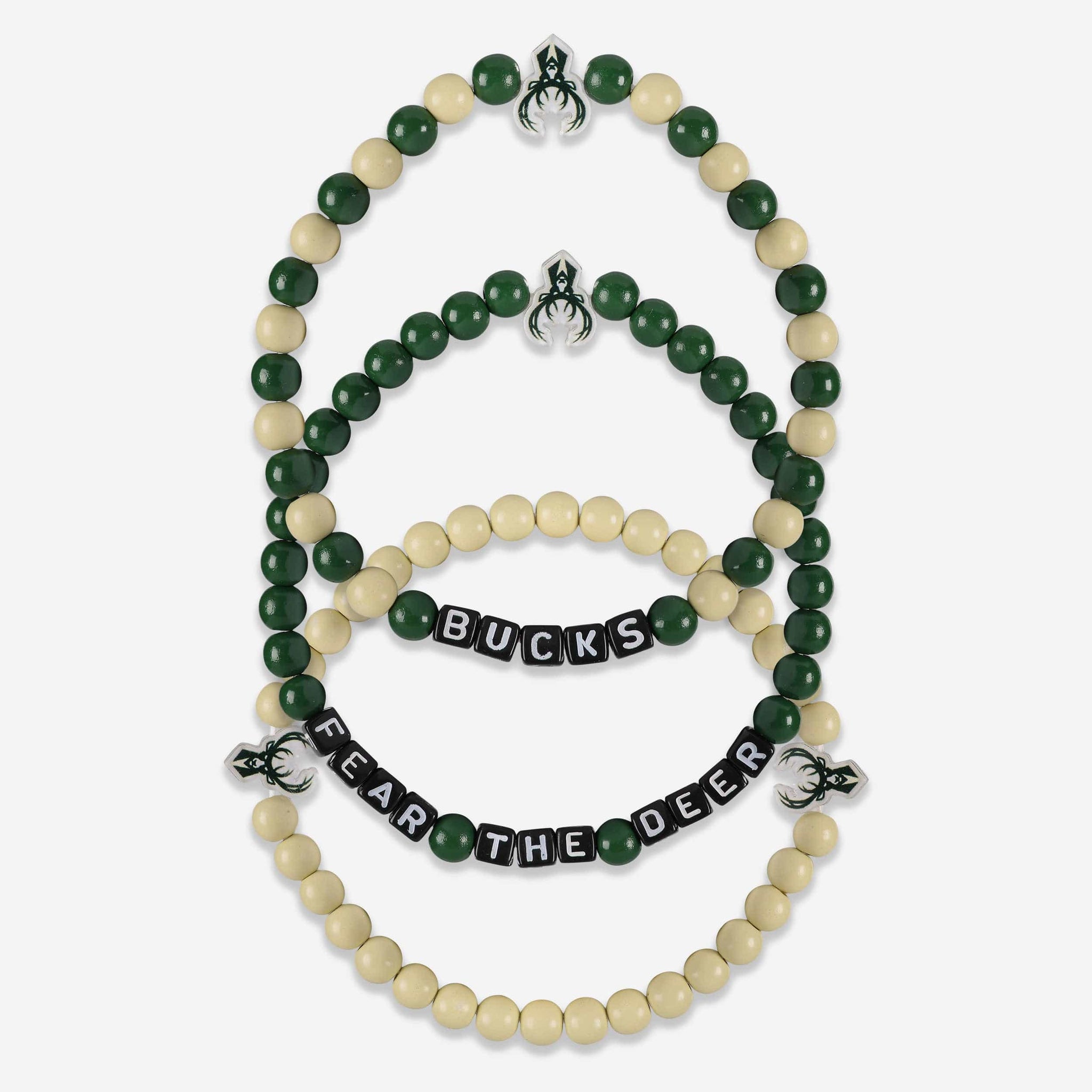 A whole new way to rep the team in style is here. Step up your fan fashion sense with this Milwaukee Bucks 3 Pack Beaded Friendship Bracelet. These matching friendship bracelets have an all-over team-colored design and team logo displays, which makes them the perfect way to show your support for the Milwaukee Bucks on gamedays and every day in between.