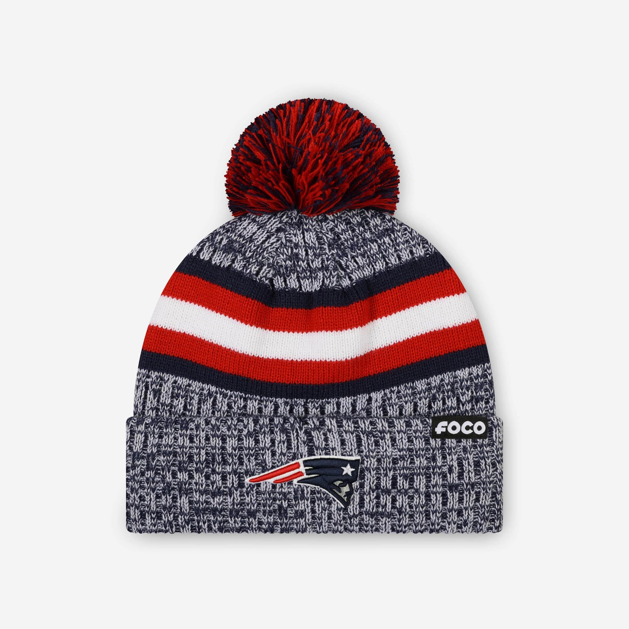 New England Patriots Heather Team Stripe Lined Pom Beanie FOCO - FOCO.com