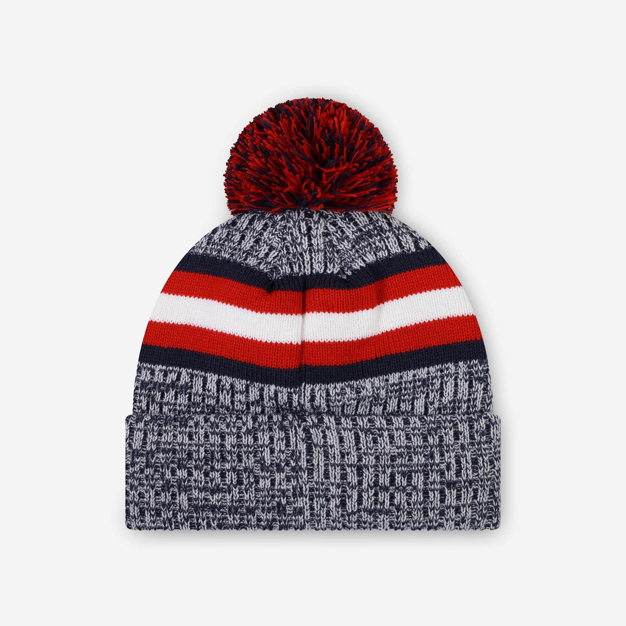 Don’t get left out in the cold. Make the smart play for gameday and beyond with the New England Patriots Heather Team Stripe Lined Pom Beanie!