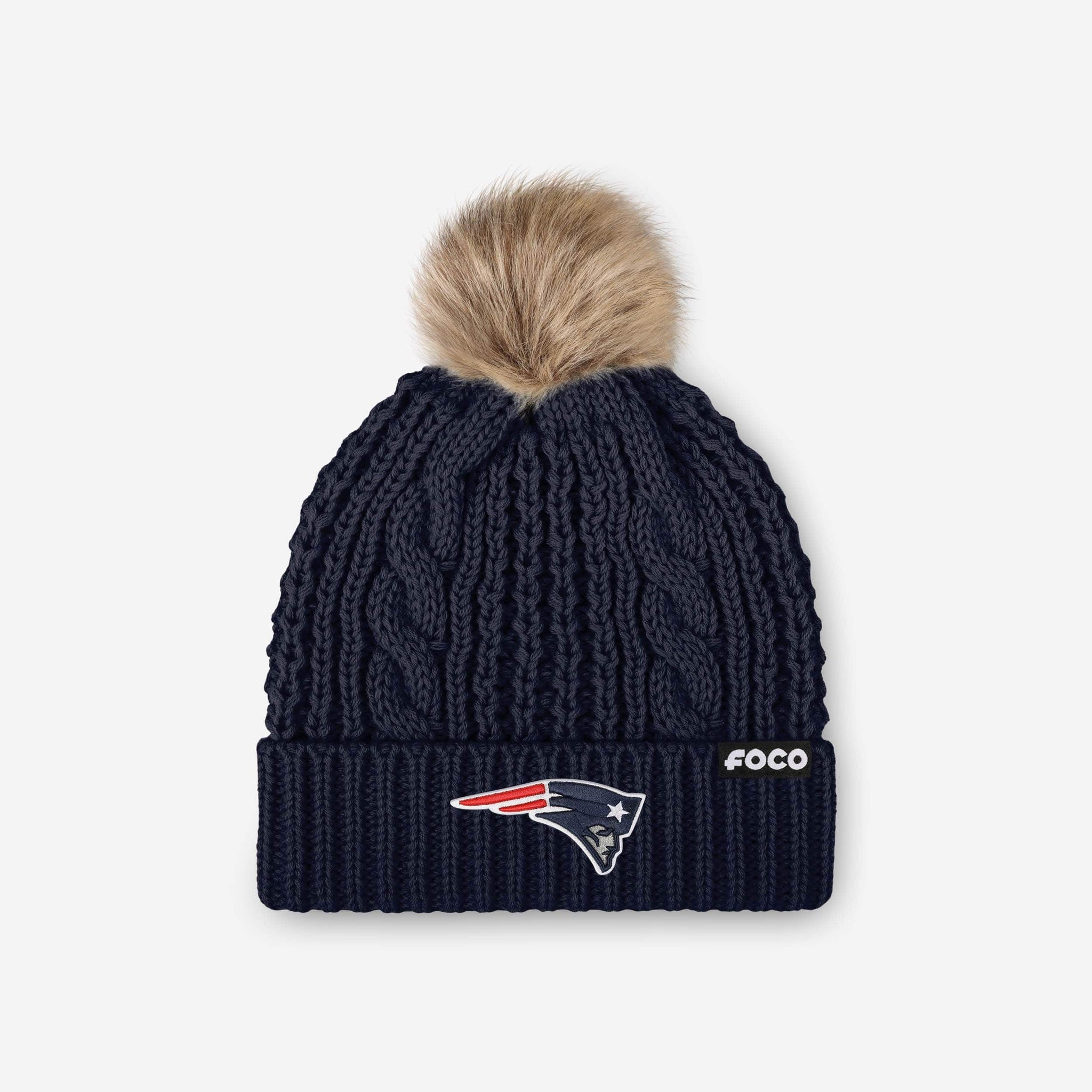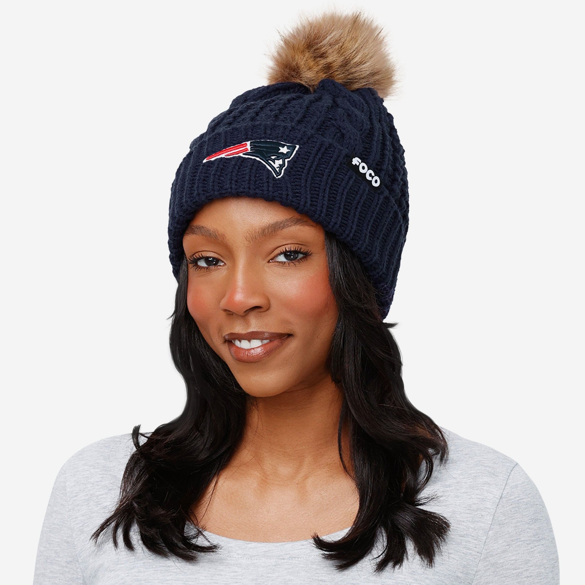 Putting together the ultimate fit for the tailgate and beyond? Make sure to get your head in the game with the New England Patriots Women's Faux Fur Pom Beanie!