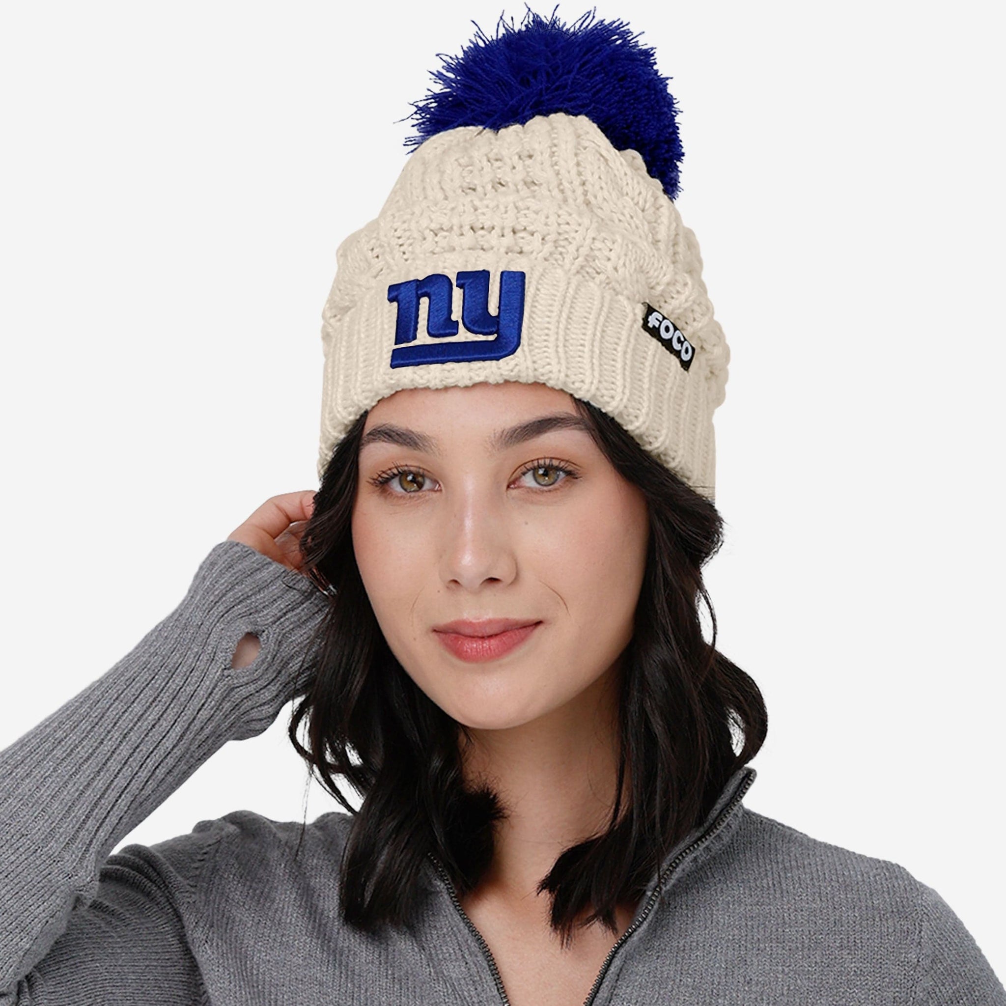 Putting together the ultimate fit for the tailgate and beyond? Make sure to get your head in the game with the New York Giants Women's Primary Logo White Cable Knit Pom Beanie!