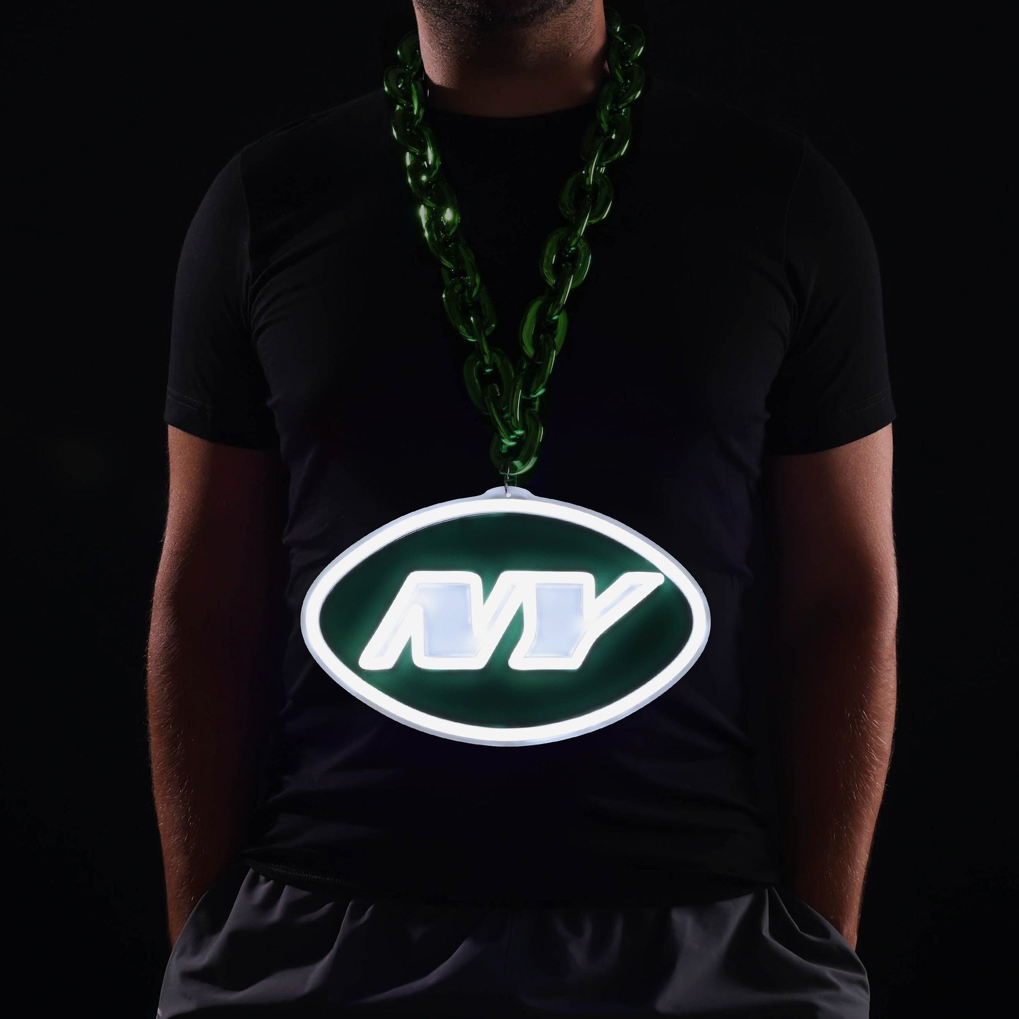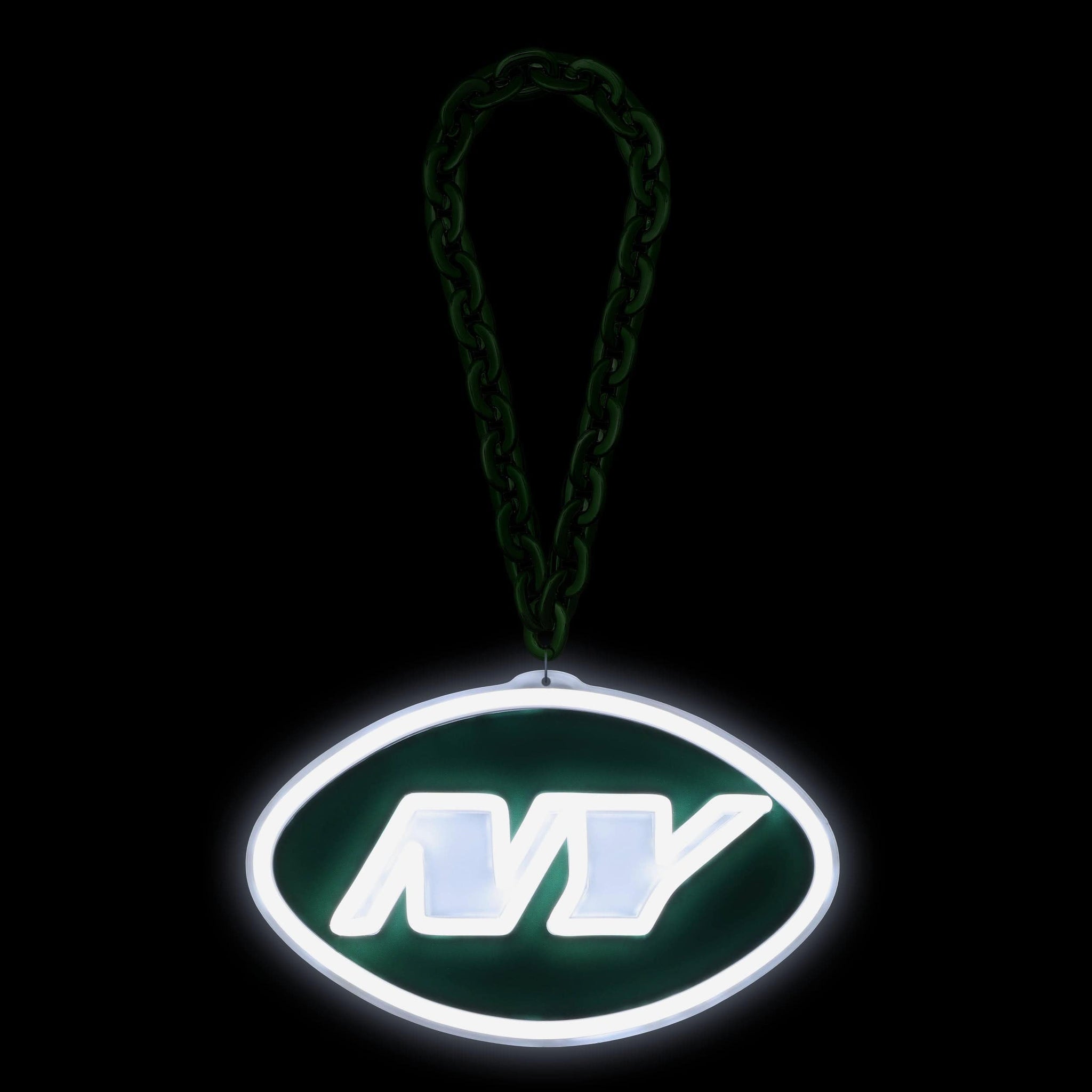 Fandom so bright, you’re going to need shades! Get ready to light things up on gamedays and beyond with the New York Jets LED Neon Big Logo Chain Necklace.