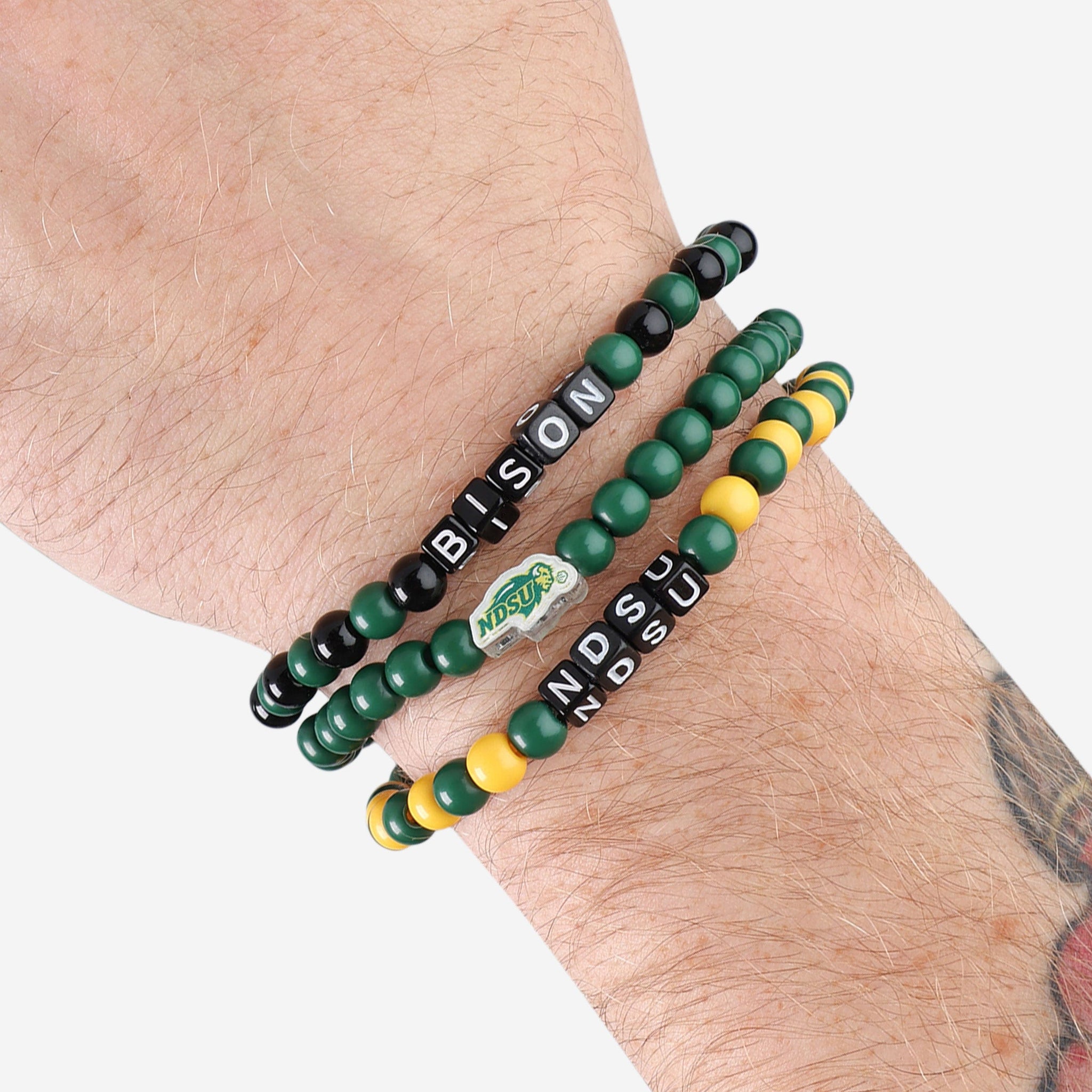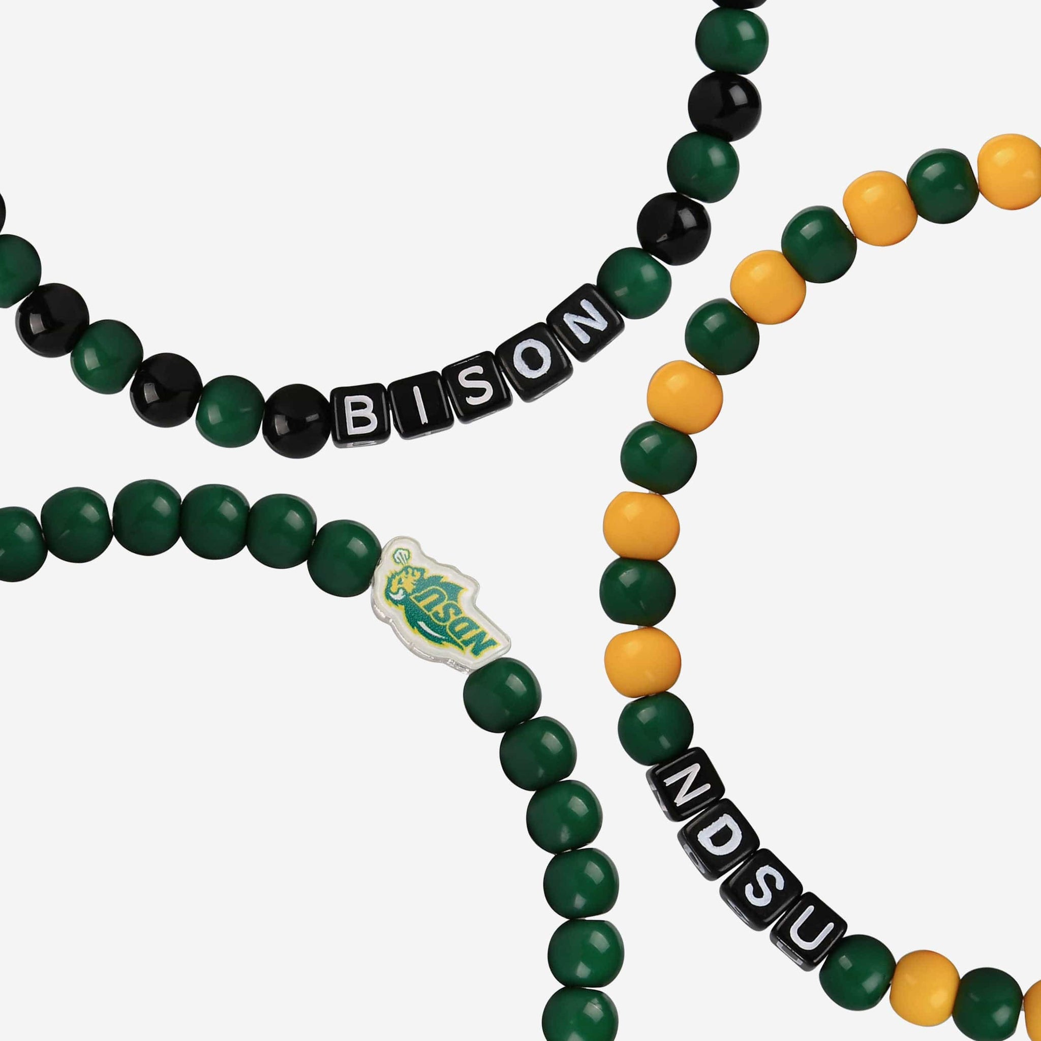 A whole new way to rep the team in style is here. Step up your fan fashion sense with this North Dakota State Bison 3 Pack Beaded Friendship Bracelet. These matching friendship bracelets have an all-over team-colored design and team logo displays, which makes them the perfect way to show your support for the North Dakota State Bison on gamedays and every day in between.