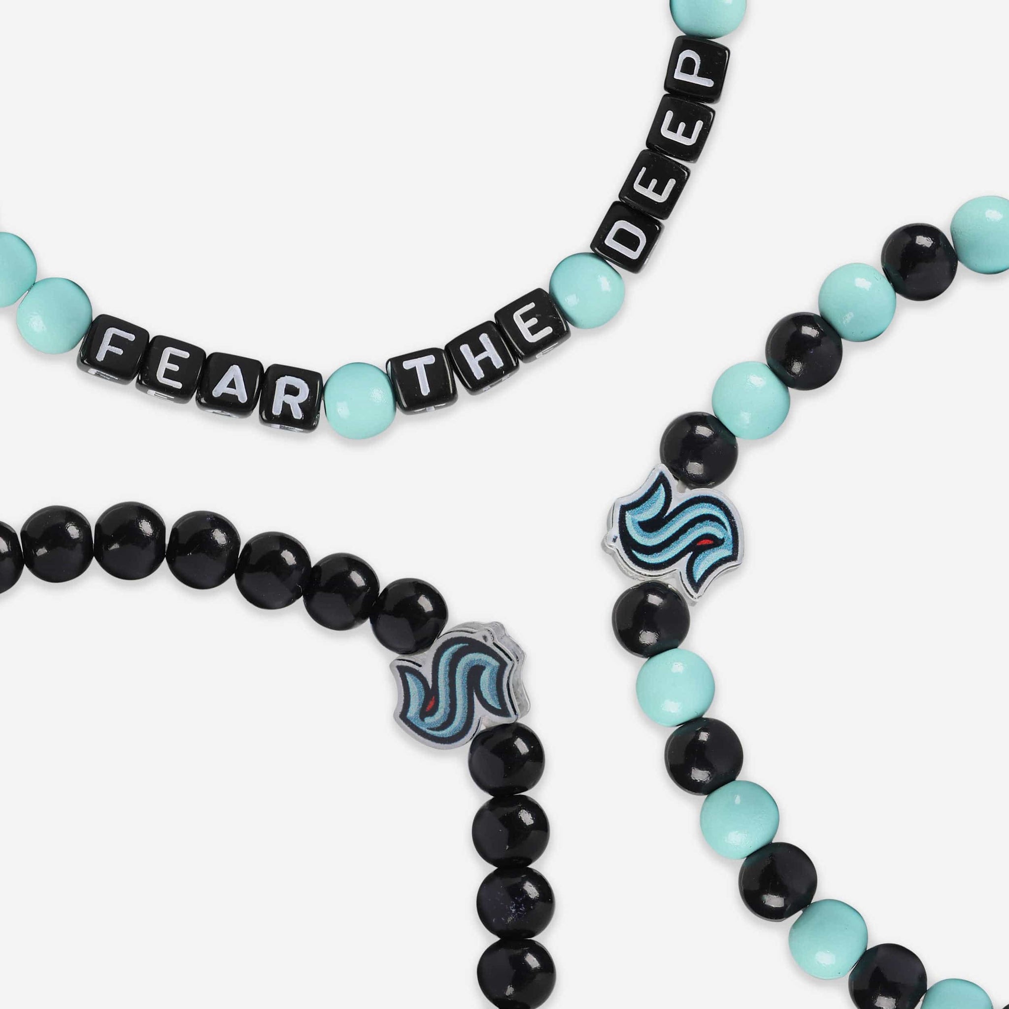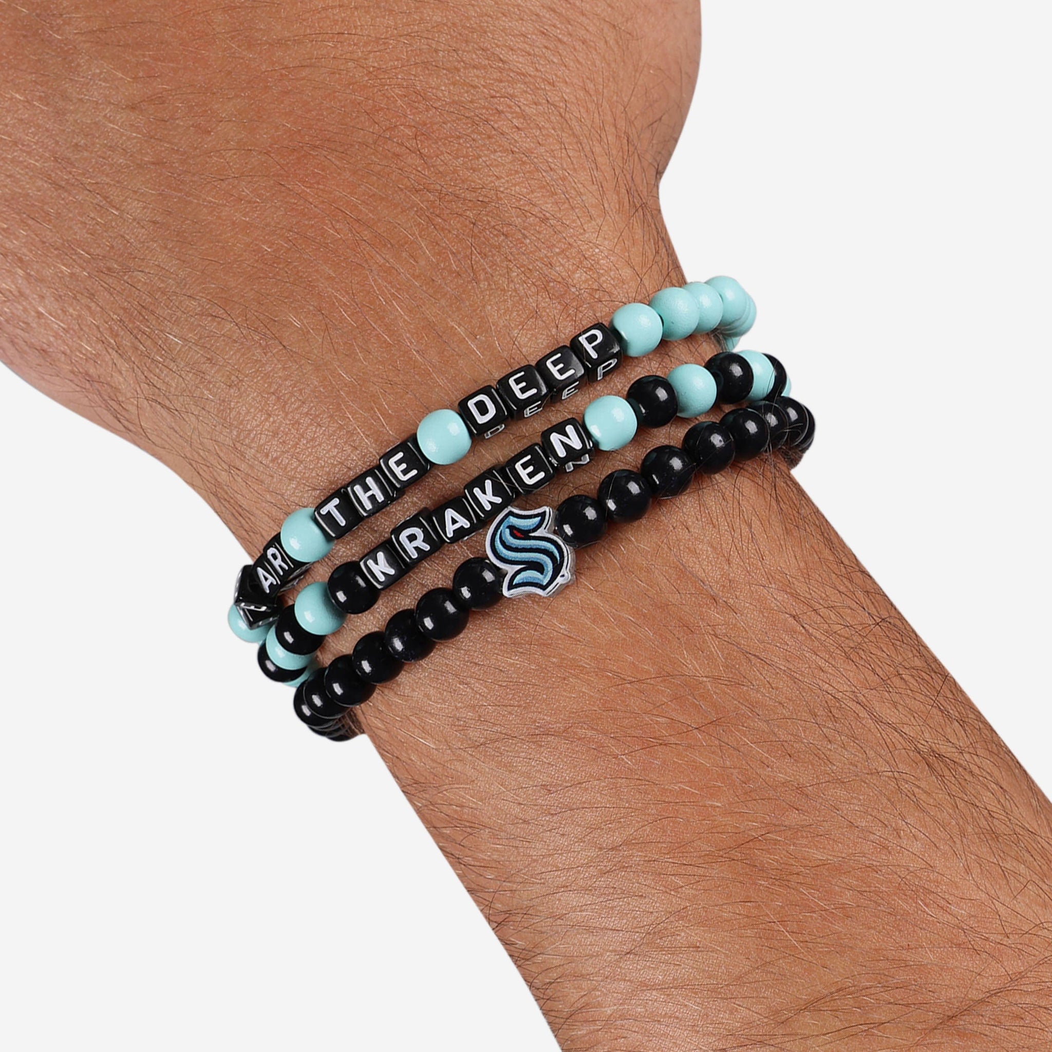 A whole new way to rep the team in style is here. Step up your fan fashion sense with this Seattle Kraken 3 Pack Beaded Friendship Bracelet. These matching friendship bracelets have an all-over team-colored design and team logo displays, which makes them the perfect way to show your support for the Seattle Kraken on gamedays and every day in between.