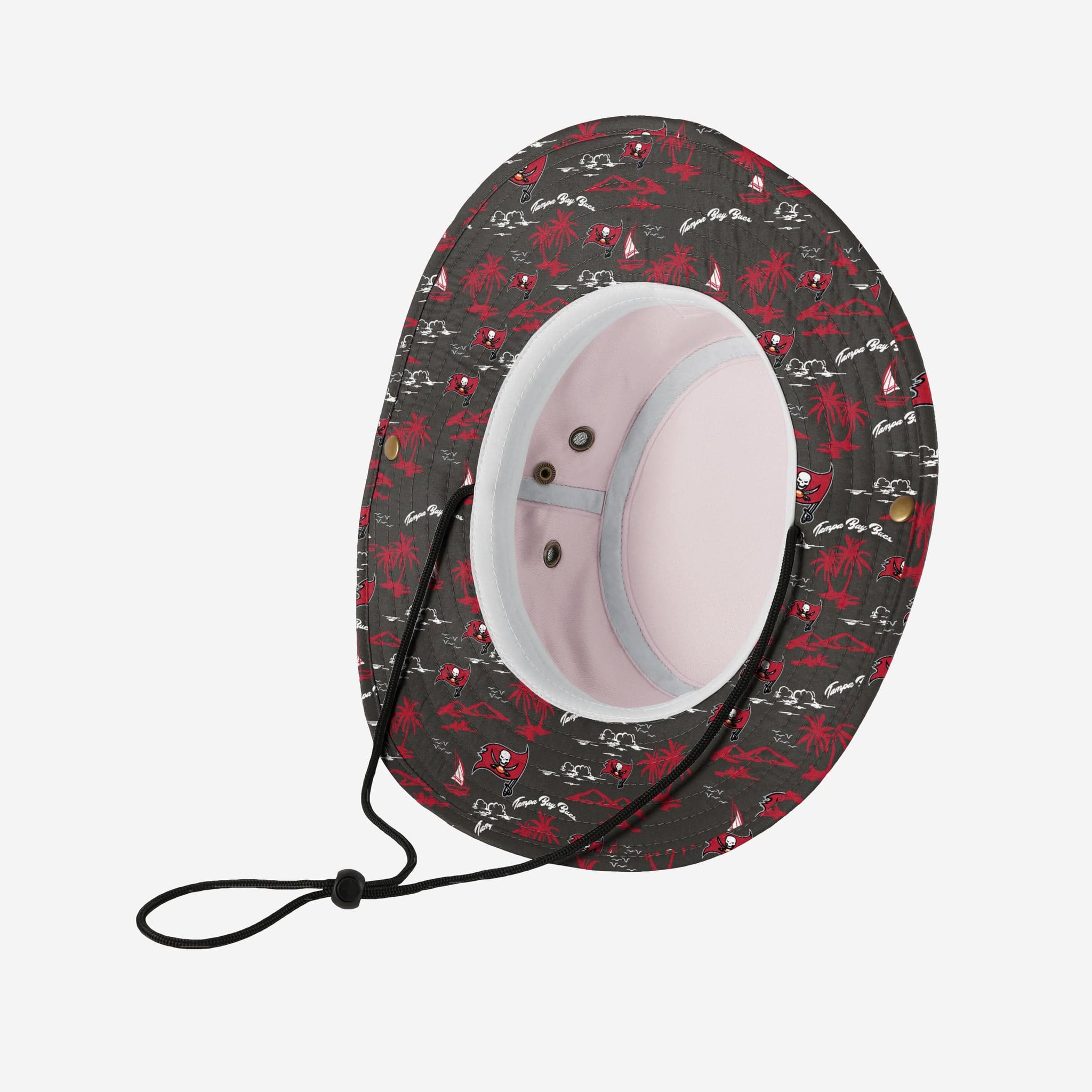 - Team-colored, tropical design with repeat team logo display on panel under brim that will have you running on island time