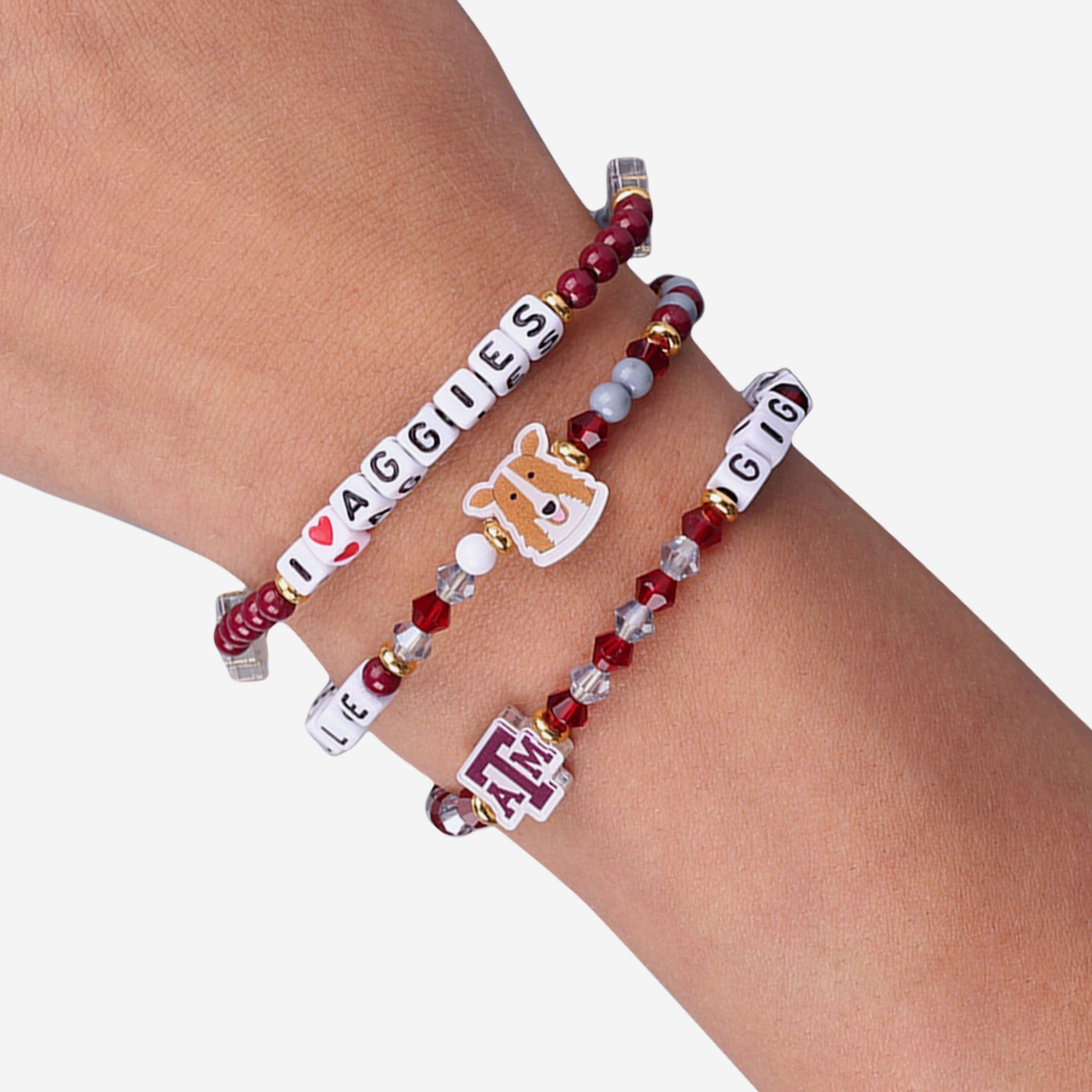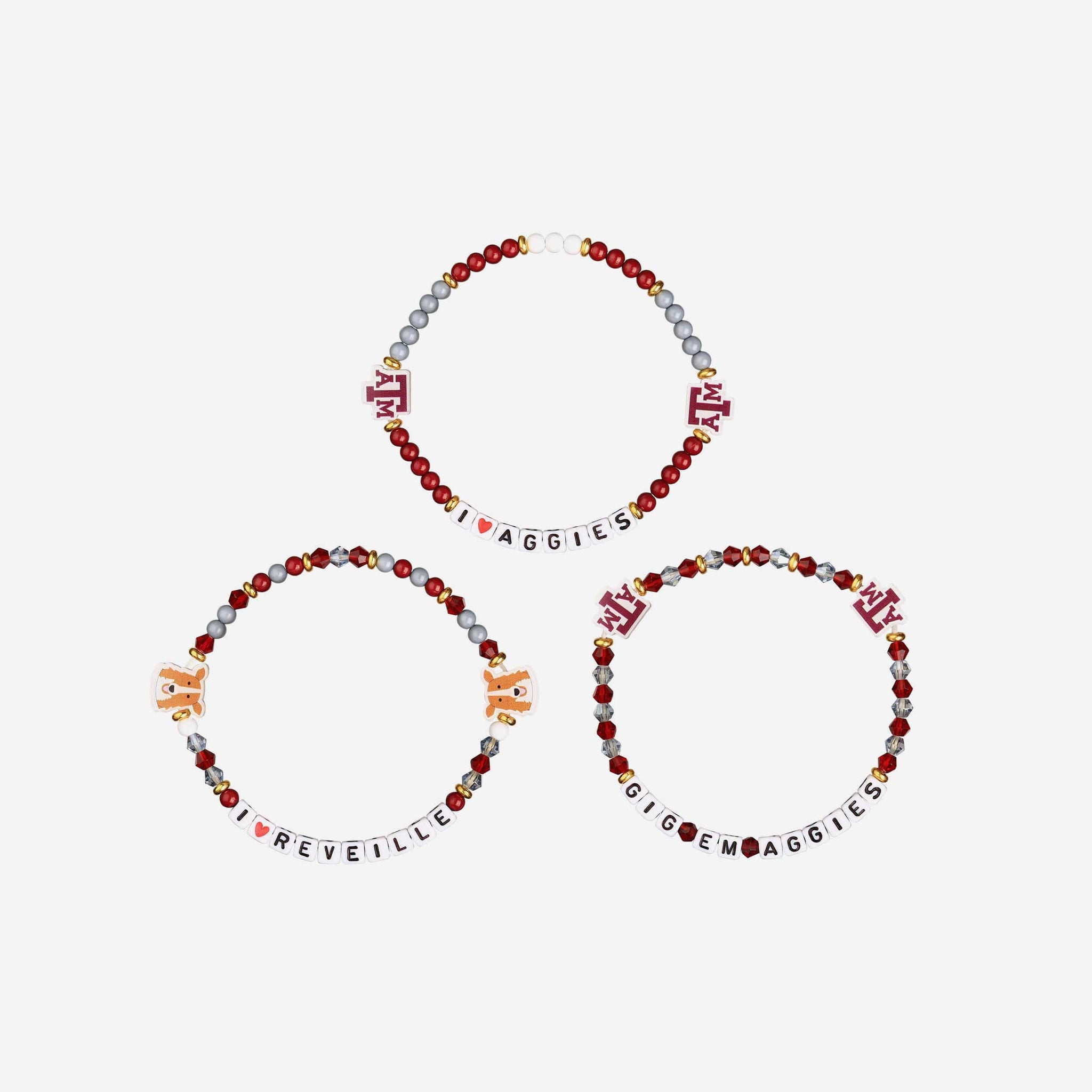 Accessorize and maximize your fandom while impressing your fellow fans with this Texas A&M Aggies 3 Pack Friendship Bracelet. These matching friendship bracelets have an all-over team-colored design and team logo displays, which makes them the perfect way to show your support for the Texas A&M Aggies and get in on the latest accessory craze.