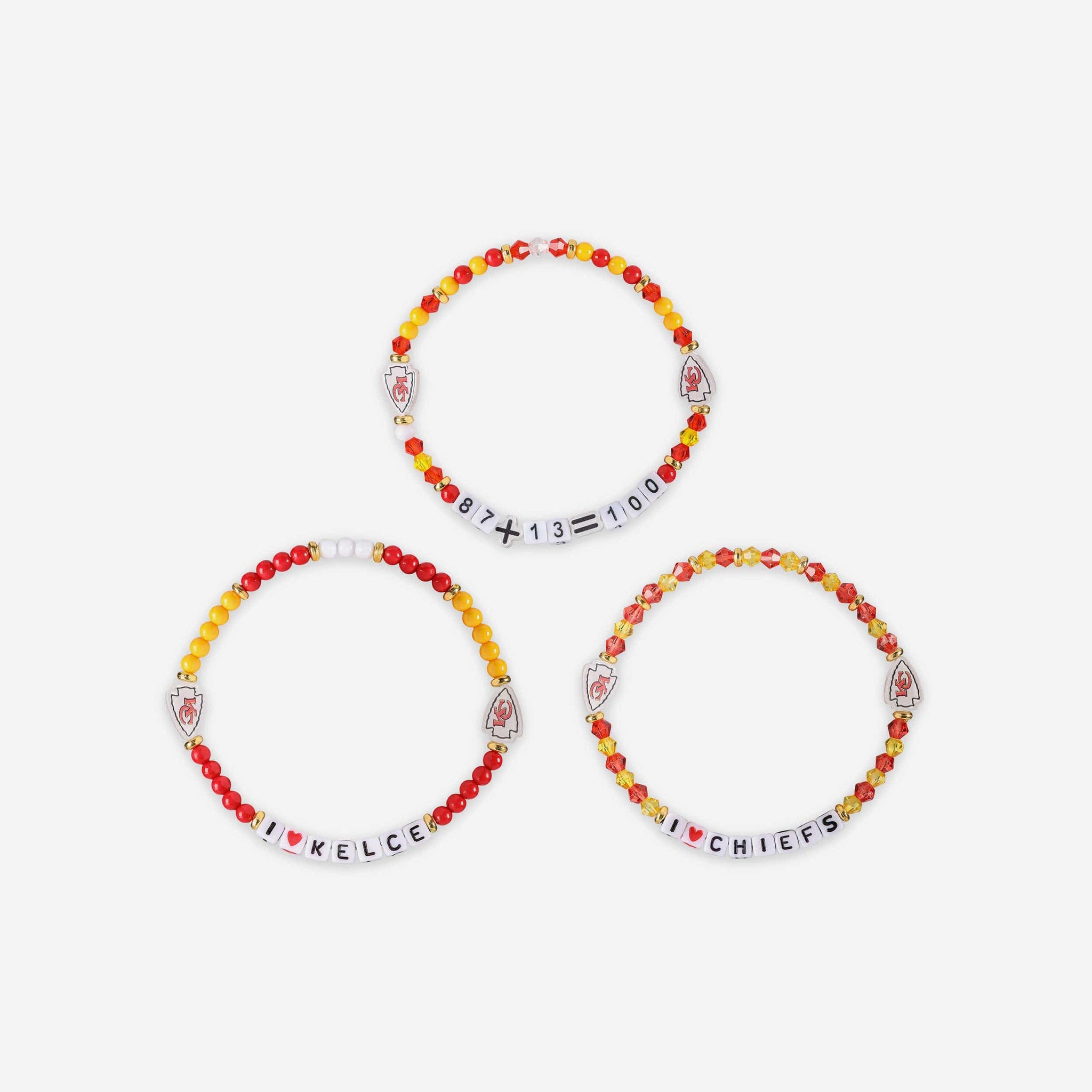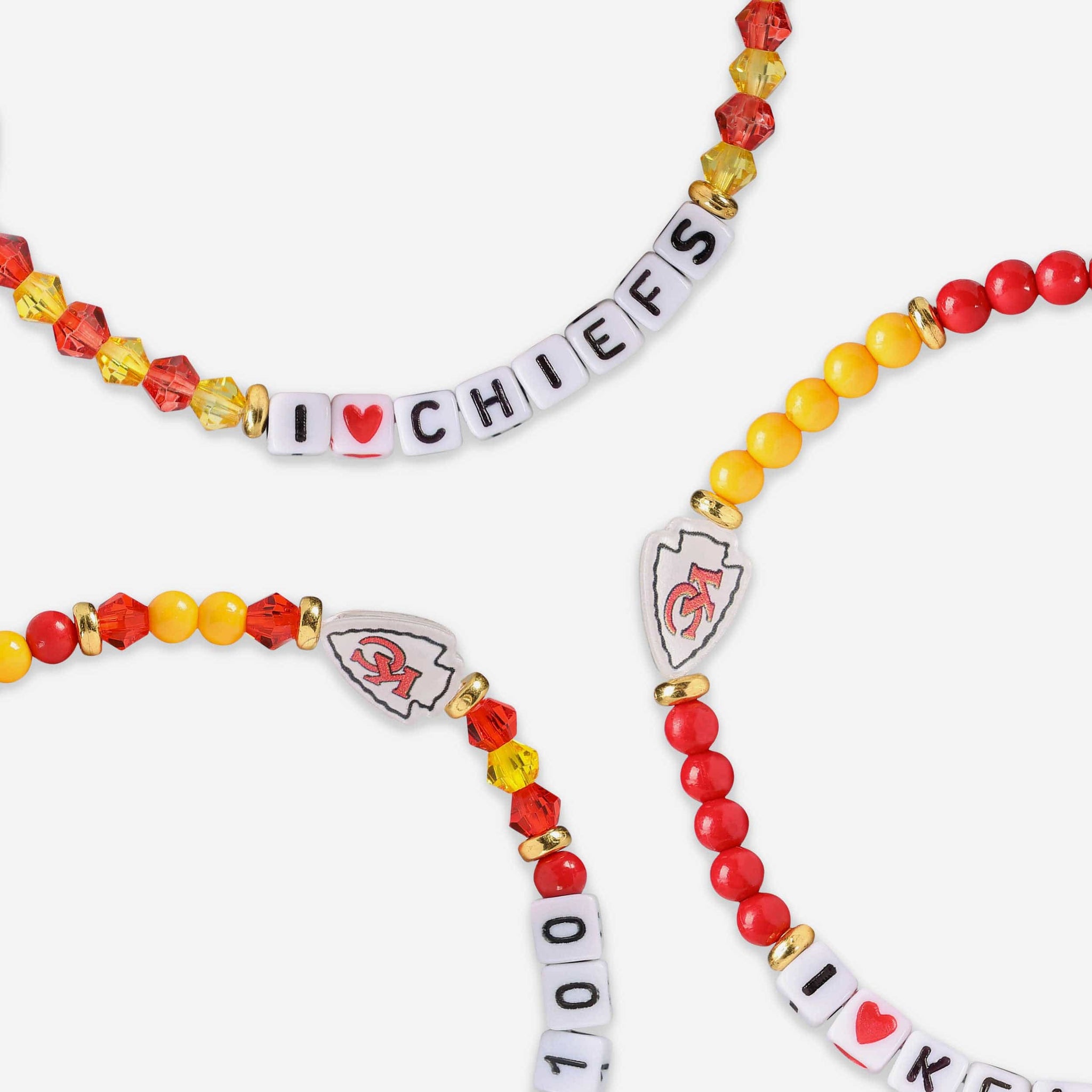 Accessorize and maximize your fandom while impressing your fellow fans with this Travis Kelce Kansas City Chiefs 3 Pack Friendship Bracelet. These matching friendship bracelets have an all-over team-colored design and team logo displays, which makes them the perfect way to show your support for the Kansas City Chiefs and get in on the latest accessory craze.