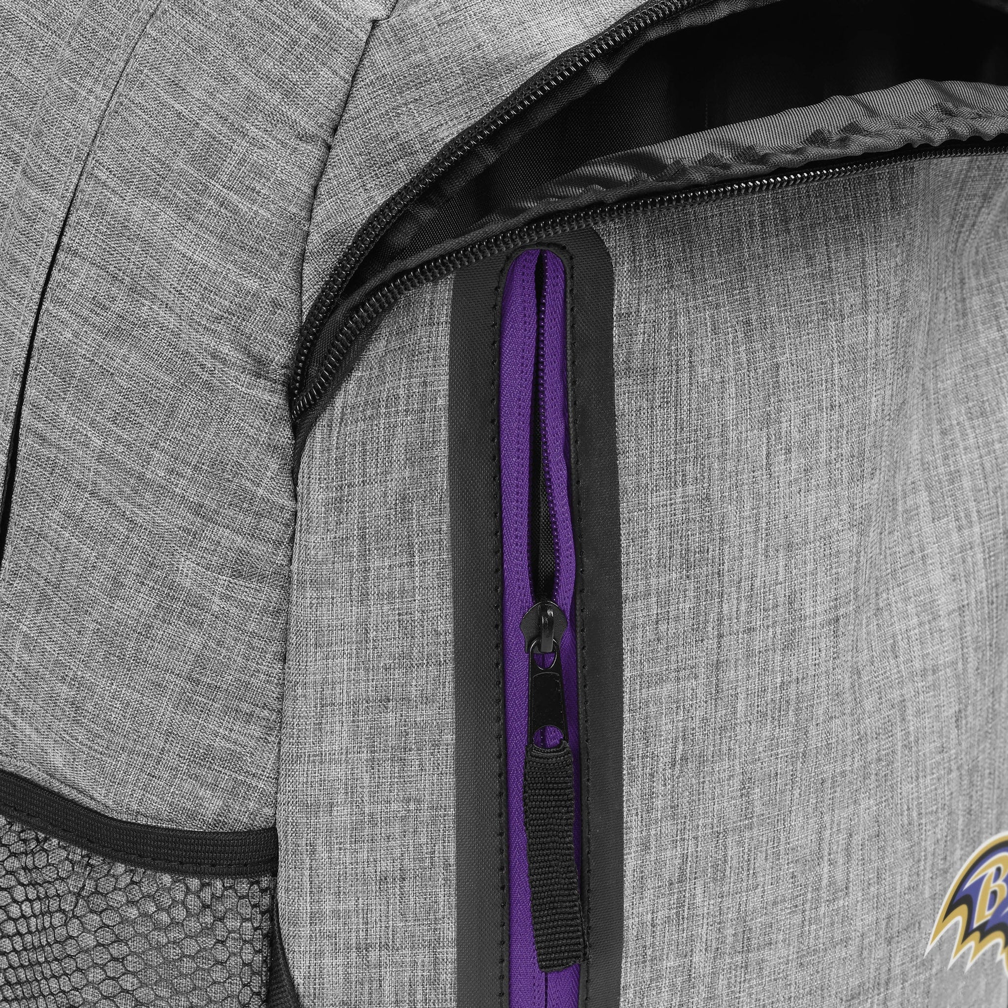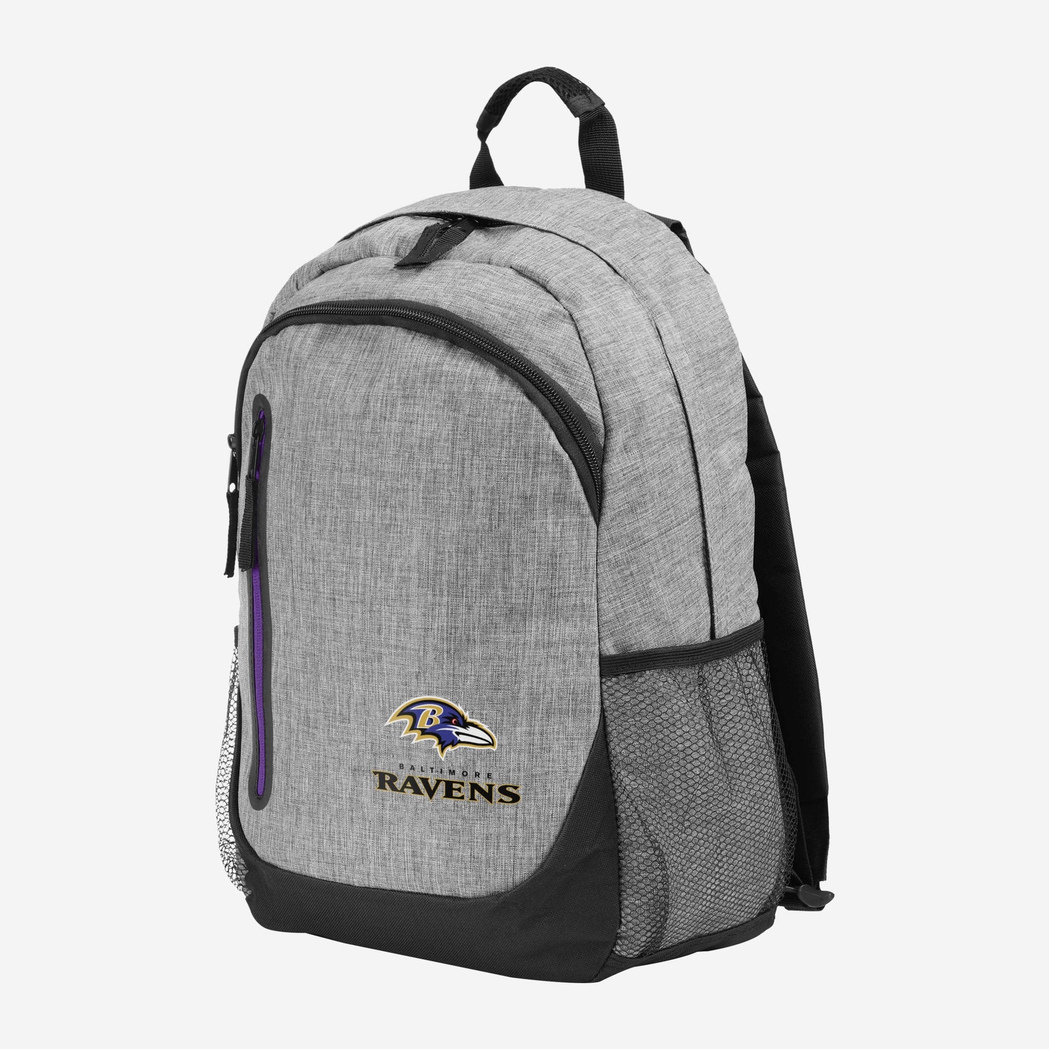 Putting the team on your back never looked so darn good. Add the Baltimore Ravens Heather Grey Bold Color Backpack to your lineup for plenty of space to store your gym clothes, school supplies, and all your glorious team spirit.