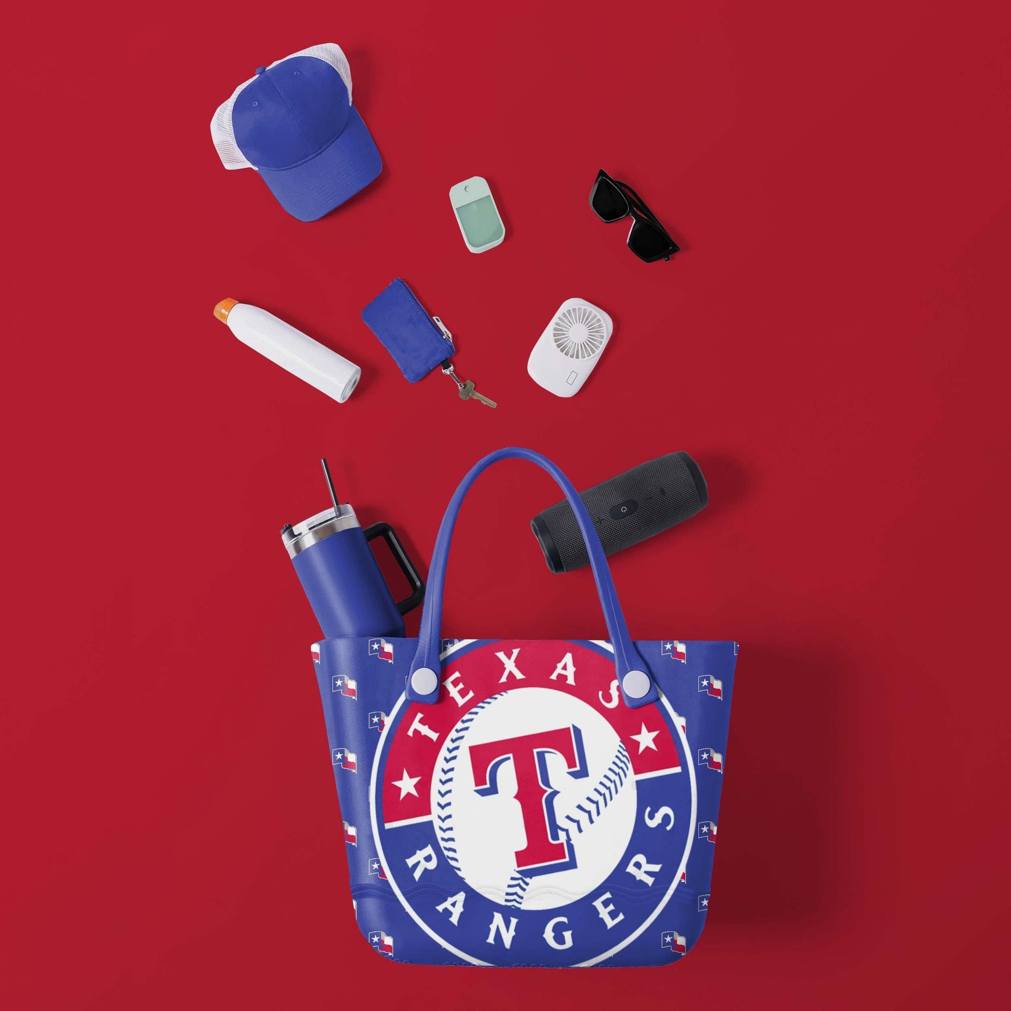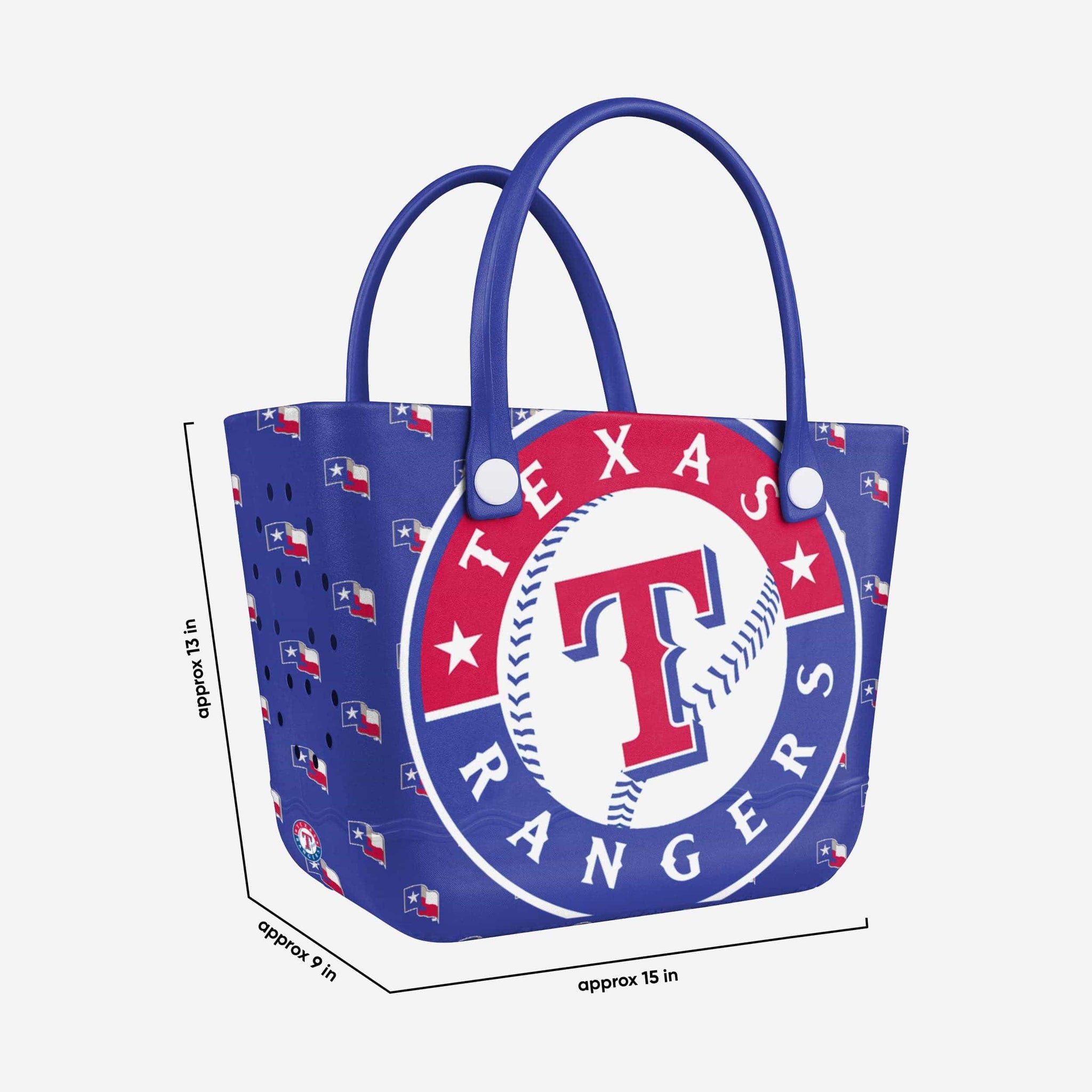 Looking for a bag as durable and dependable as your team spirit? You've found it. Whether you're running the tailgate, hitting the beach, or going on any adventure, pack up your fandom and take it on the go with this Texas Rangers Big Logo Mini Print Tailgate Tote Bag.