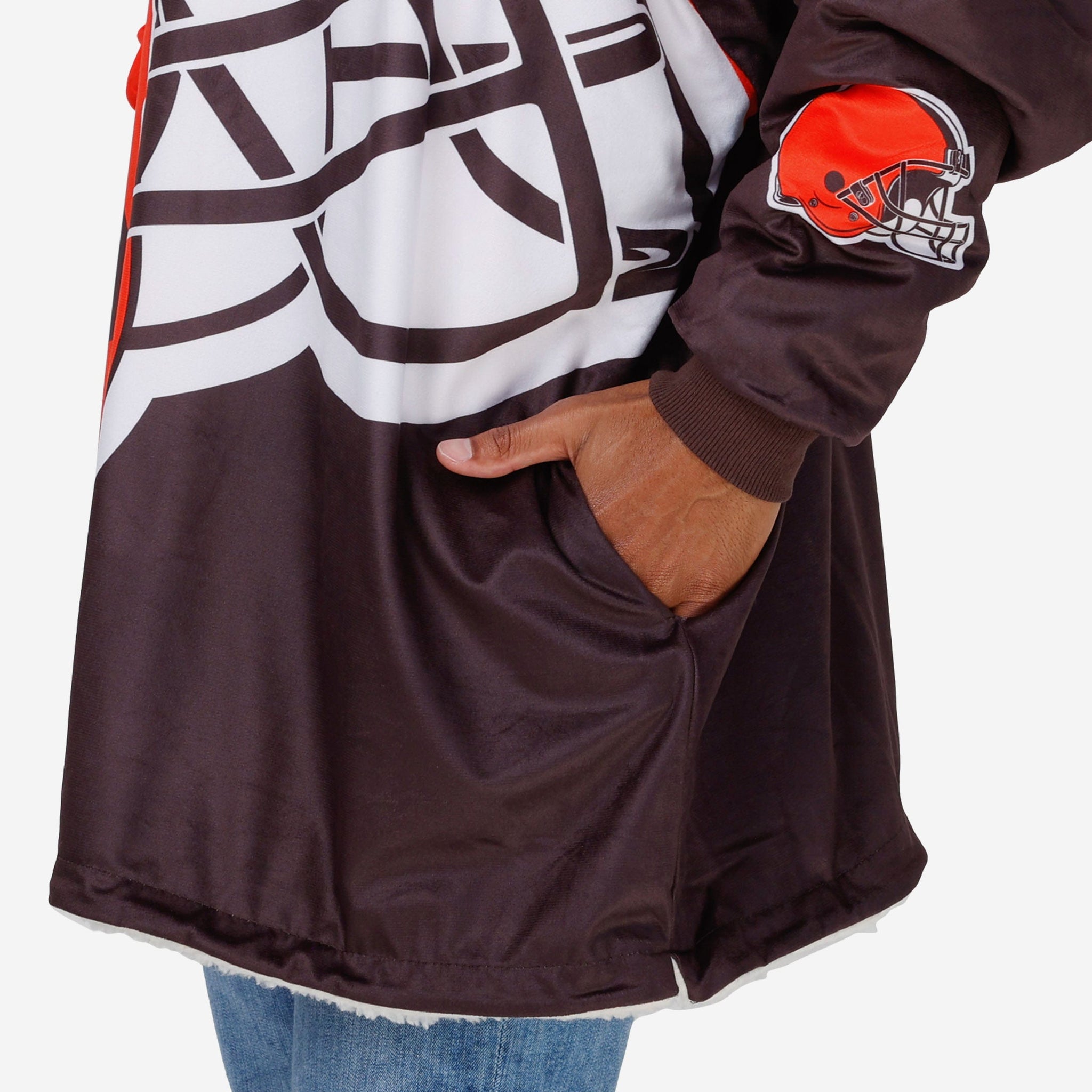 Never before has fandom looked so good and felt so relaxing. Lounge like a legend while you cheer your team on to victory by rocking this Cleveland Browns Reversible Colorblock Hoodeez.