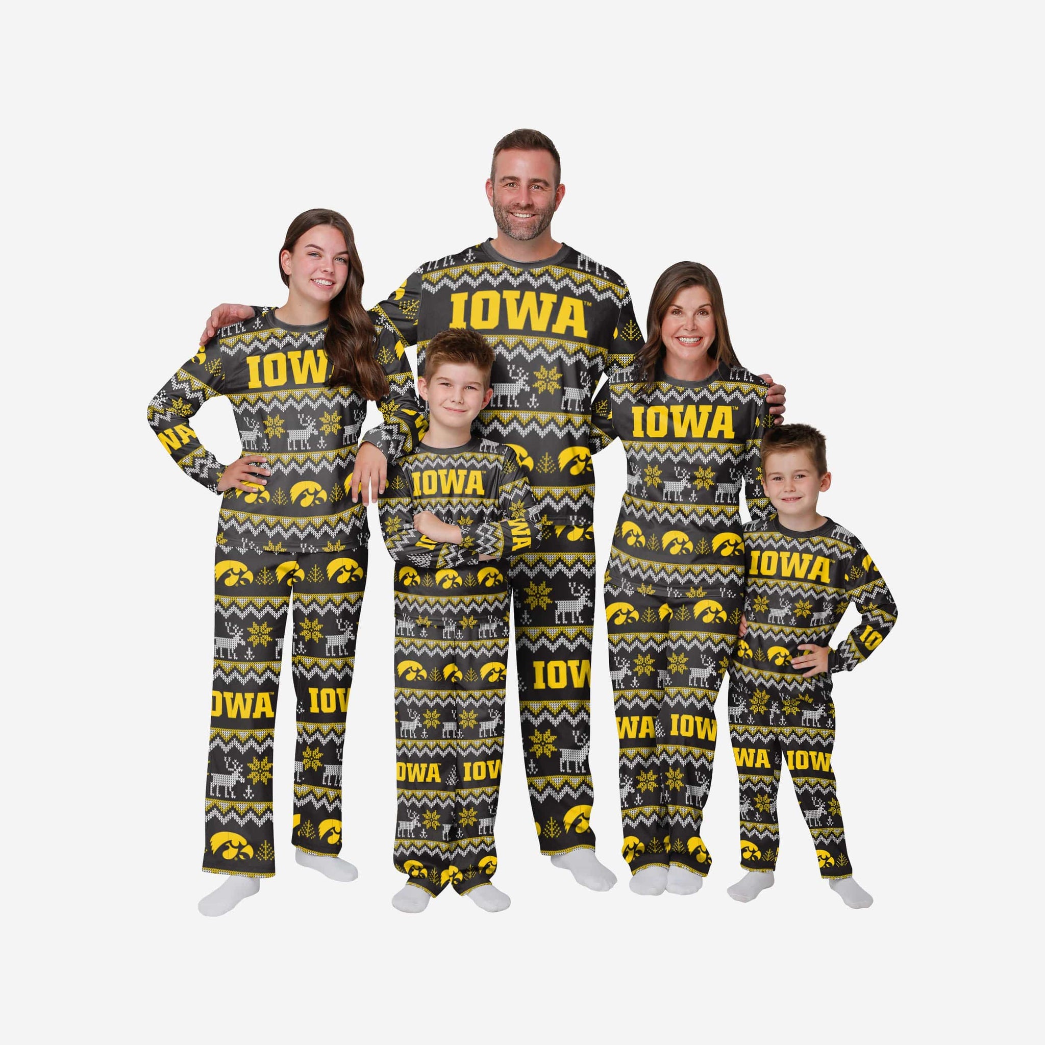 Get some matching family pajamas and dress to impress this holiday season! You won't want to miss these kids' team pajamas! These youth PJ's are comfortable and show off your team spirit in the form of some sweet youth jammies. Introducing the Iowa Hawkeyes Youth Ugly Pattern Family Holiday Pajamas! Don't forget to take your holiday photo with the whole family wearing matching Christmas pajamas!