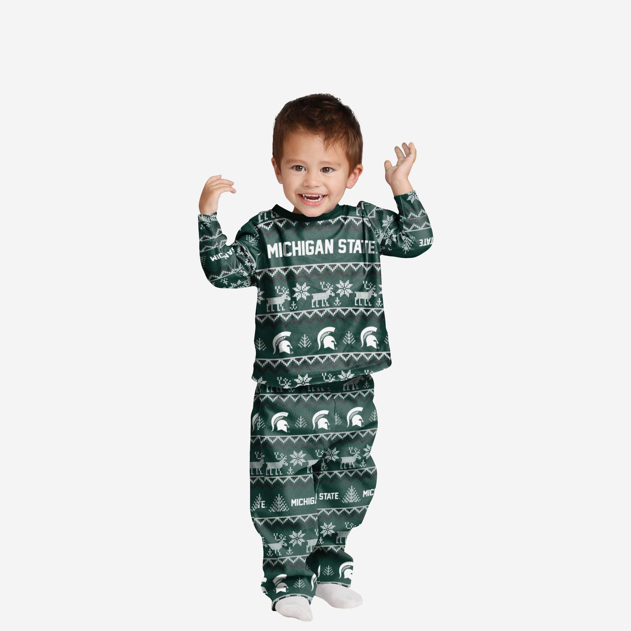 Michigan State Spartans Toddler Ugly Pattern Family Holiday Pajamas FOCO - FOCO.com