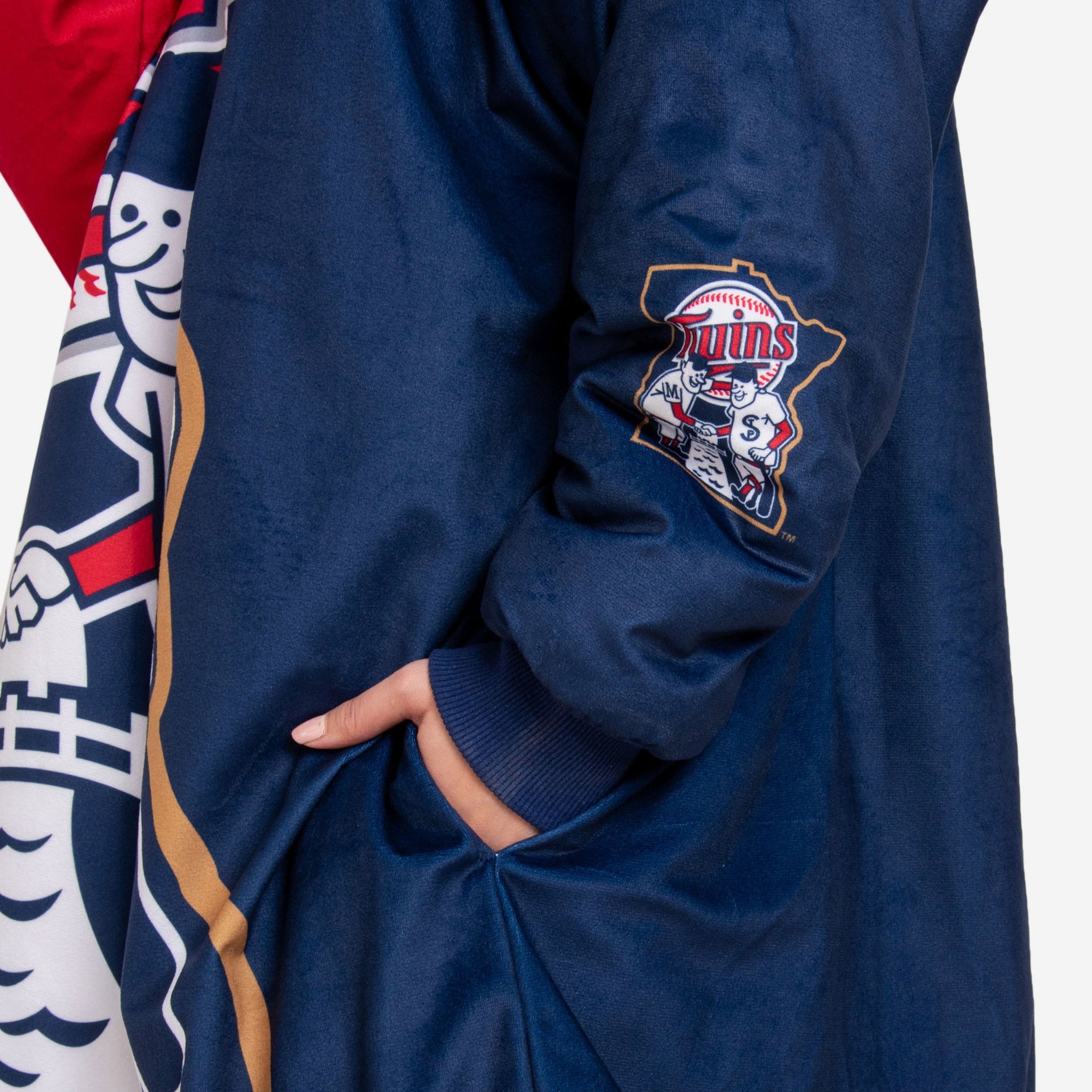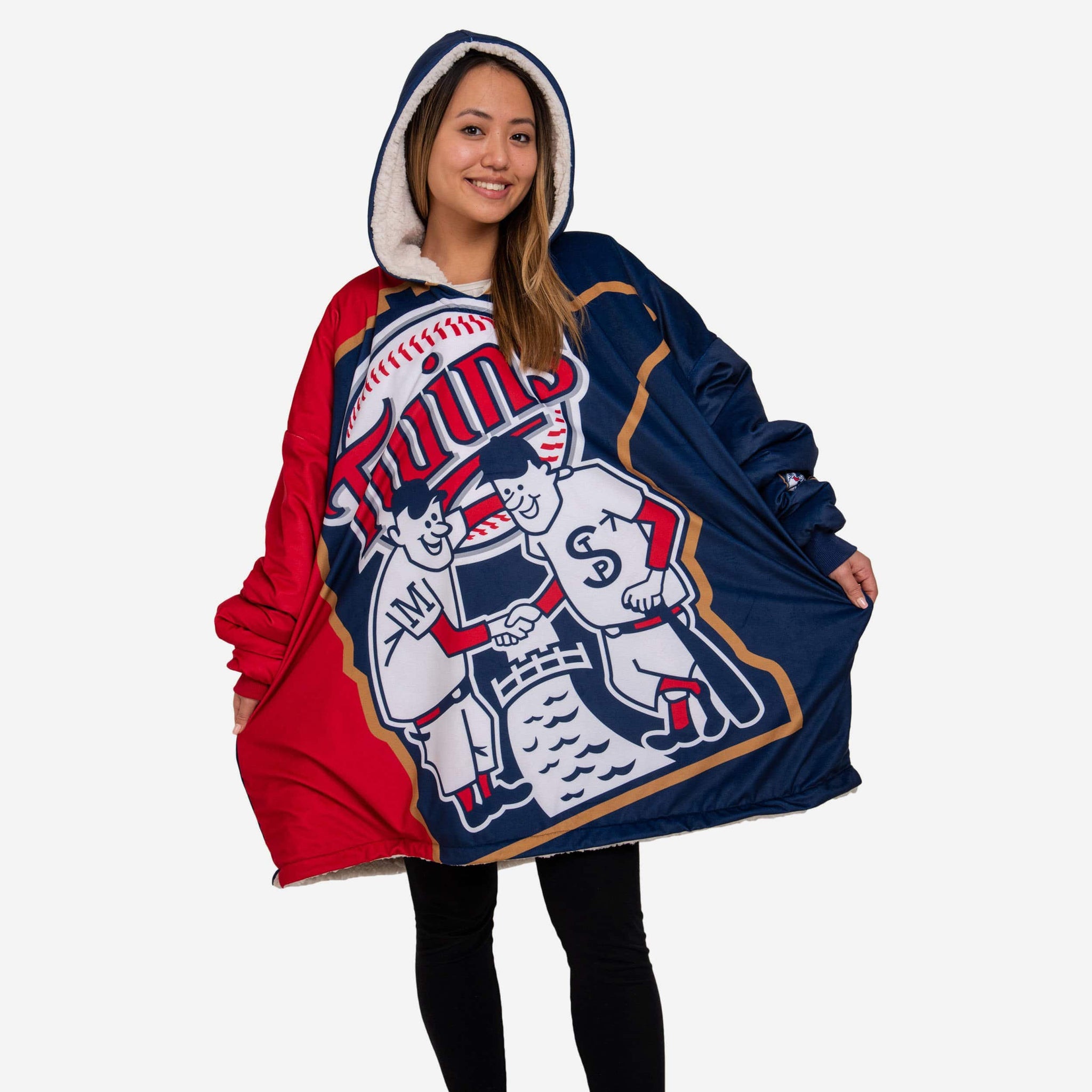 Dress like the star of the game without leaving your couch. Introducing the Exclusive Minnesota Twins Alternate Logo Reversible Gameday Hoodeez.