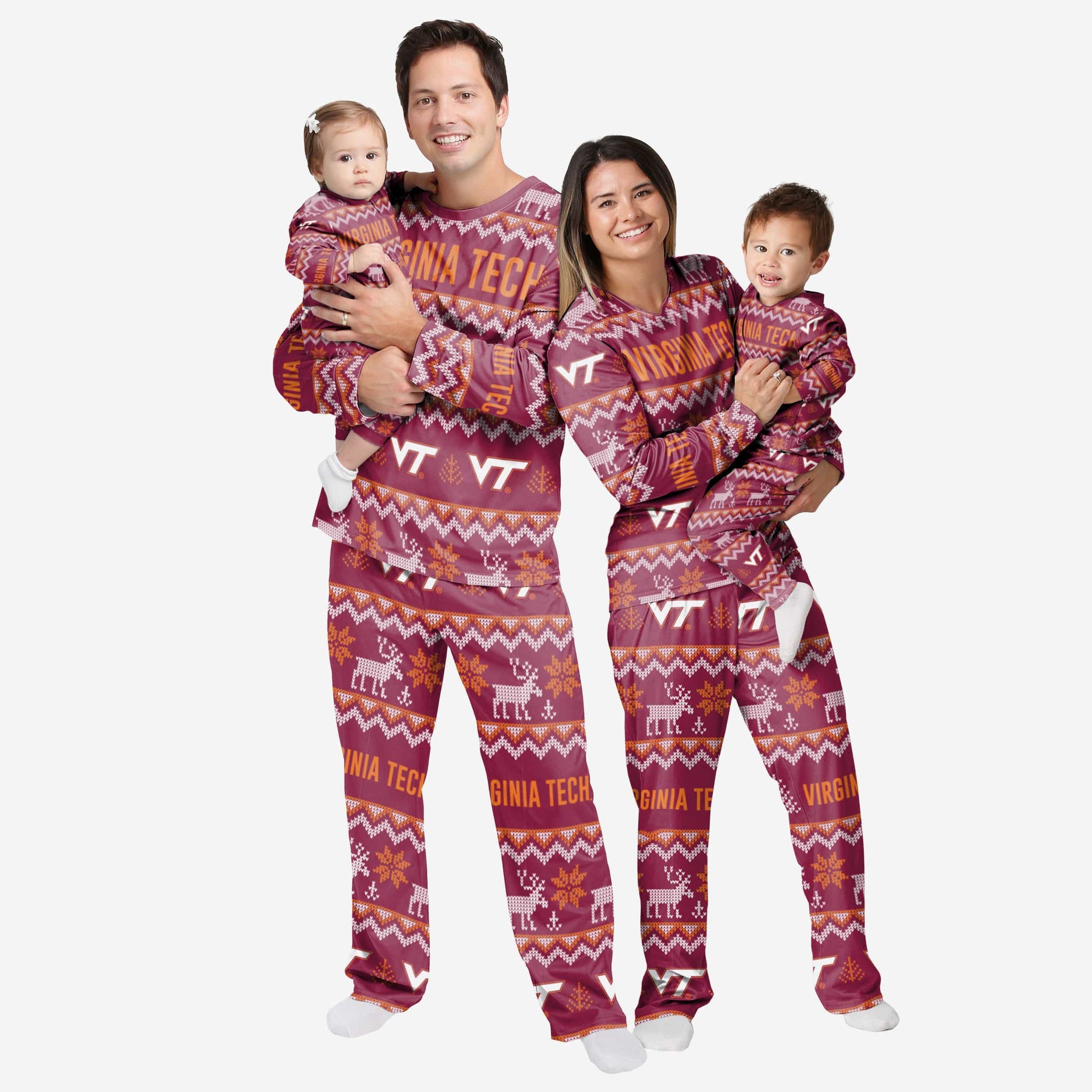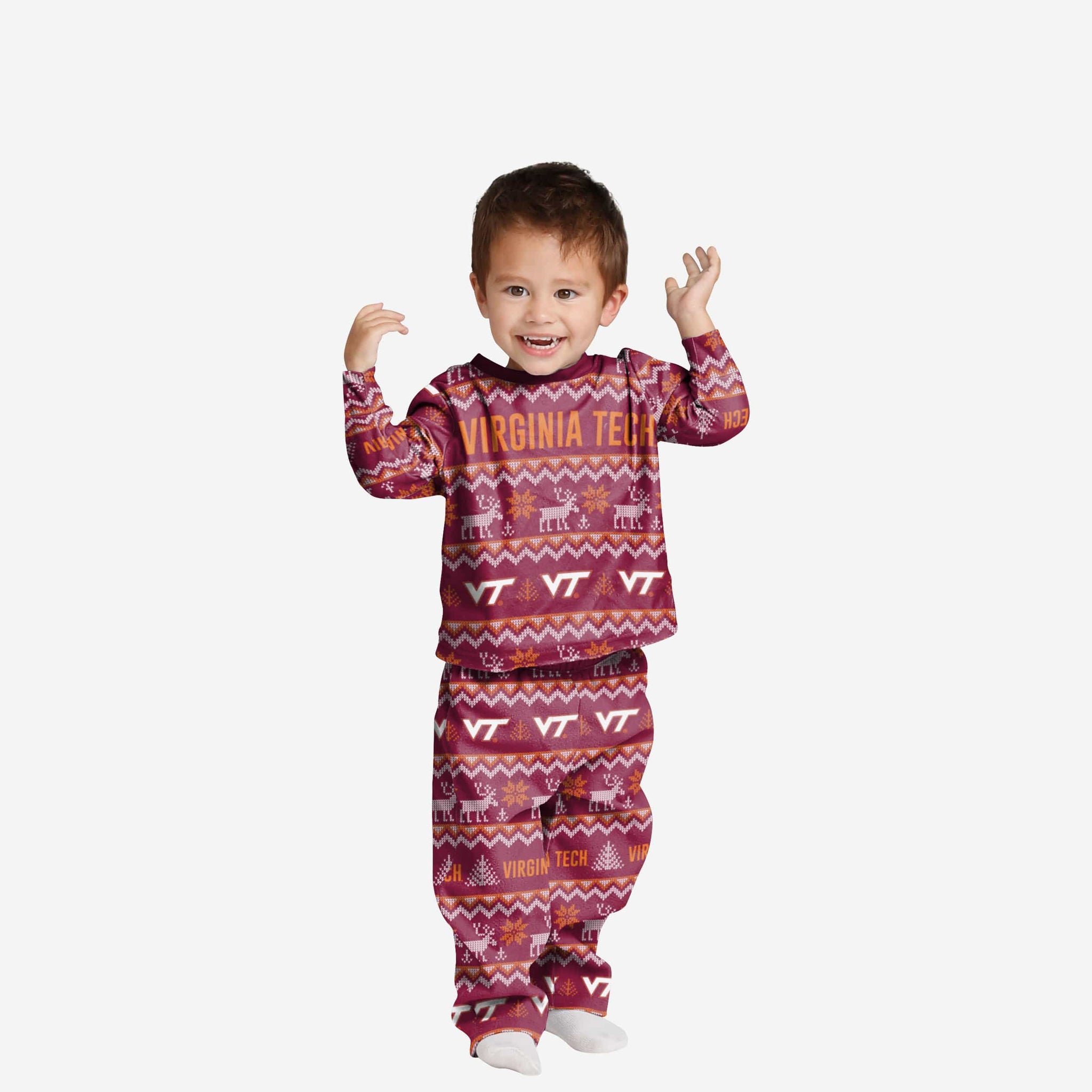 Get some matching family pajamas and dress to impress this holiday season! You won't want to miss these kids' team pajamas! These youth PJ's are comfortable and show off your team spirit in the form of some sweet youth jammies. Introducing the Virginia Tech Hokies Toddler Ugly Pattern Family Holiday Pajamas! Don't forget to take your holiday photo with the whole family wearing matching Christmas pajamas!