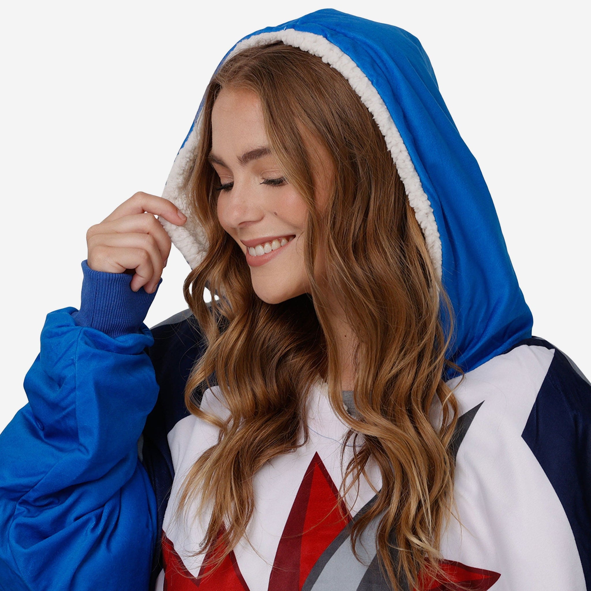 Never before has fandom looked so good and felt so relaxing. Lounge like a legend while you cheer your team on to victory by rocking this Winnipeg Jets Reversible Colorblock Hoodeez.