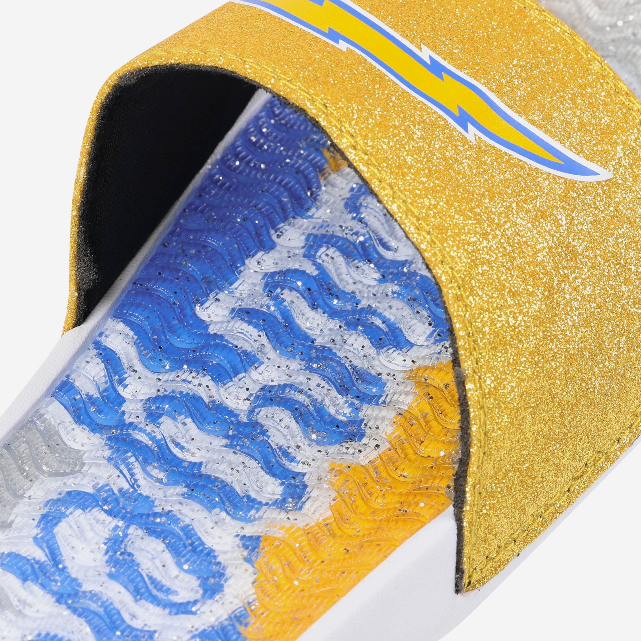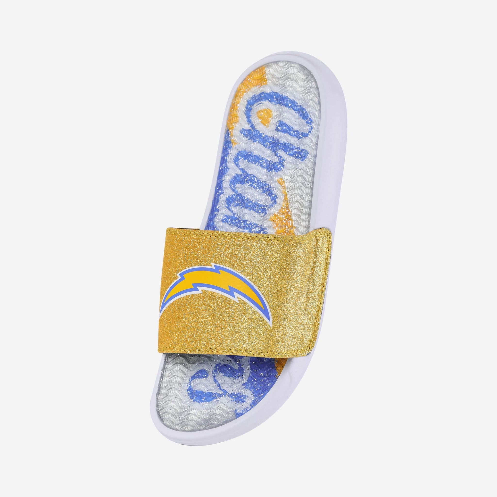 Fan footwear that will make you the pick of the glitter. Let your team spirit shine with every step in these Los Angeles Chargers Women's Glitter Gel Slides!