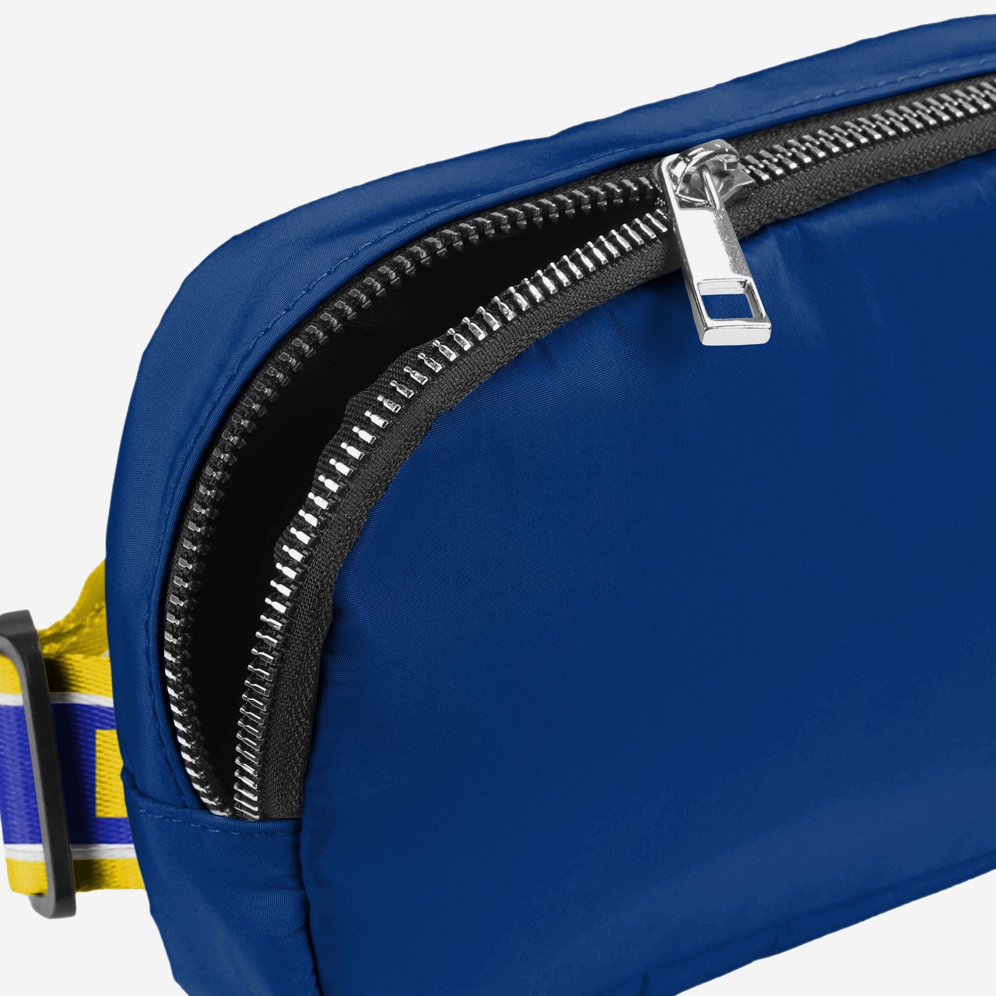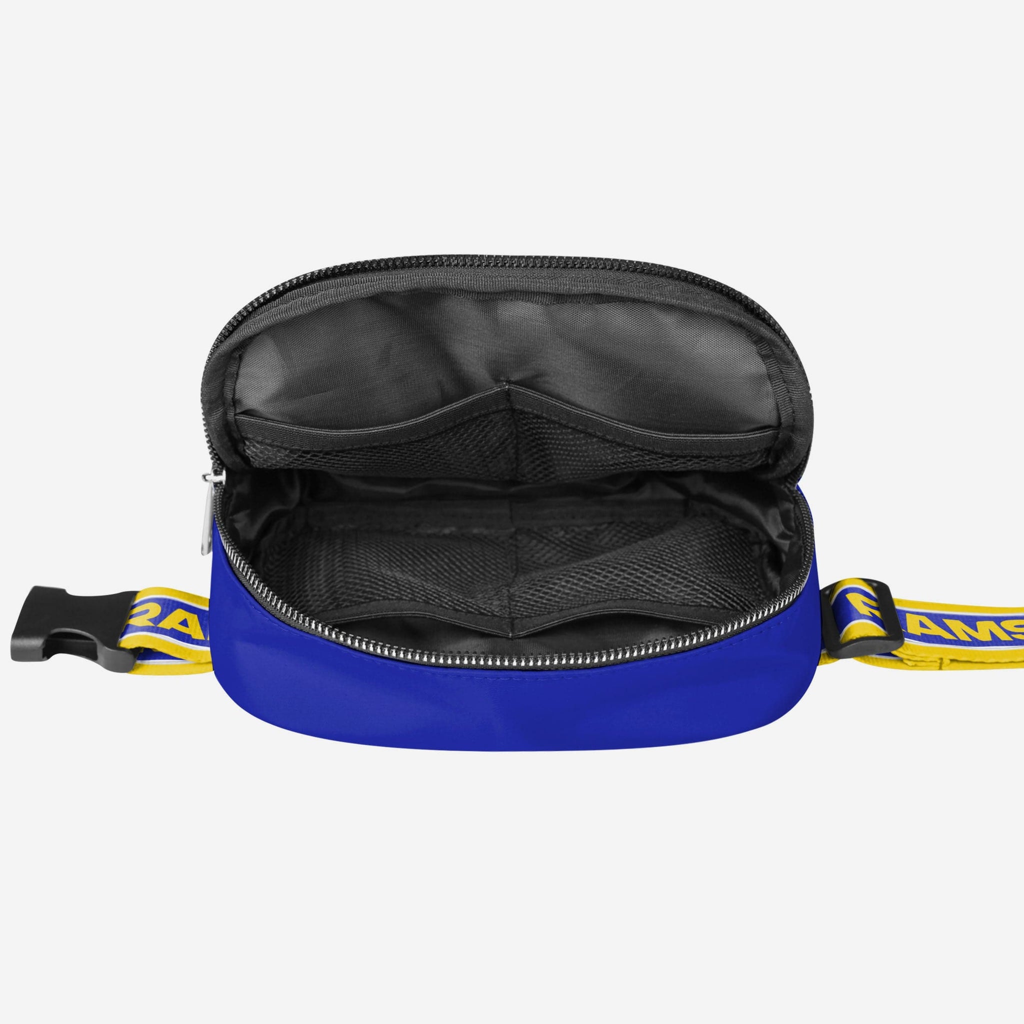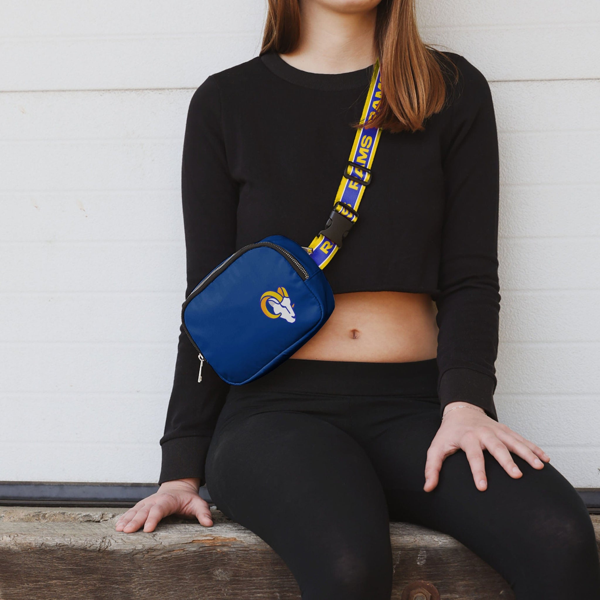 Keys. Wallet. Team spirit. Yep, you've got everything you need right here in this Los Angeles Rams Team Wordmark Crossbody Belt Bag, whether you're running some errands or running things at the tailgate.