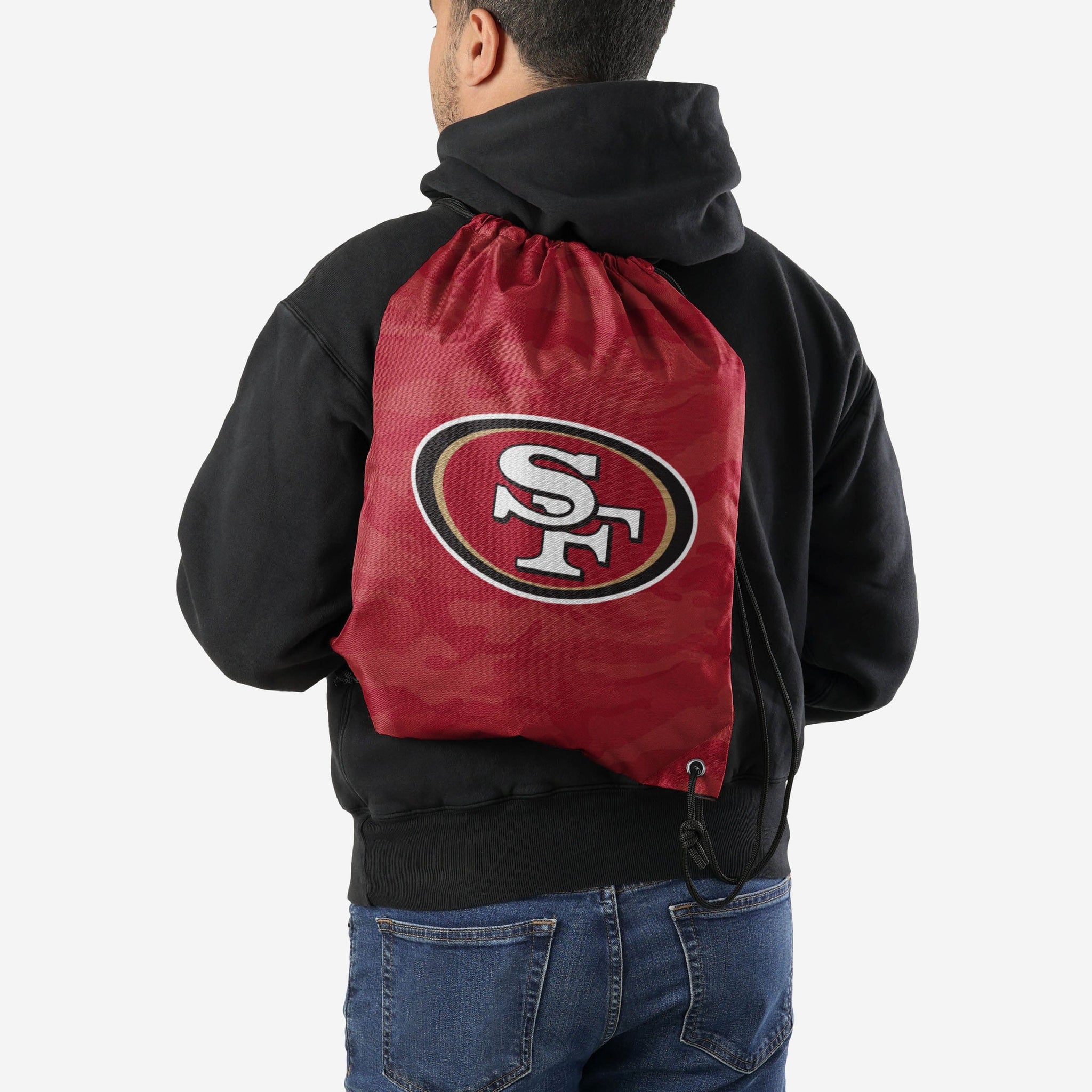 Keep calm. Carry on. Carry your stuff and stand out with this San Francisco 49ers Big Logo Camo Drawstring Backpack!