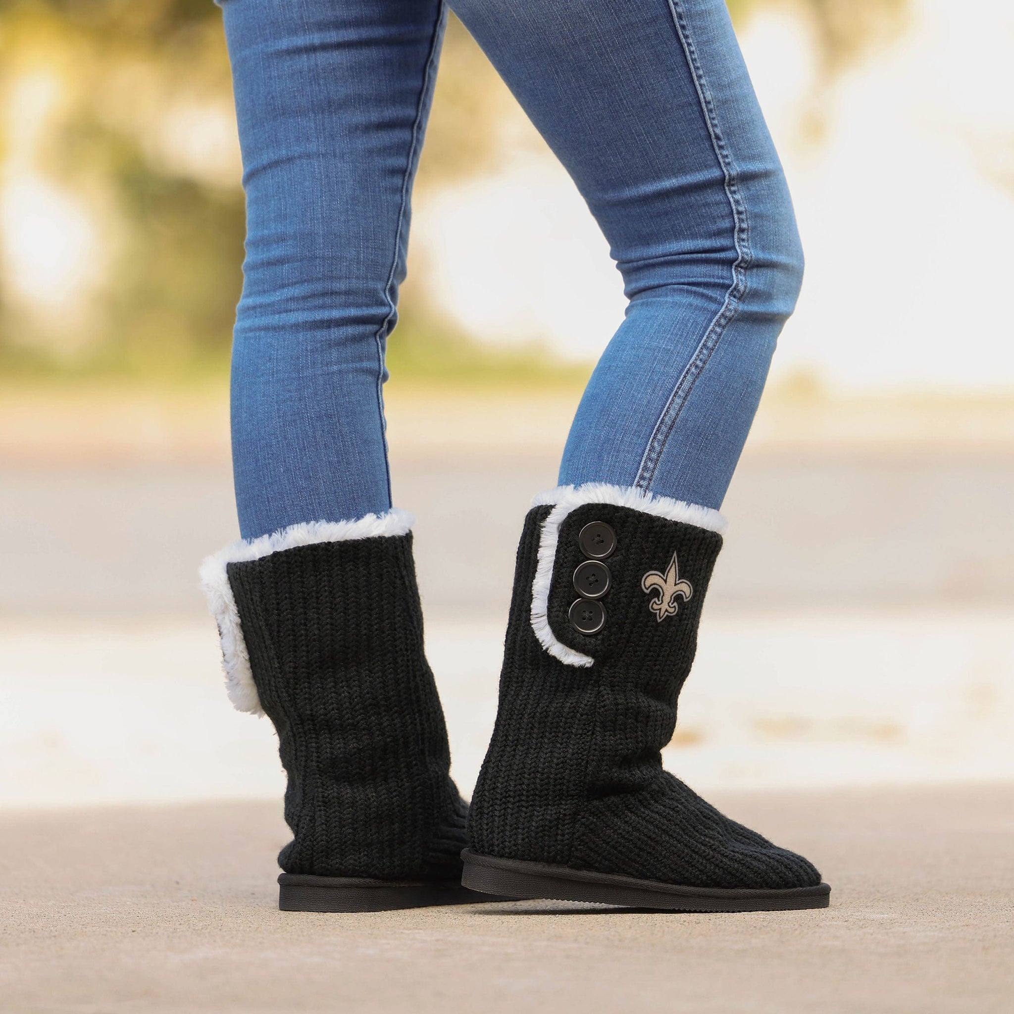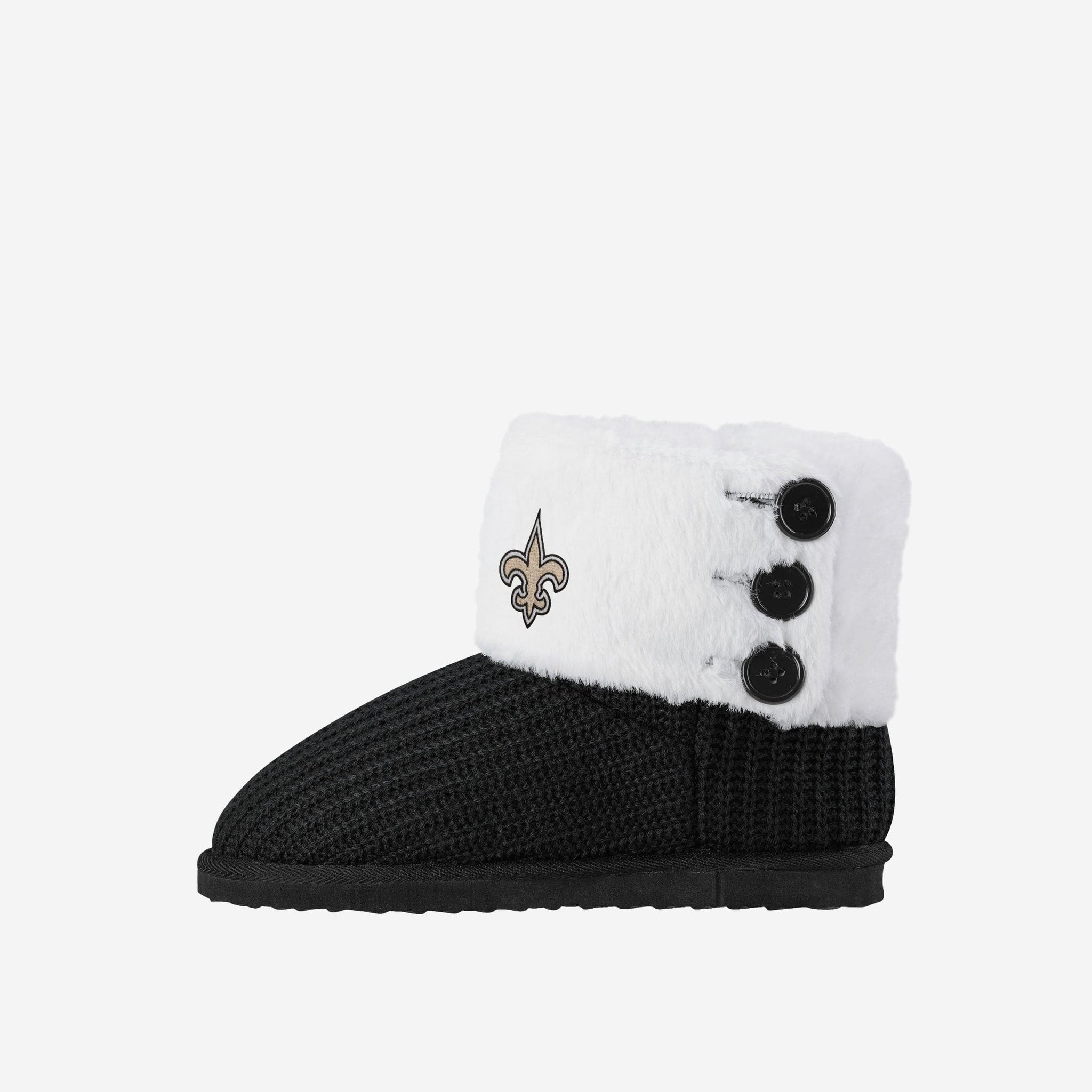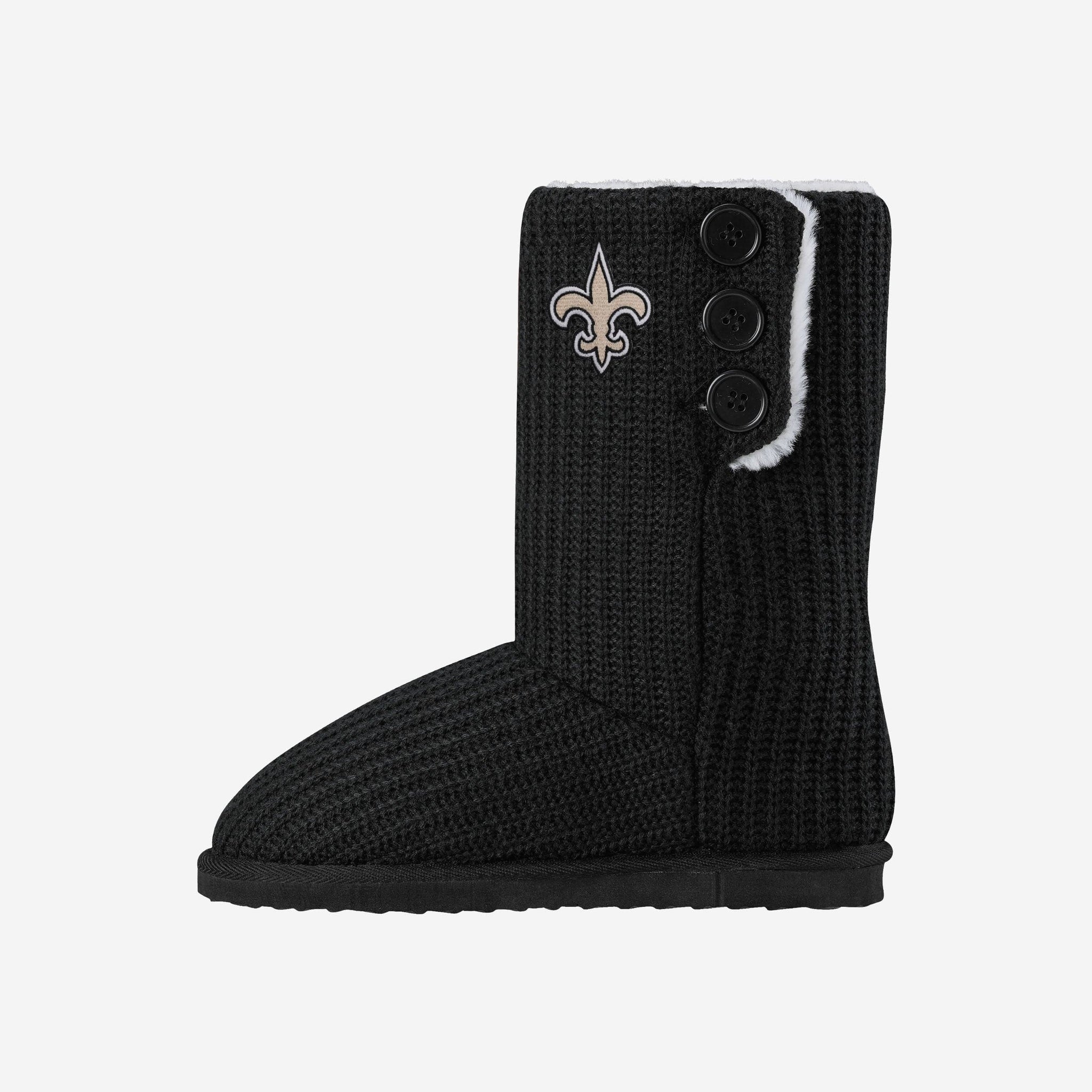 These New Orleans Saints Knit High End Button Boot Slippers are perfect for rocking your team spirit from head to toe, or keeping yourself warm and comfortable while you sneak downstairs for that secret midnight snack. No judgment here.