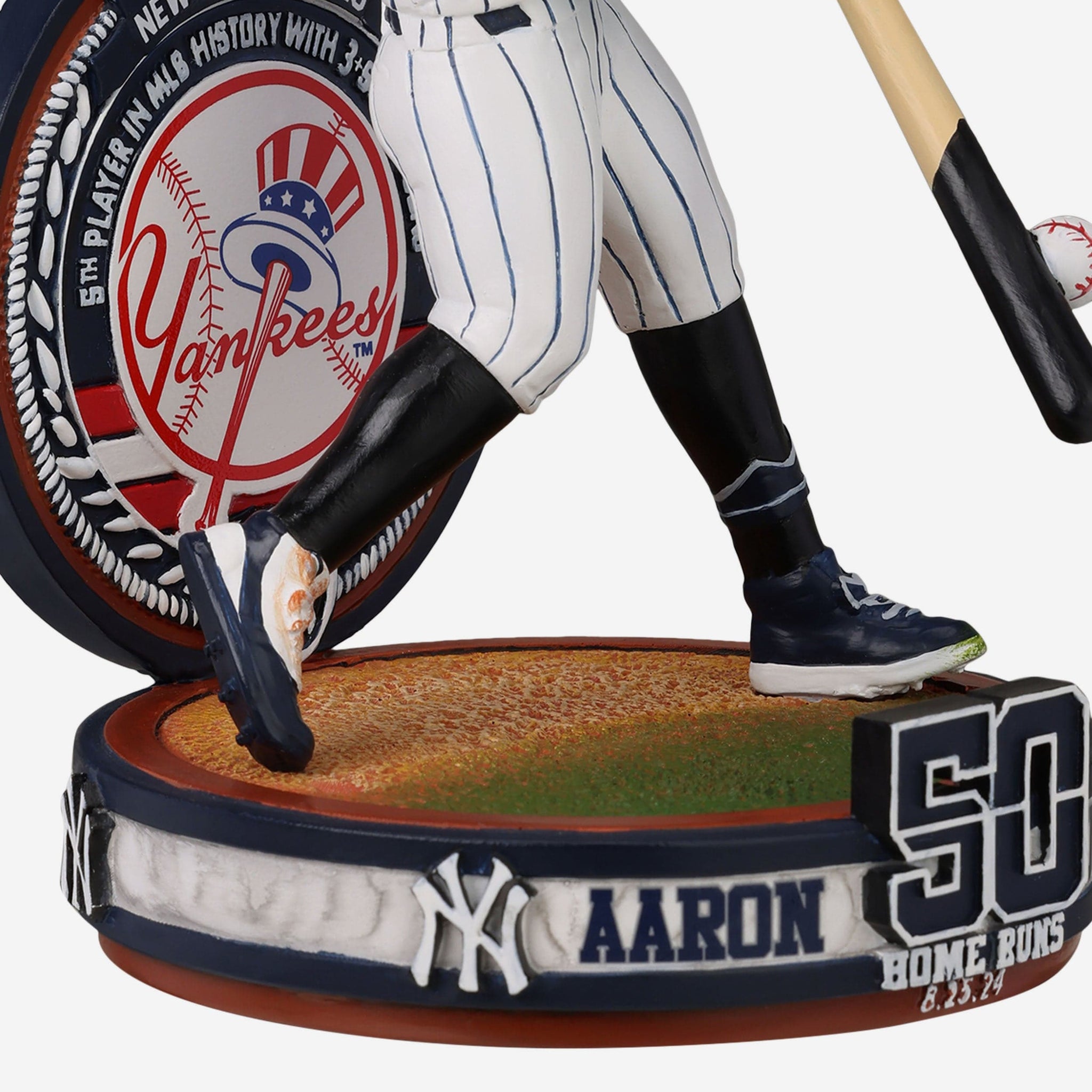 • ”50 HOME RUNS” and “8.25.24” text displays on front of base so you never forget his historic night at the plate