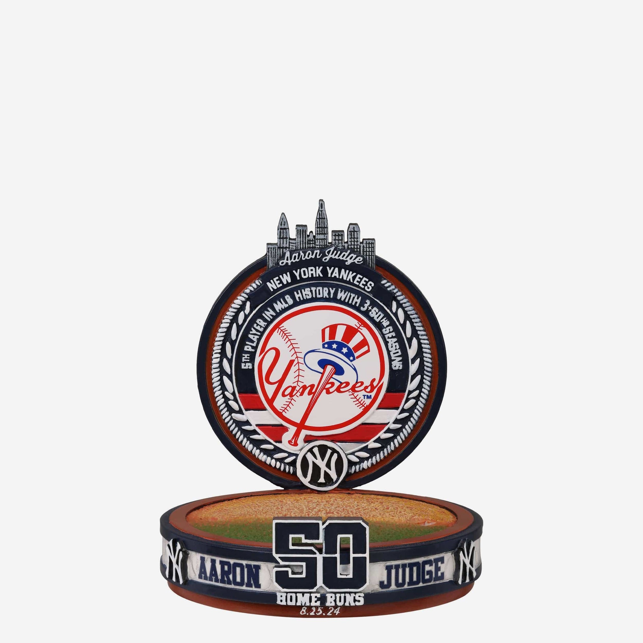 Start spreading the news: Judge is the fifth player in MLB history with three-plus 50 home run seasons! Welcome him to the history books by welcoming this Aaron Judge New York Yankees 50 Home Run Bobblehead into your collection.
