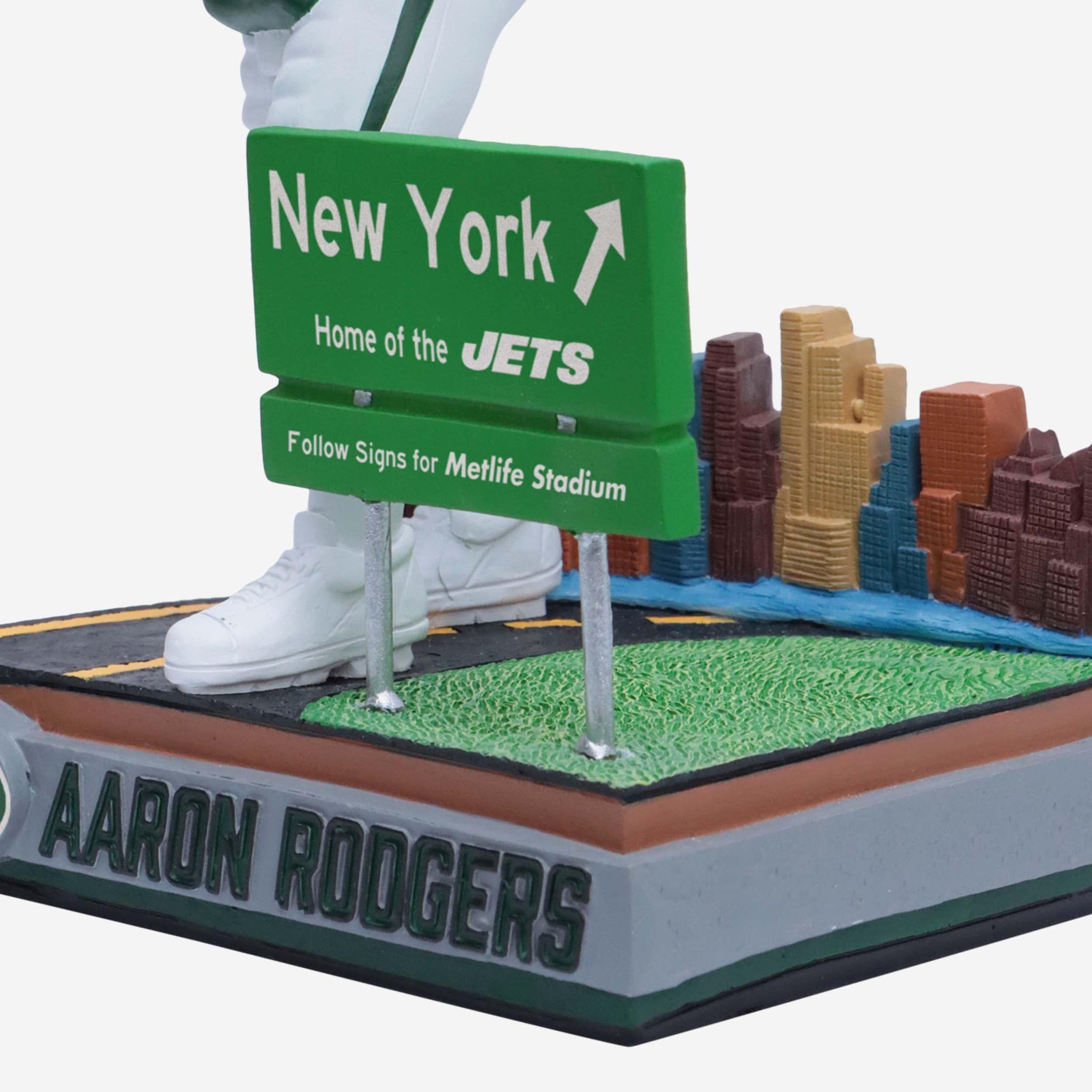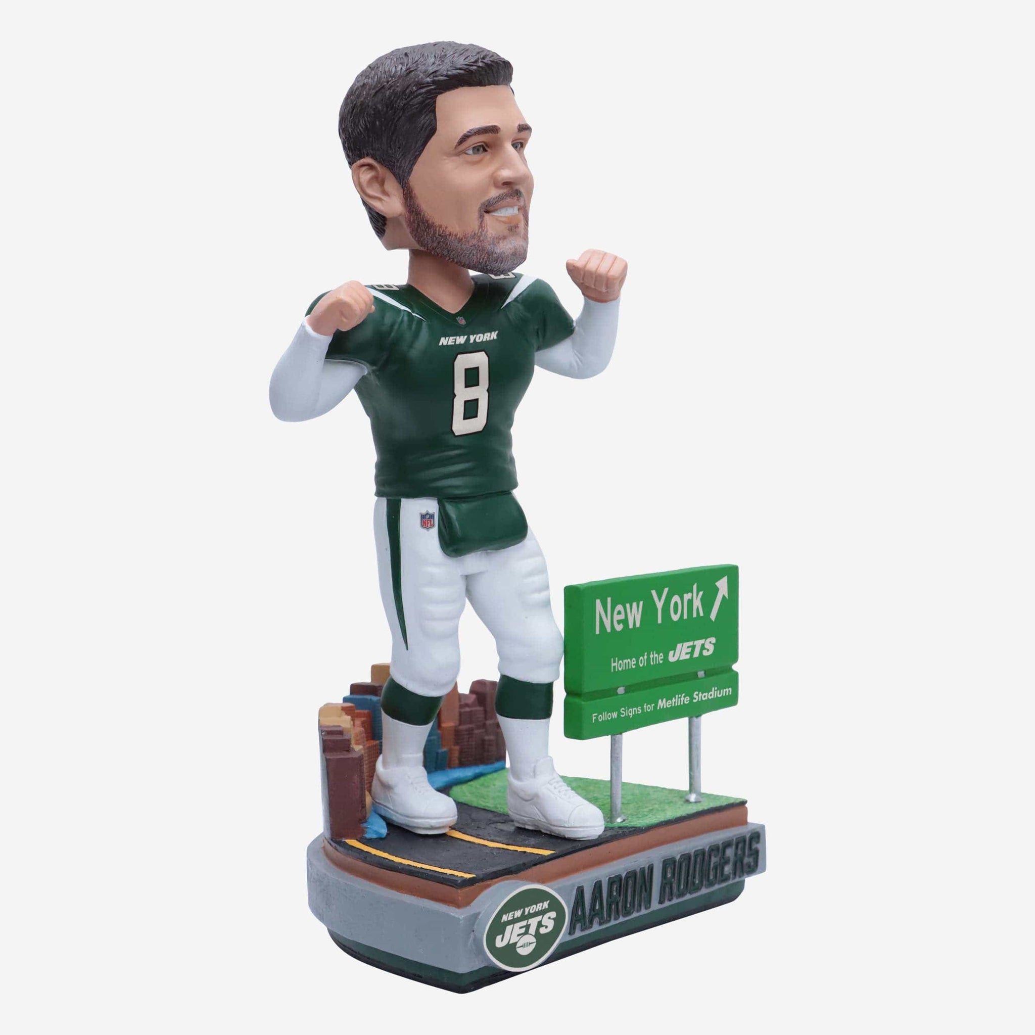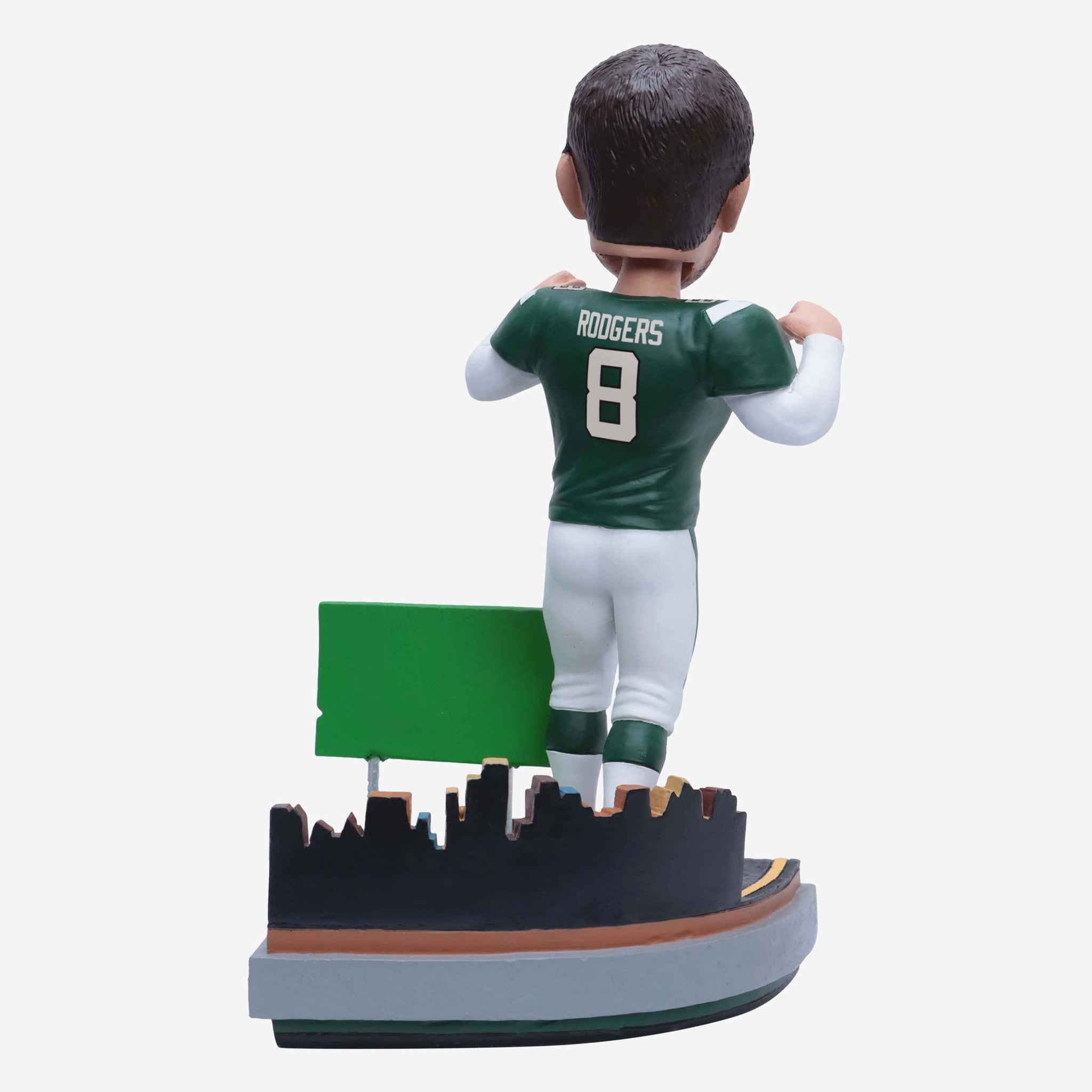 Ladies and gentlemen, this is your captain speaking. We are currently experiencing zero turbulence and ready to begin our descent and touch down (in more ways than one) in the New York/New Jersey area. Take to the skies with the Aaron Rodgers New York Jets Next Stop Bobblehead.